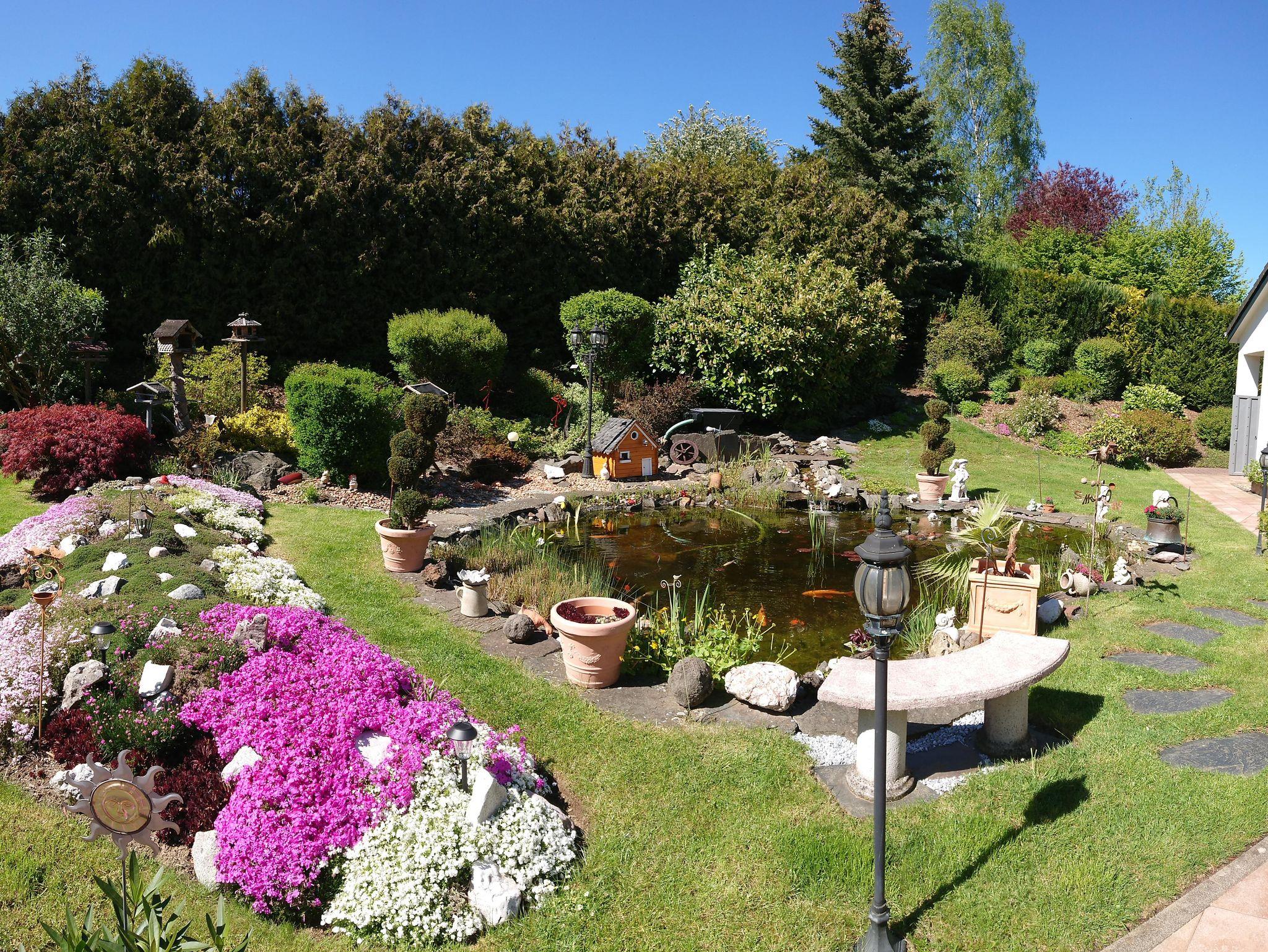 Die Ferienwohnung ist in ruhiger Ortsrandlage gelegen. Die 30m² große Sonnenterrasse am Koiteich und das heimelige Ambiente garantieren angenehme Erholungstage für die private Auszeit.