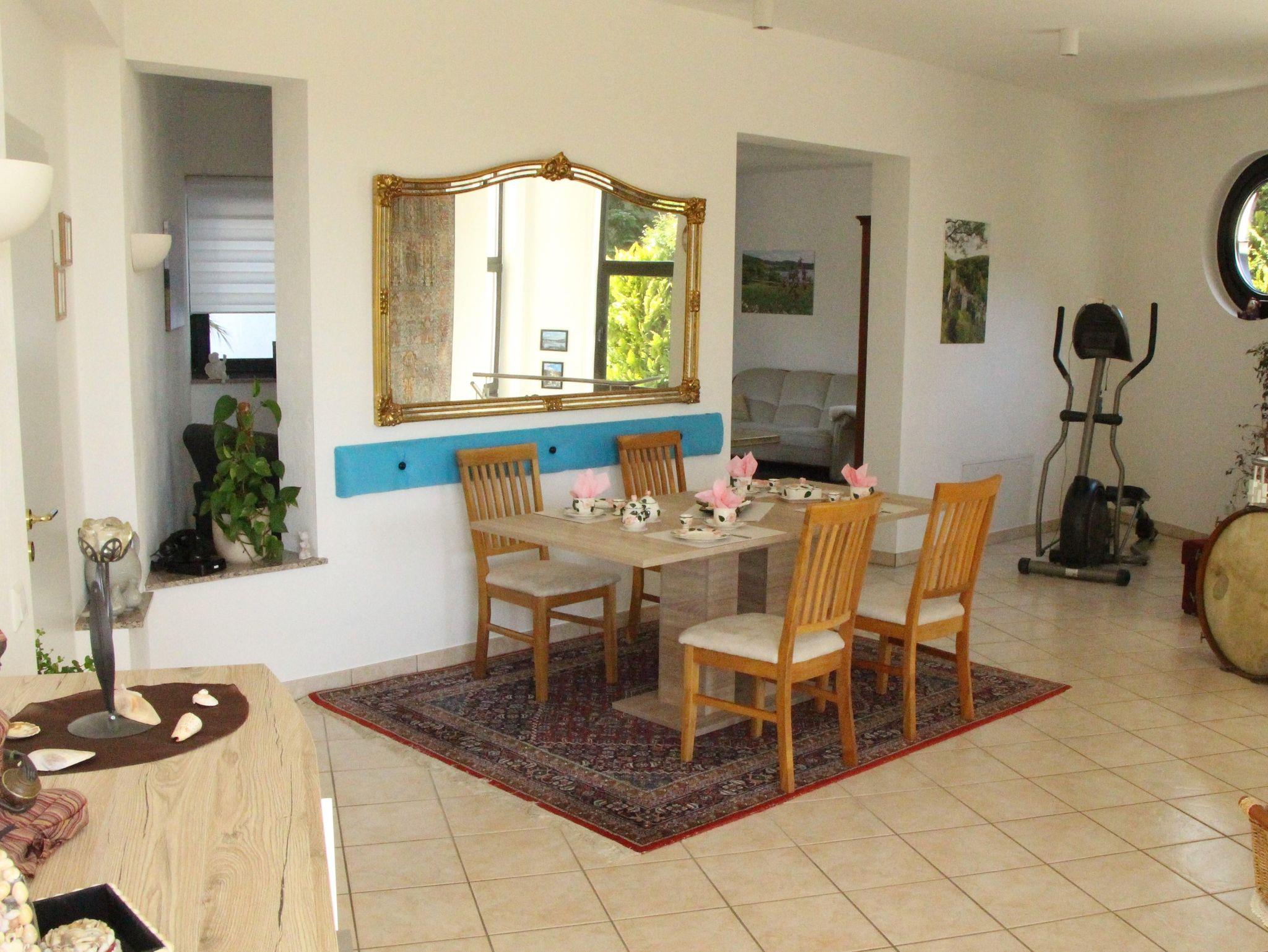 31m² helles Esszimmer; voll ausgestattete Küche mit Spülmaschine; Schlafzimmer mit 180x200cm Bett und zusätzlichem Kinderbett; Schlafcouch 160x200 im Wohnbereich; Gäste WC; Großes Badezimmer mit Dusche, WC, Wannenbad und Bidet;