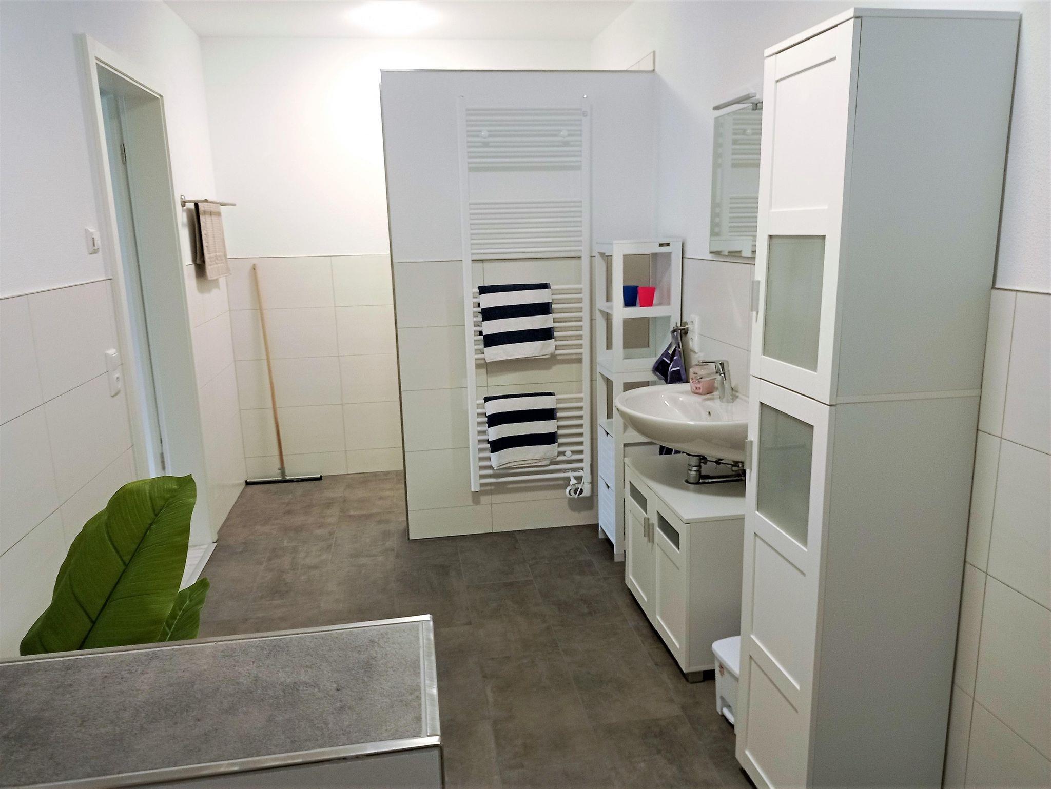 Diese gemütliche moderne neue 90,0 m² große Wohnung 1a Monika ist barrierearm. Der Parkplatz mit Wallbox ist neben der Wohnung. Die Terrasse ist barrierefrei begehbar / befahrbar. Kostenloses Wlan. Großzügige moderne Küche mit Essplatz im Wohnzimmer, und großzügiges Badezimmer mit Dusche.