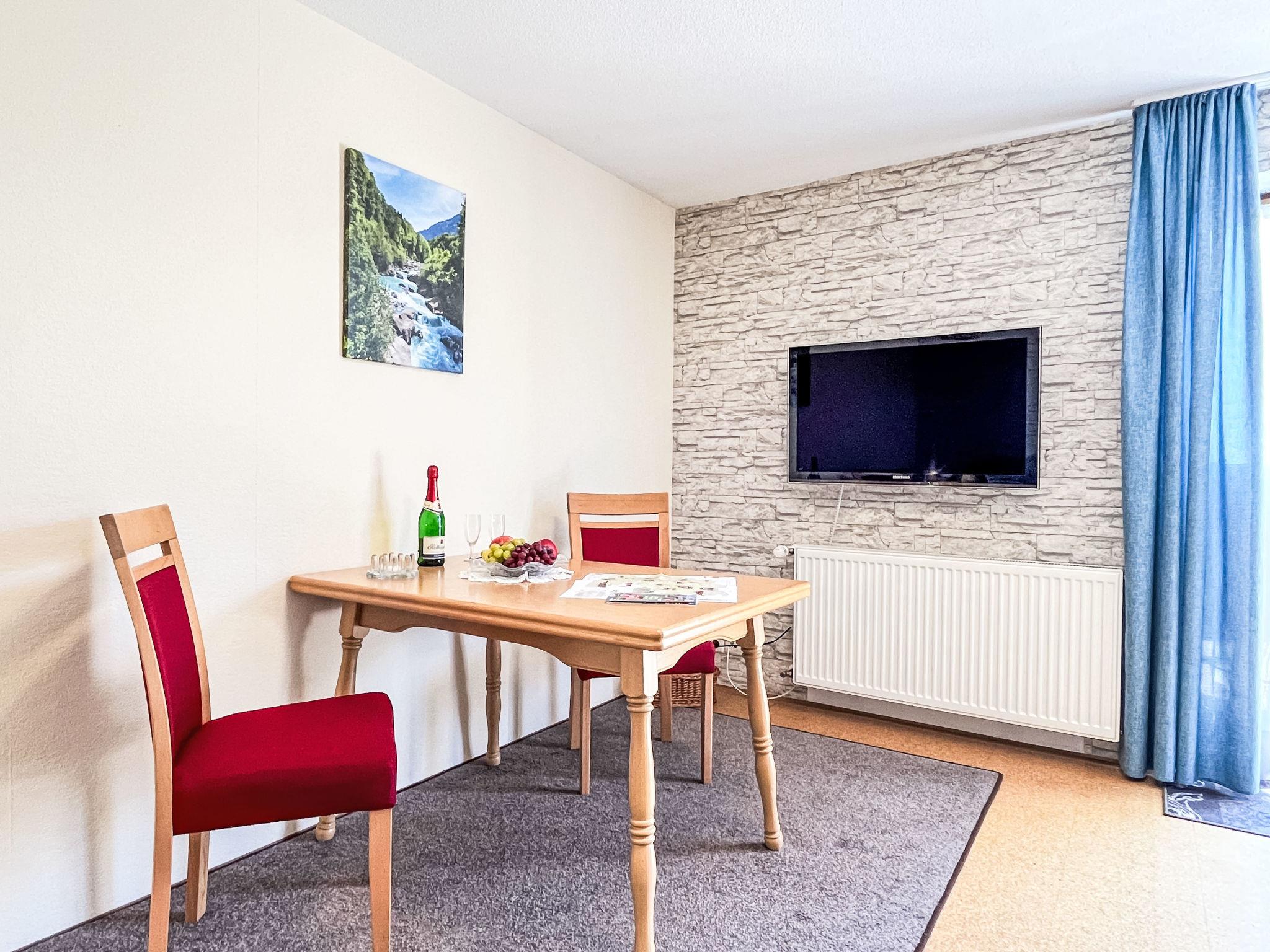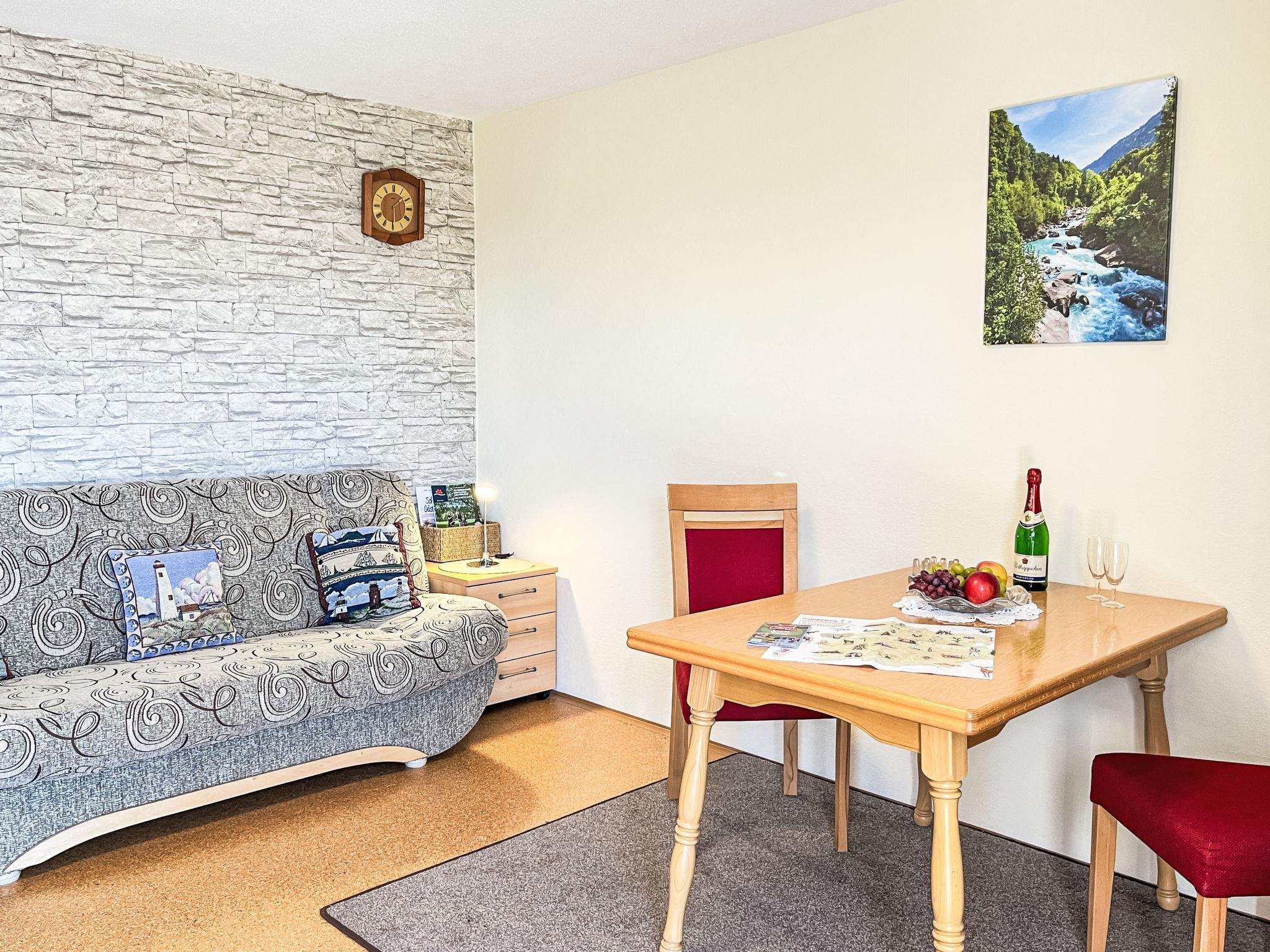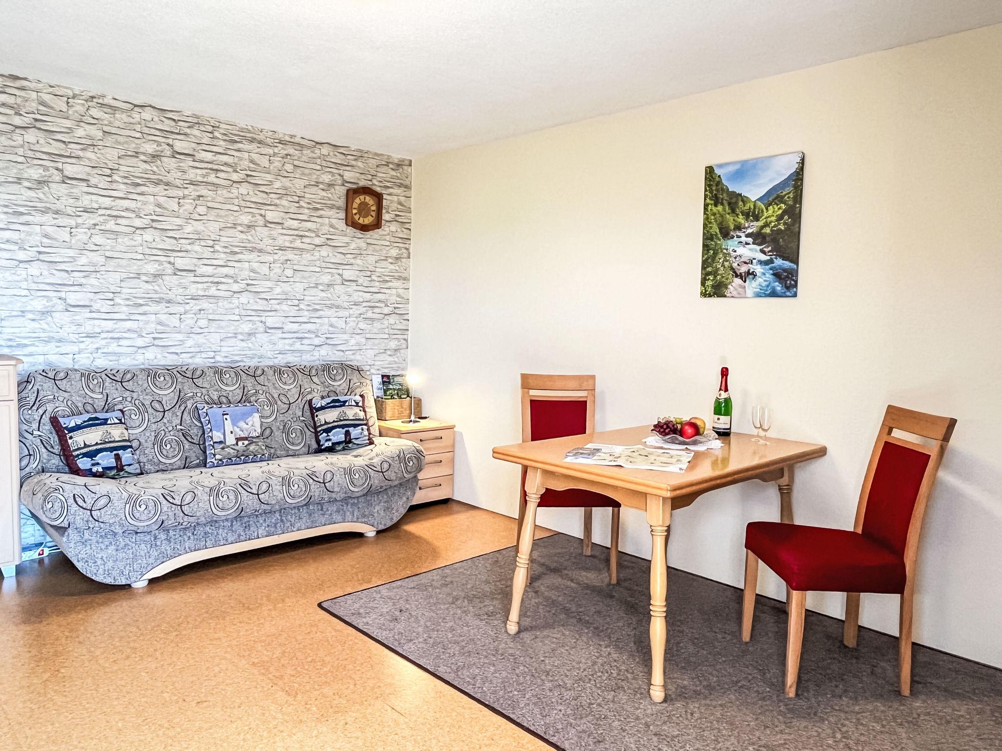 "Alpenblick", 2-room apartment 45 m2, on the ground floor. Object suitable for 2 adults + 1 child. Simple and cosy furnishings: 1 room with 1 double bed and 1 folding bed. Kitchen-/living room (oven, 4 ceramic glass hob hotplates, toaster, kettle, electric coffee machine) with dining table, dining nook, satellite TV and hi-fi system. Exit to the terrace. Shower/WC. Oil heating. Terrace. Terrace furniture, barbecue (portable), deck chairs. Beautiful panoramic view. Facilities: baby cot. Internet (WiFi, free). Please note: non-smokers only. Smoke alarm. Maximum occupancy: 2 adults and 1 child up to 6 years.