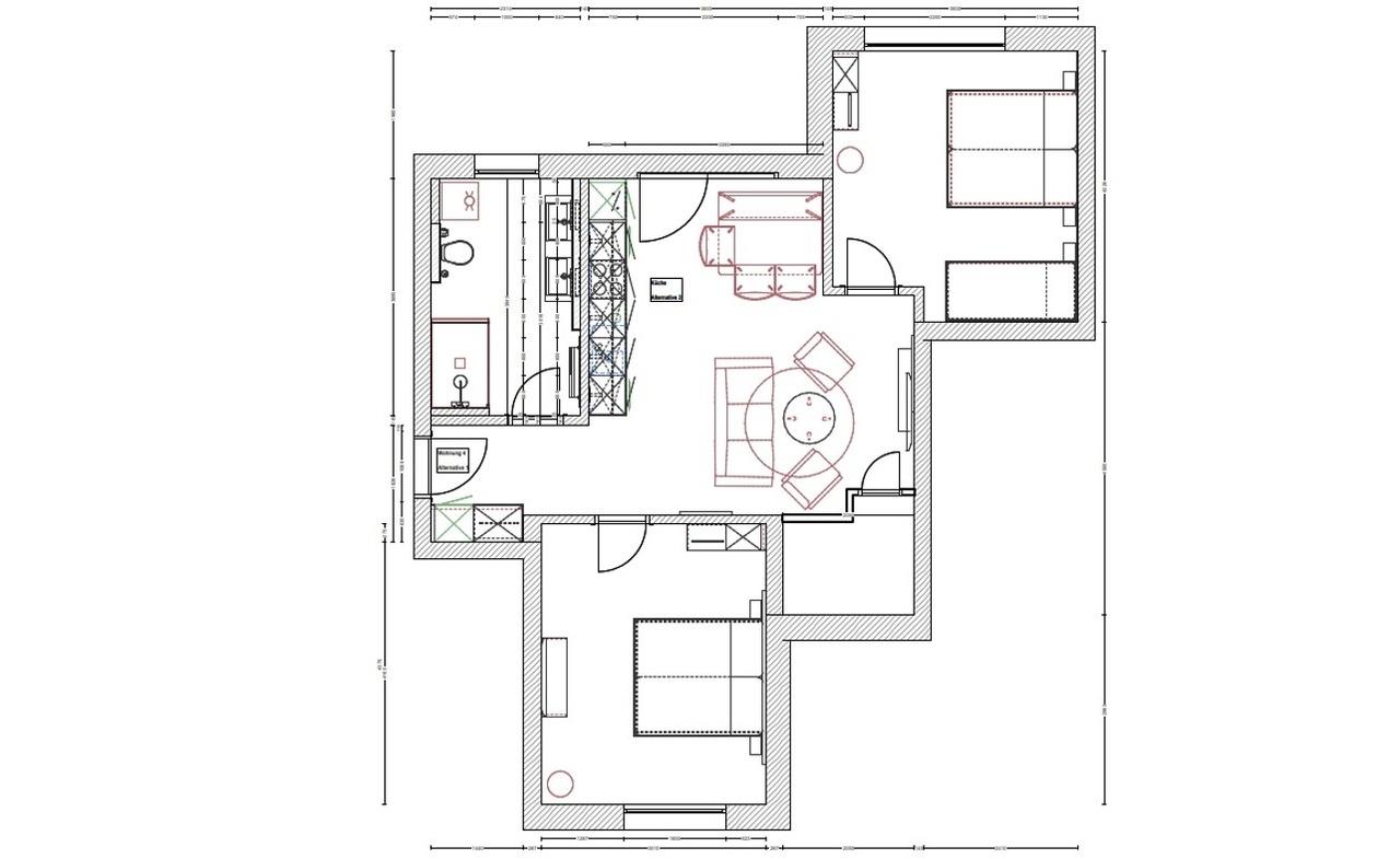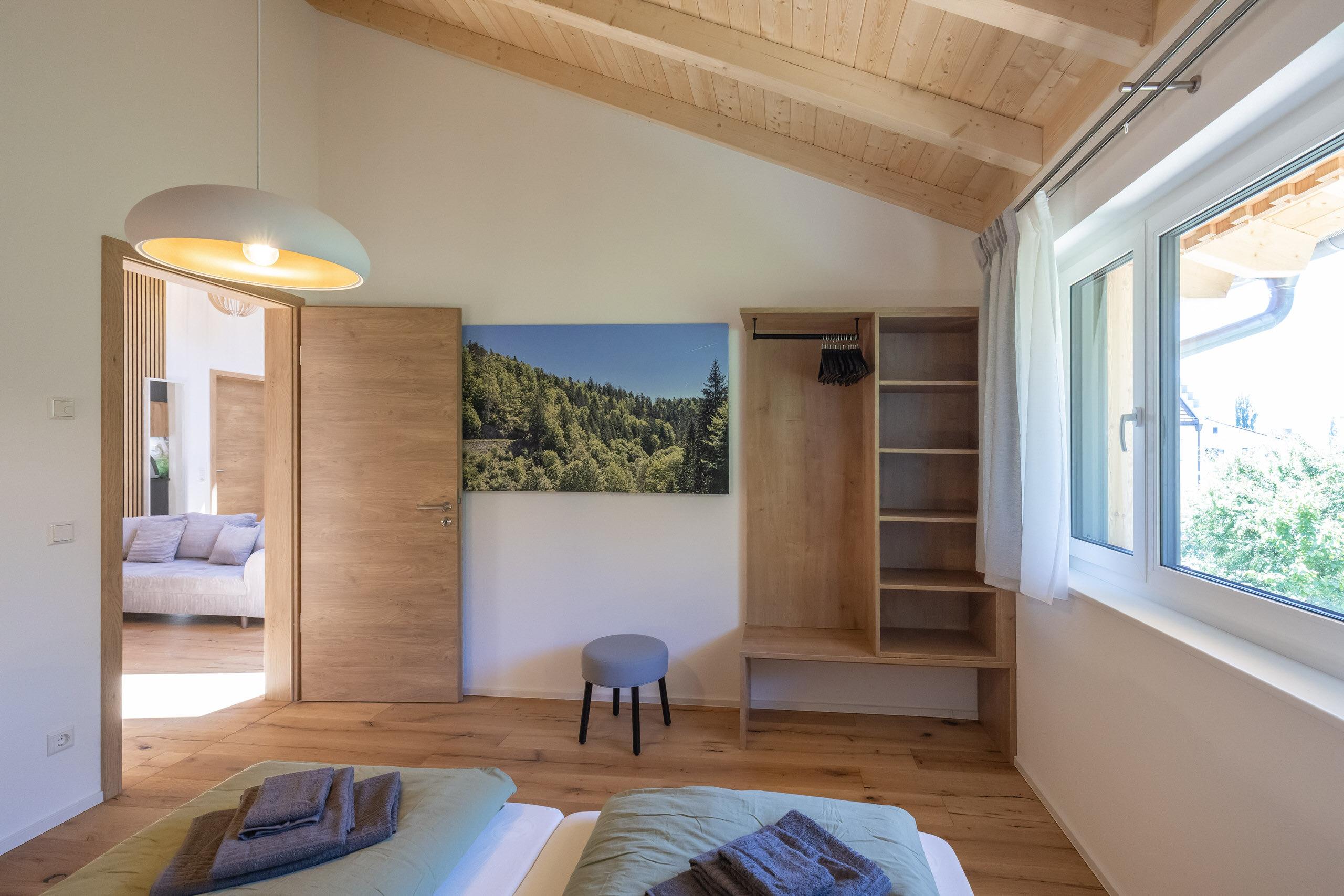 - ein Schlafzimmer mit einem Doppelbett (180x200) und einem Einzelbett (90x200)