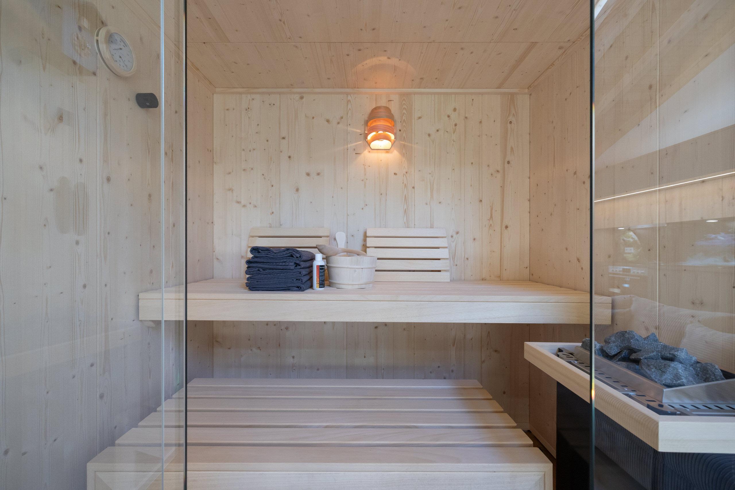 Die gemütliche 76m² Wohnung bietet Platz für bis zu 5 Personen und verfügt über eine eigene private Sauna – ideal für erholsame Stunden.