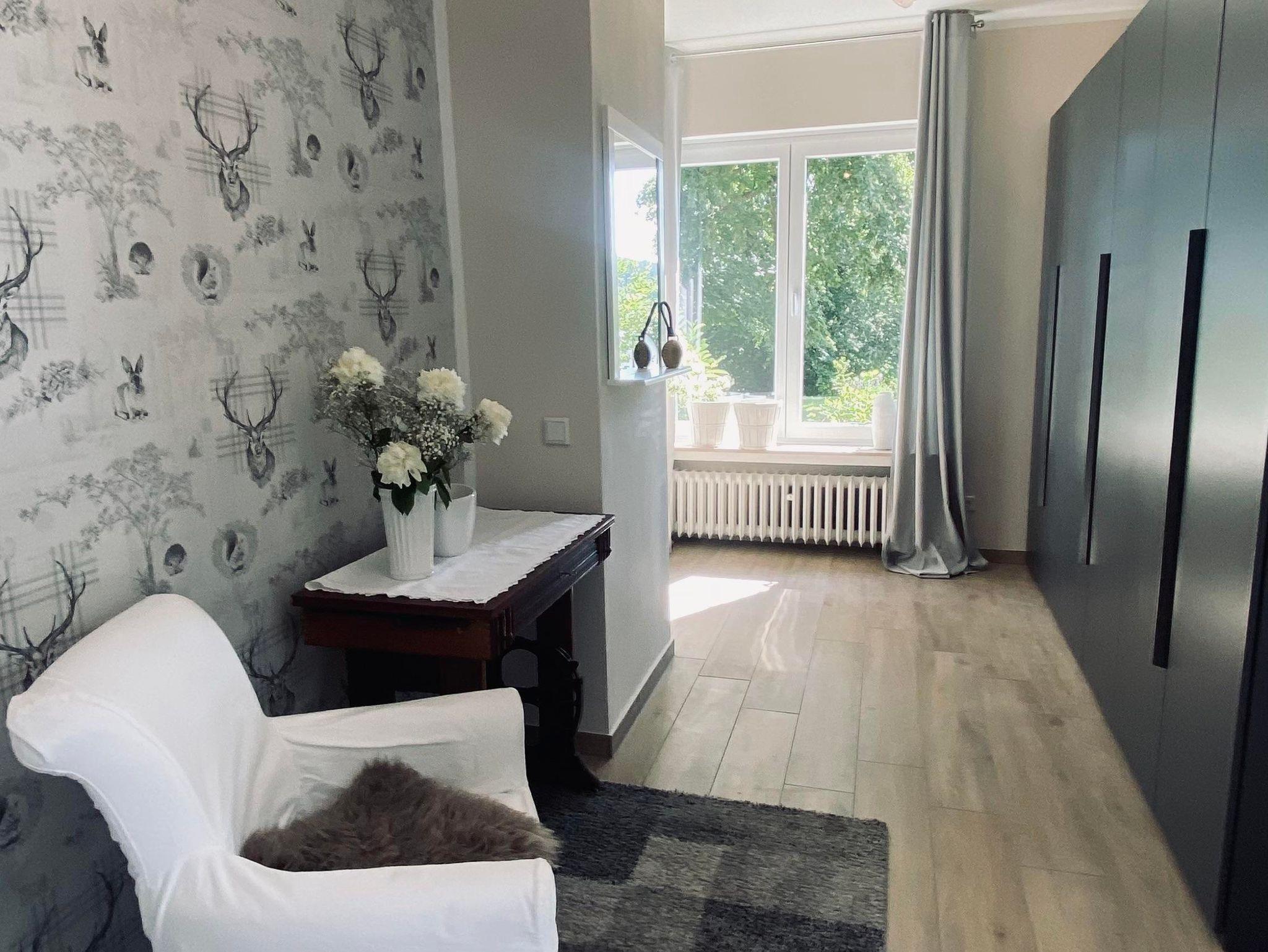 Ferienwohnung auf Gartenebene Unser Traumprinz bietet mit rund 85 Quadratmetern Platz für zwei bis drei Personen (ein Doppelbett im separaten Schlafzimmer, ein bequemes Schlafsofa im Wohnzimmer ohne Verdunkelung).