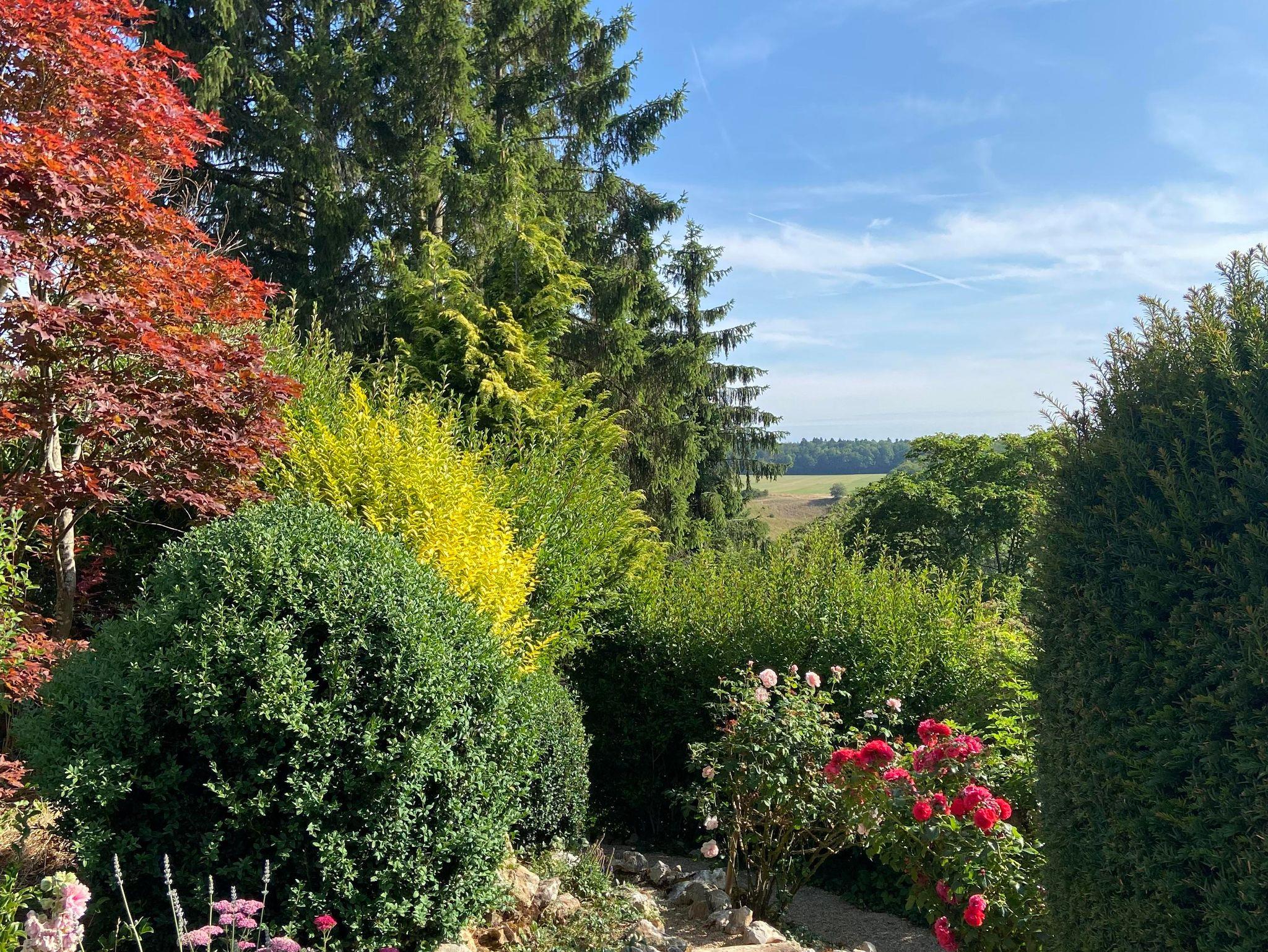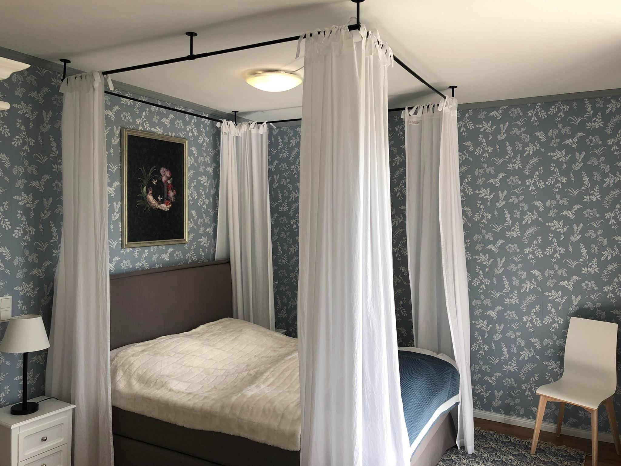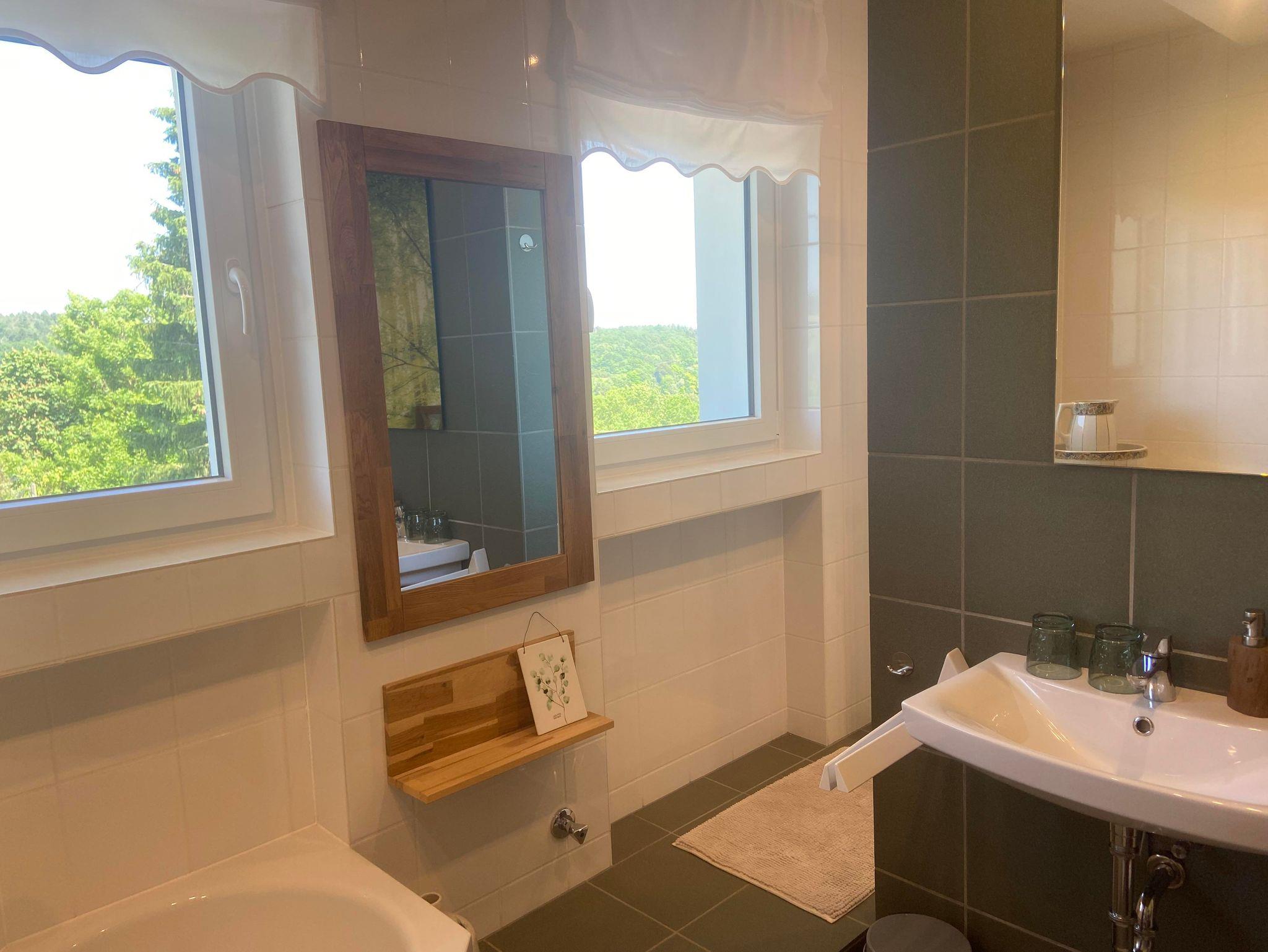 Mit traumhafter Aussicht auf den Garten und die Hügel des Betterberges ist unsere rund 75 Quadrameter große Ferienwohnung Das Krönchen im 1. OG für zwei Personen ausgelegt. Das Krönchen bietet euch ein geschmackvoll eingerichtetes Wohnzimmer, eine offene Küche mit Essplatz, ein großzügiges Bad, Schlafen im Himmelbett (1,60 m) und einen schönen Balkon mit herrlichem Blick in die Natur.