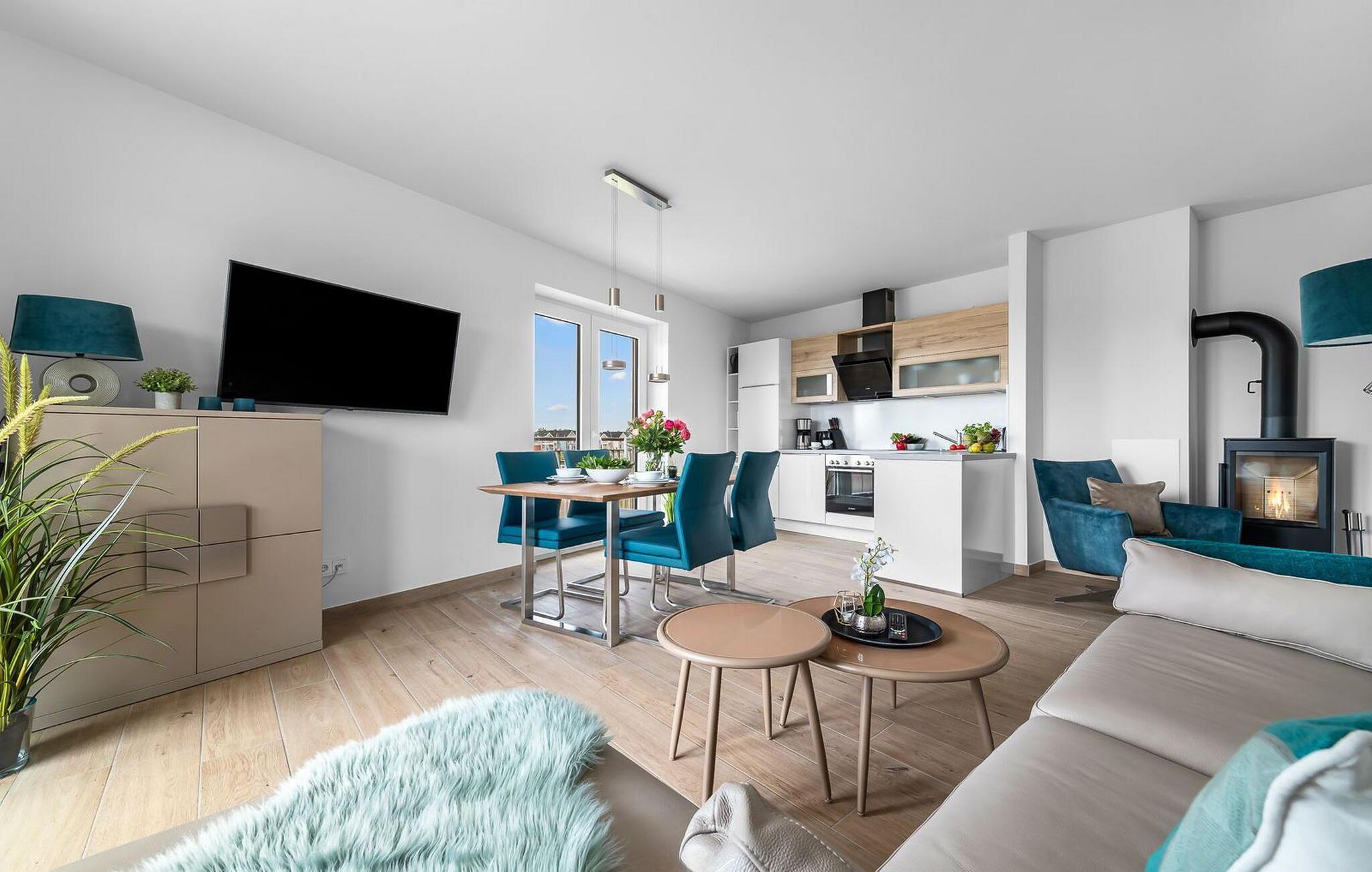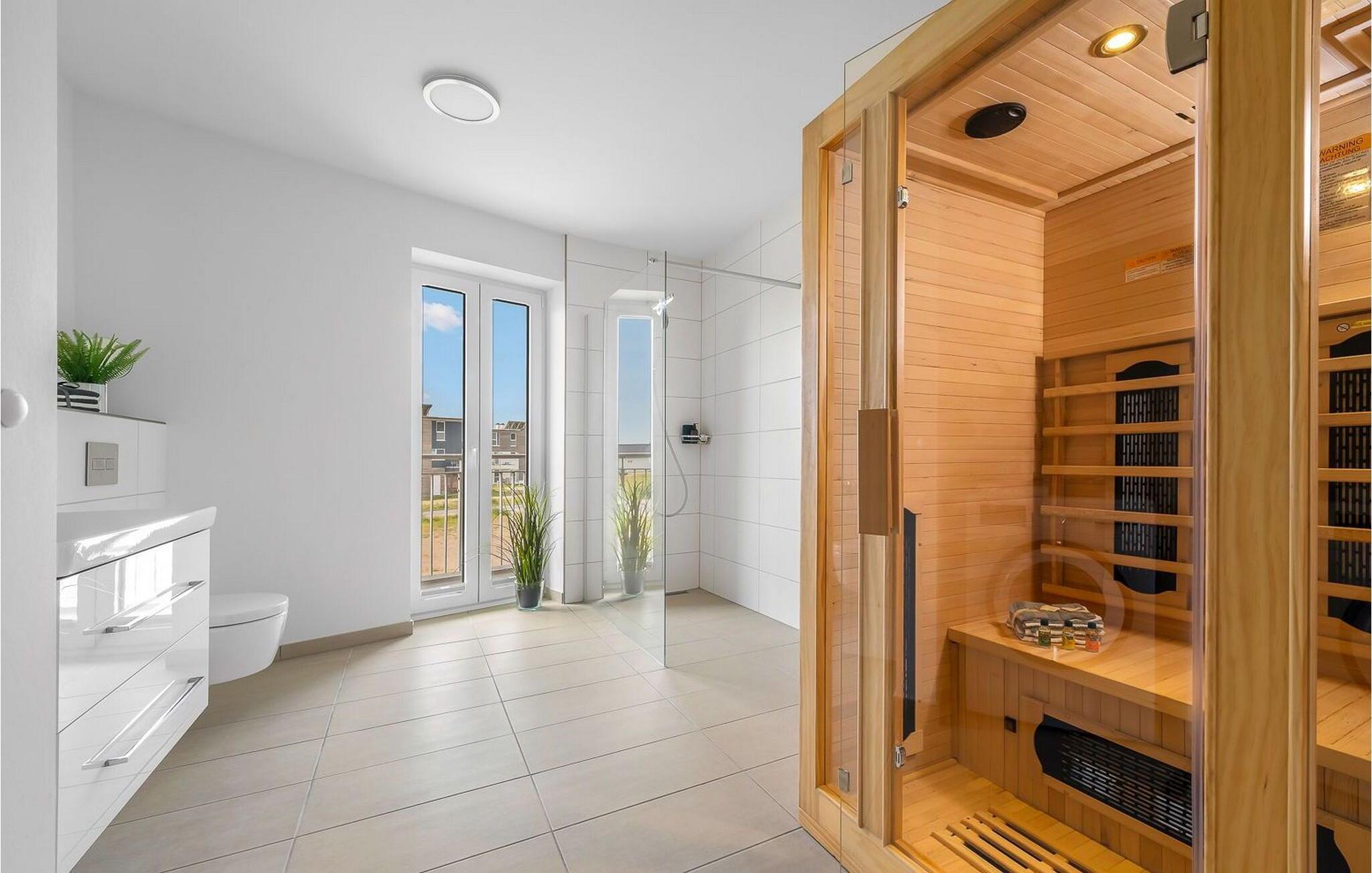 Velkommen til denne smukt beliggende lejlighed ved Østersøkysten! Denne charmerende lejlighed på første sal tilbyder jer det perfekte tilflugtssted for en uforglemmelig ferie. Den åbne planløsning med tilstødende, fuldt udstyret køkken er det ideelle mødested for hele familien på ethvert tidspunkt af året. Vinduerne fra gulv til loft og den lyse, moderne indretning skaber en indbydende atmosfære, der inviterer til at blive hængende og nyde. Herfra kan I tilberede måltider sammen, tilbringe hyggelige aftener eller blot nyde udsigten over det omkringliggende område. Selv i dårligt nordisk vejr får I noget for pengene her. Føl jer godt tilpas i den rummelige sofa og beslut, om I vil underholdes af smart-tv'et eller blot lytte til den brølende ild i pejsen. I tilknytning til opholdsområdet finder I et af lejlighedens højdepunkter: den store terrasse med sideudsigt til havnebassinet. Se travlheden på havnen her om morgenen med en kop kaffe eller et glas vin om aftenen - det lyder som en ferie! Lejligheden har to soveværelser, ideel til familier eller små grupper af venner. Hvert værelse inviterer jer til at slappe af og drømme, så I kan komme jer godt efter en begivenhedsrig dag på Østersøen. Et soveværelse har også et andet smart-tv. Et andet højdepunkt ved denne ferielejlighed er den infrarøde kabine, som tilbyder jer beroligende afslapning og regenerering. Fordyb jer i den hyggelige varme og lad hverdagens stress bag jer. Bruseren på gulvniveau giver også yderligere komfort. Weidefelder-stranden ligger inden for gåafstand, så I kan nyde den friske Østersøluft og det fine sand til enhver tid. Den charmerende havnepromenade med sine butikker og restauranter ligger også i umiddelbar nærhed. Hunde er velkomne i denne ferielejlighed, så jeres firbenede ven også kan nyde ferien i fulde drag. Et cykelskur er tilgængeligt til sikker opbevaring af jeres cykler, og en privat parkeringsplads lige foran døren sikrer bekvem ankomst og afgang. Lejligheden kan også nemt nås med elevator Vores yndlingssted er at afslutte aftenen komfortabelt på terrassen og tv er i øjeblikket tilgængelig fra sommeren 2024. Bemærk venligst: OstseeResort Olpenitz er meget populært, og der bygges fortsat i parken. Ikke desto mindre kan I se frem til en 5-stjernet standard og et førsteklasses ophold. Byggeaktiviteterne kommer ikke til at forstyrre jer på ferien, og derfor gives der ikke yderligere afslag i prisen.