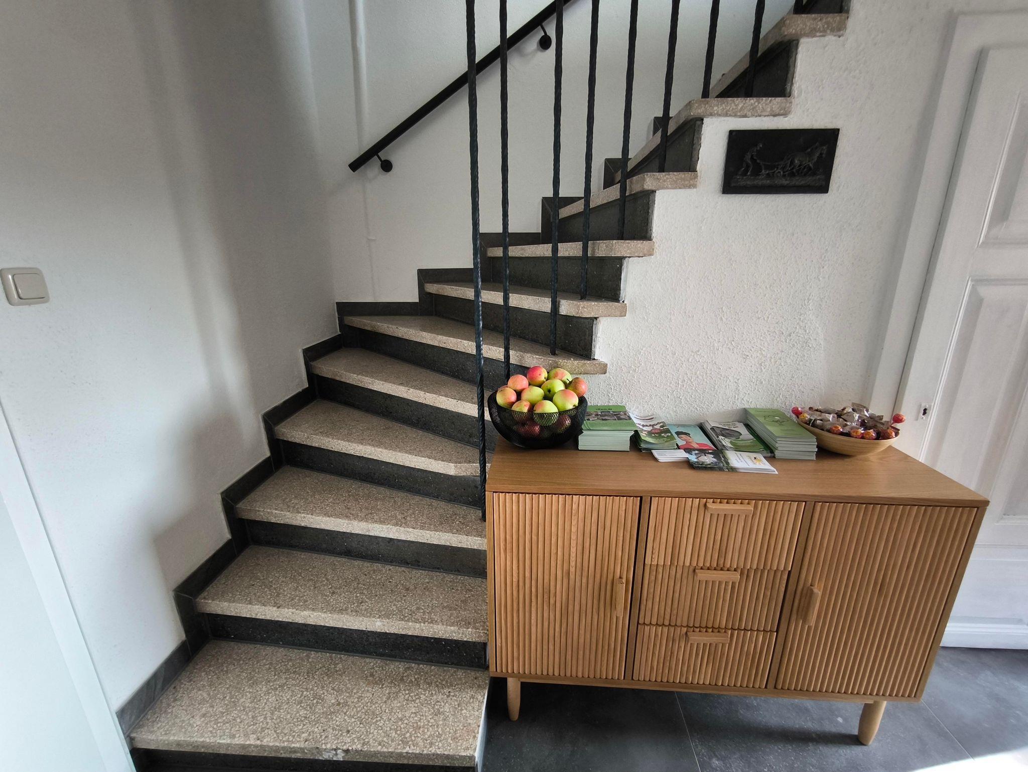 Die Nutzung des Gartens runden die Möglichkeiten ab. Je nach Saison darf auf der fußläufig (ca. 500m) zu erreichenden Streuobstwiese (www.obstplus.de) gerne selbst Obst gepflückt werden.