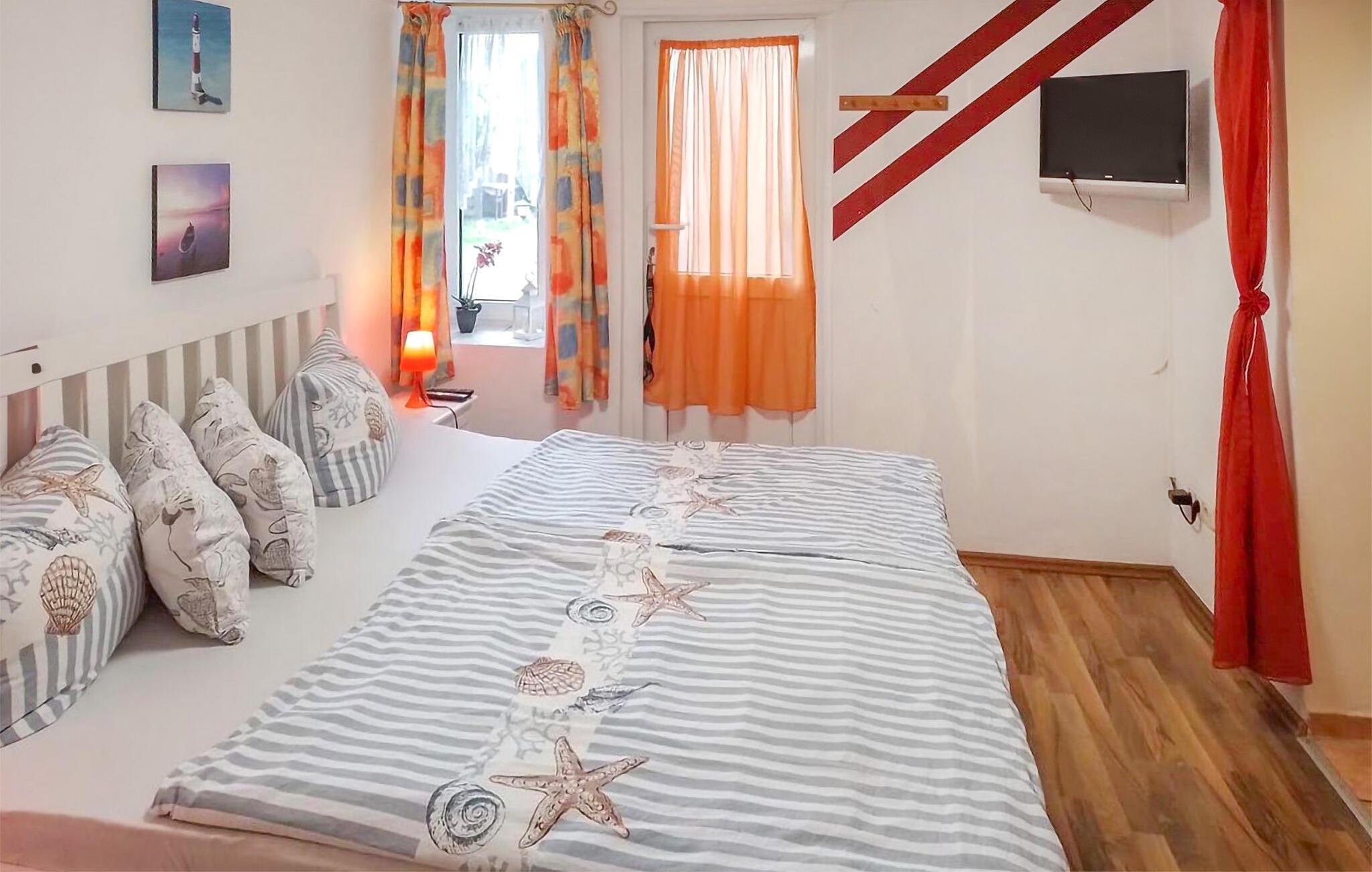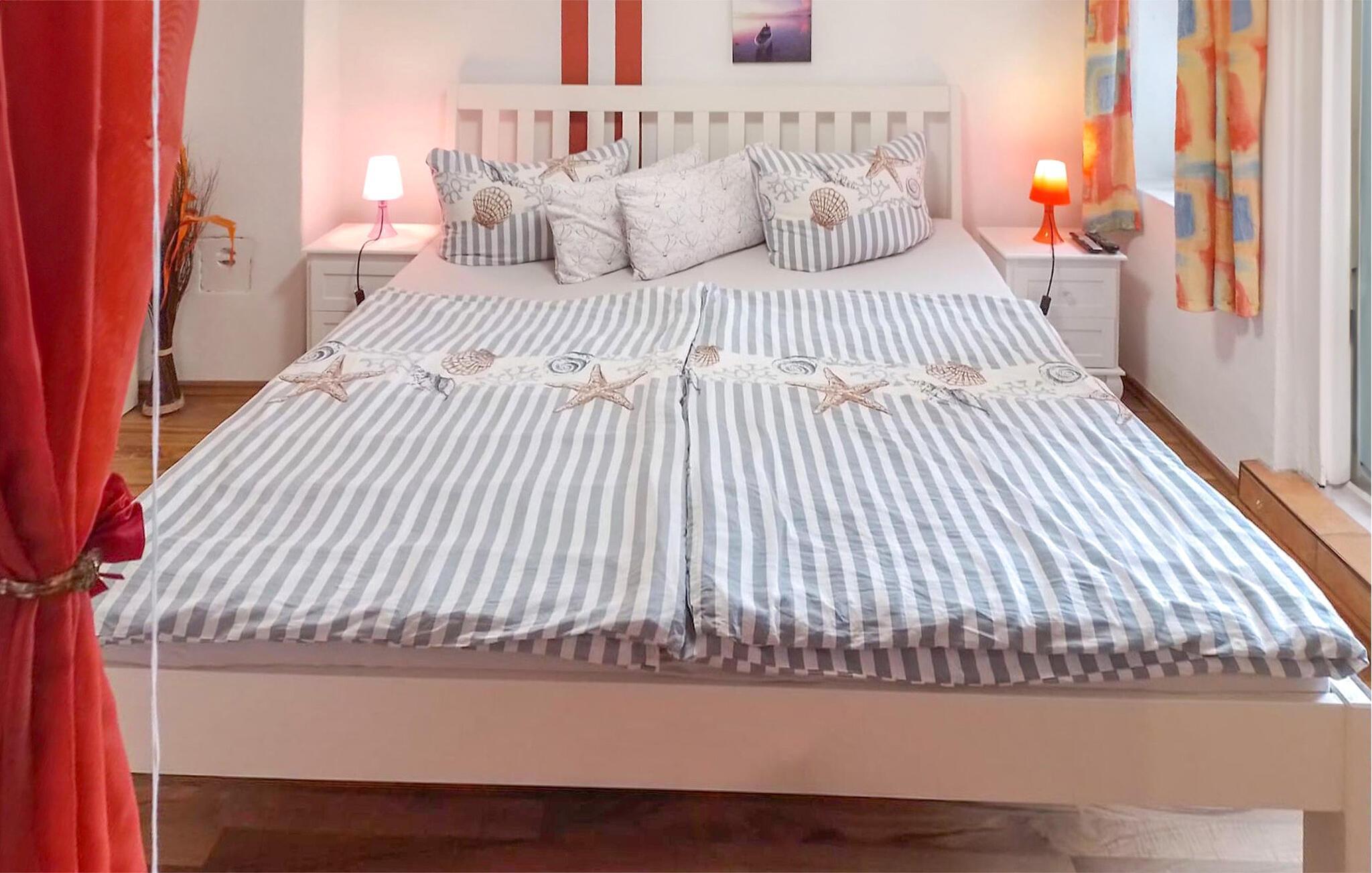 Ferielejligheden og de tre lejligheder ligger i et separat feriehus i gården til en villa ved havet, kun cirka 200 m fra Ahlbeck-molen og Østersøstranden. Butikker og restauranter ligger inden for få hundrede meter. På det udendørs område er der et lille overdækket opholdsområde, grillfaciliteter, to strandstole til fælles brug samt cykelkælder og parkeringsplads (fra 2024 mod et gebyr på EUR 3,00/dag). Den samlede pris inkluderer slutrengøring, sengelinned, håndklæder samt vand- og energiforbrug. Da Østersøferiestedet Ahlbeck er et spa-/rekreationsresort, opkræves der en spaskat på stedet. En hund er tilladt i denne ejendom. Lejligheden (ca. 20 kvm til 2 personer) ligger i sommerhusets kælder Den er udstyret med kombineret stue/soveplads (dobbeltseng, garderobe, opholdsområde, TV og radio), separat køkken med el. kogeplade og spiseplads, bad/toilet, centralvarme og møbleret udendørs opholdsområde. Badebyerne Bansin, Heringsdorf og Ahlbeck er de såkaldte kejserlige feriesteder på øen Usedom. De har brede sandstrande, moler med moler og er forbundet med hinanden af en promenade, der fører til Swinoujscie i Polen. I byerne er der leje af cykler, båd og strandstole, tennisbaner og et netværk af godt afmærkede vandrestier. Et moderne vandland, "Ostseetherme", ligger centralt mellem Heringsdorf og Ahlbeck. Grænseovergangen til Polen kan nås fra Ahlbeck på få minutter.