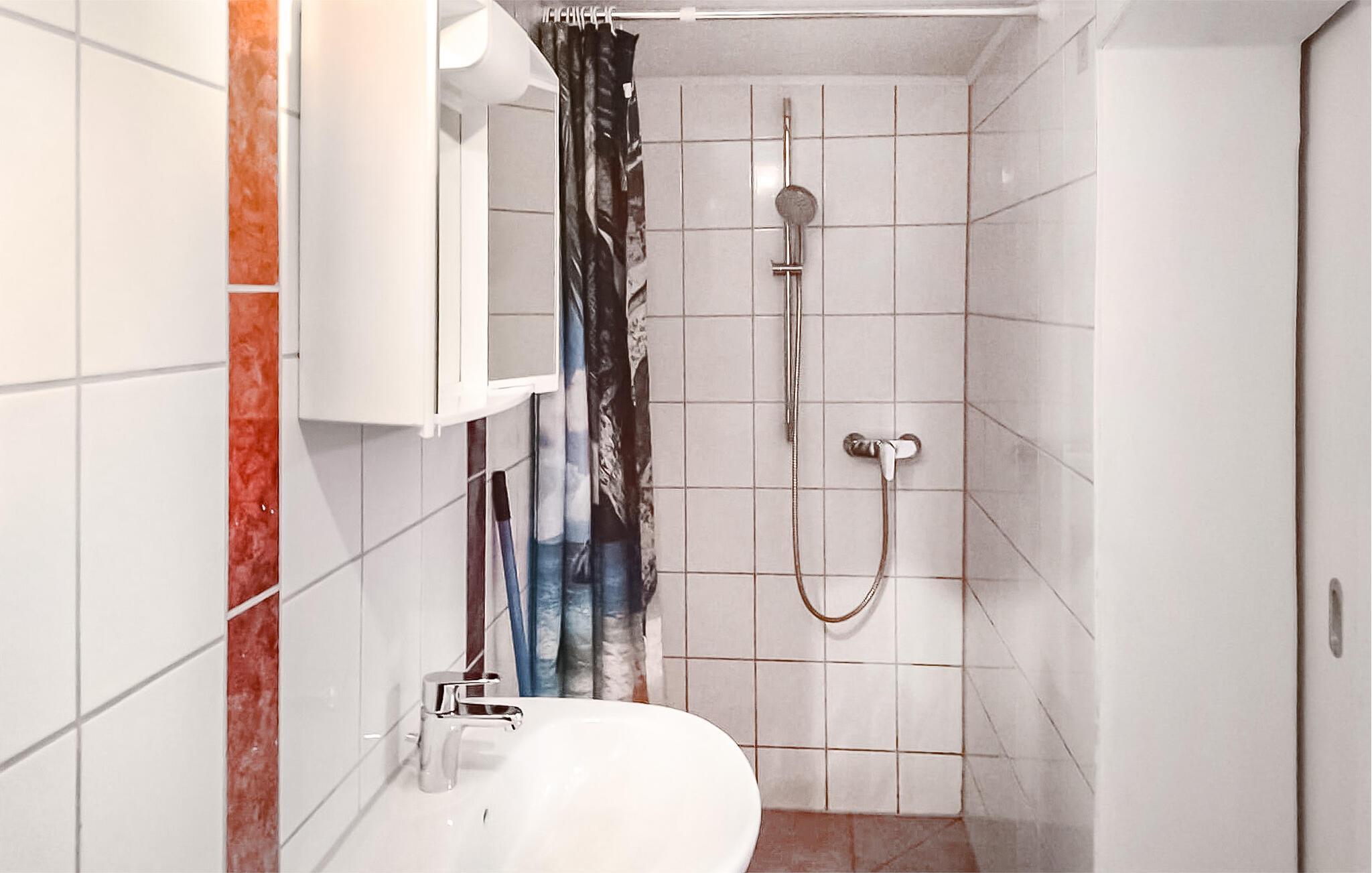 Badeværelse (nr. 1) - WC. Varmt og koldt vand. Bruser