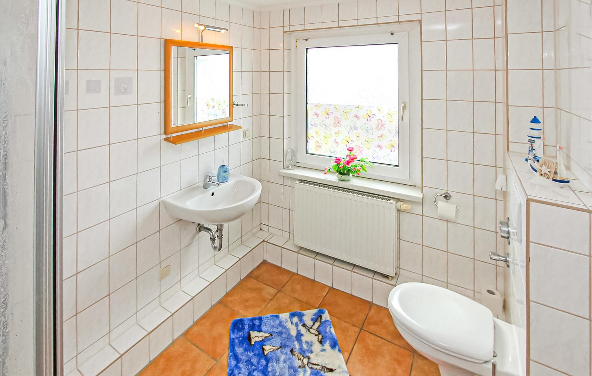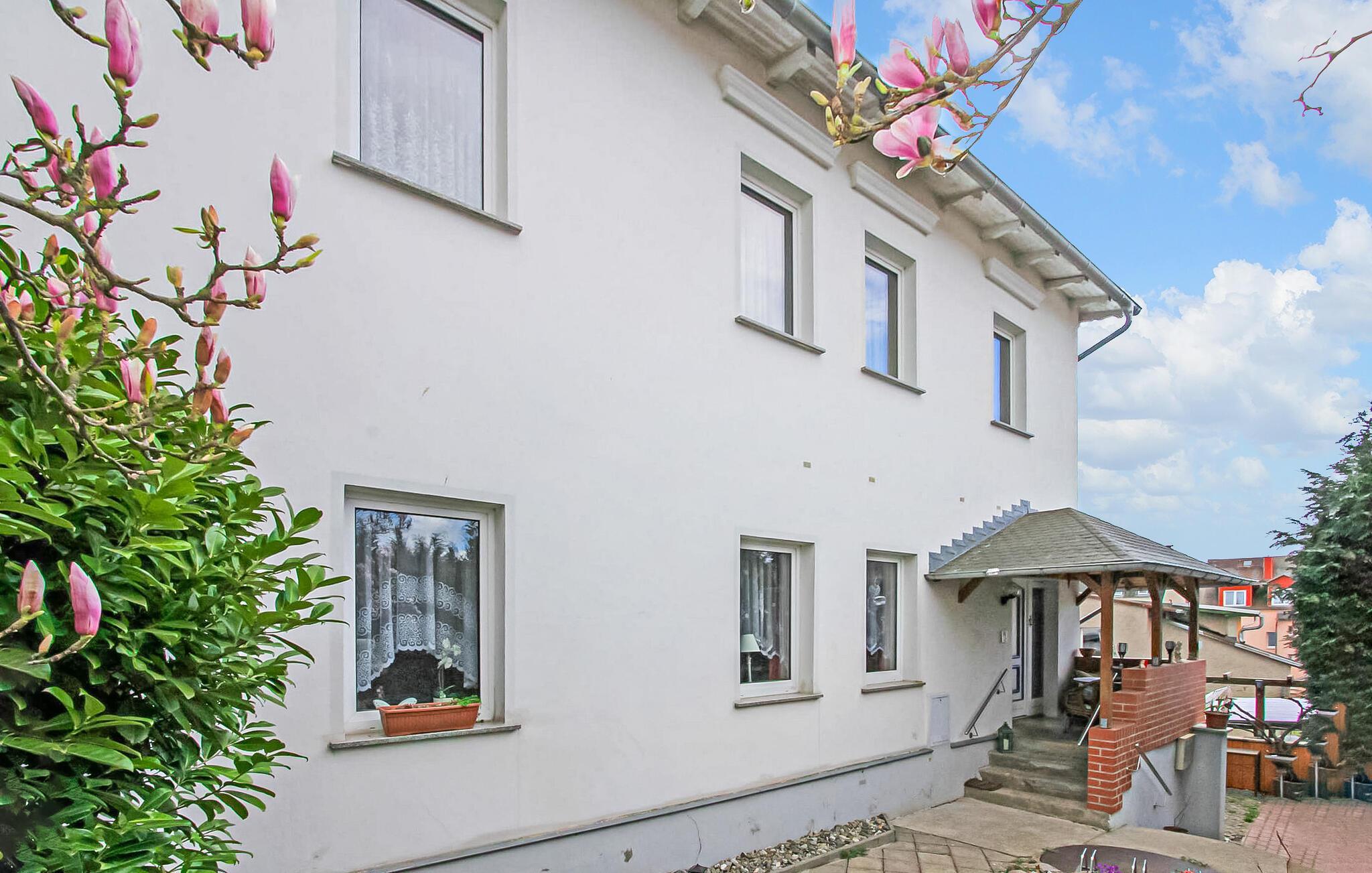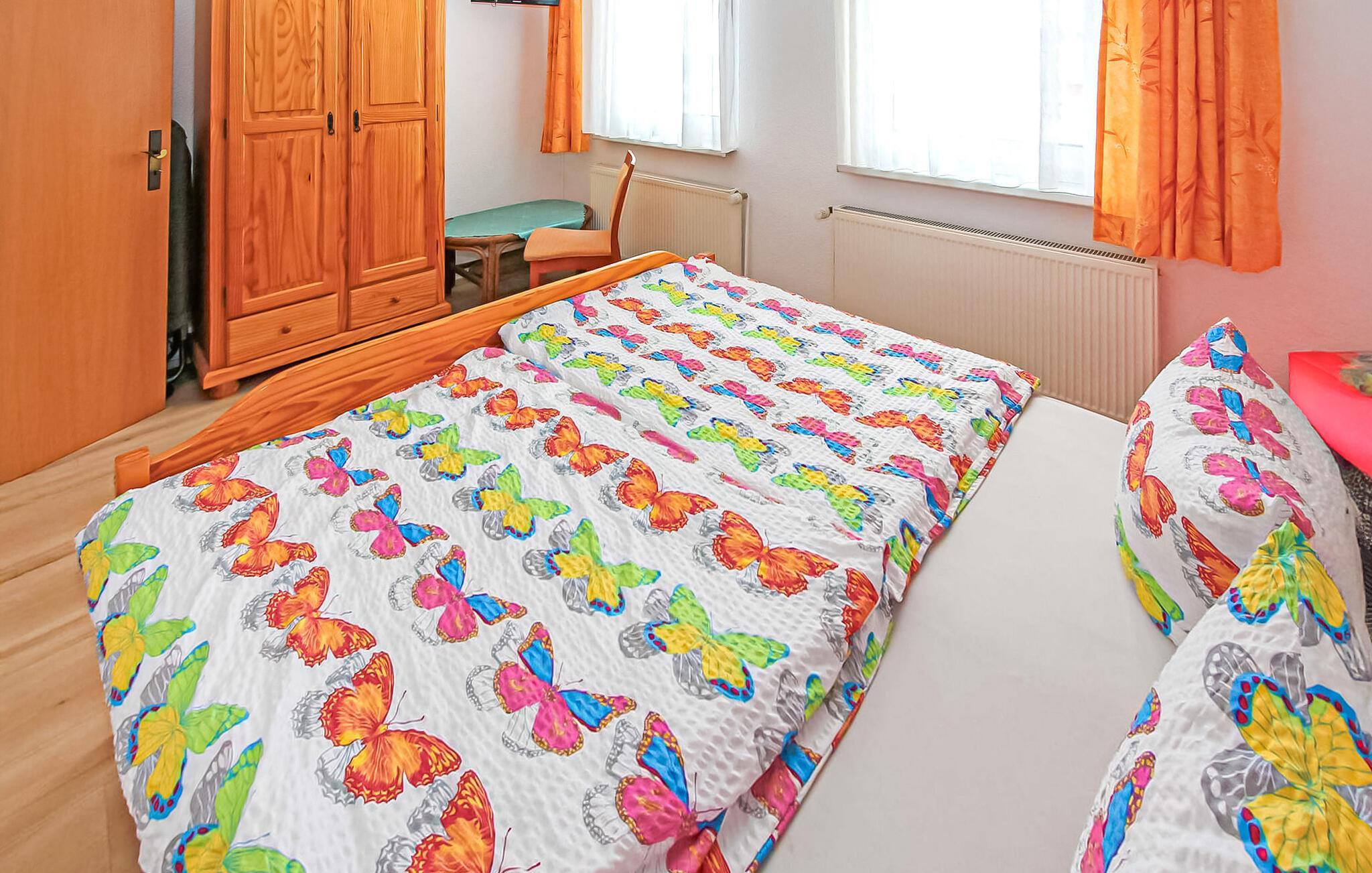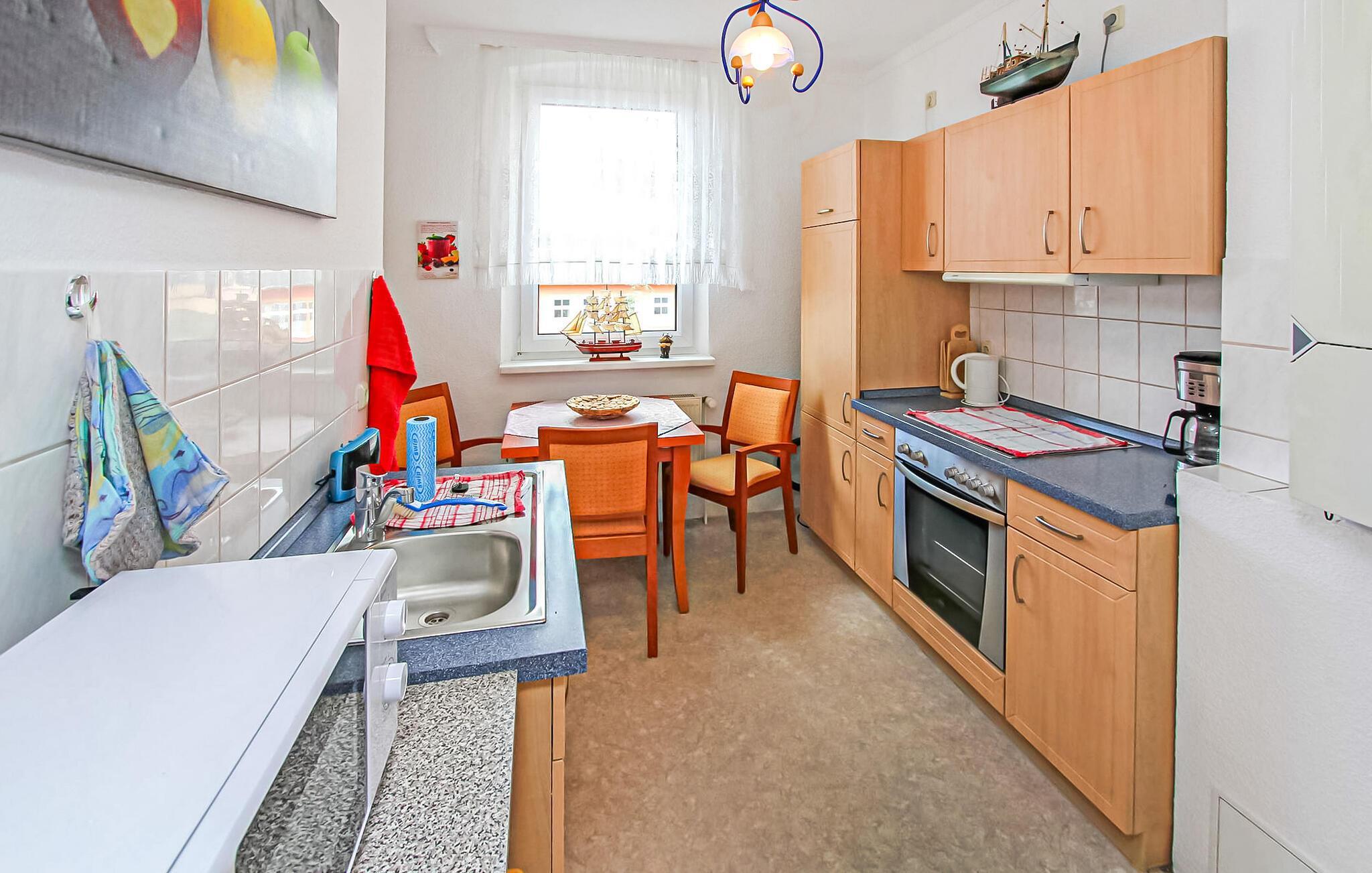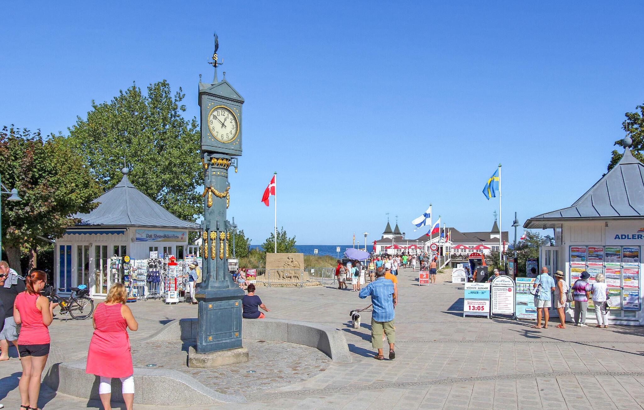 Denne 55 kvm store ferielejlighed til 4 personer ligger på øverste etage af en separat ferielejlighed i gården til en spavilla, cirka 200 m fra Ahlbeck-molen og Østersøstranden. Butikker og restauranter ligger inden for få hundrede meter. Lejligheden har en stue (polstrede møbler, nogle med sovefunktion (stueplan), fladskærms-tv), et soveværelse (dobbeltseng, fladskærms-tv). På øverste etage er der en ekstra sovealkove med 2 enkeltsenge. Lejligheden har separat køkken (spisebord, el-komfur med ovn, køleskab med fryser, mikroovn, diverse køkkenmaskiner) og badeværelse med brus/toilet. Udenfor er der et lille overdækket opholdsområde i indgangspartiet og en strandstol. En privat parkeringsplads per lejlighed, cirka 8 minutters gang væk (EUR 3,00/dag). Den samlede pris inkluderer slutrengøring, sengelinned, håndklæder samt vand- og energiforbrug. Da Østersøferiestedet Ahlbeck er et spa-/rekreativt feriested, opkræves en turistskat på stedet. Én hund er tilladt i denne ejendom. Badebyerne Bansin, Heringsdorf og Ahlbeck er de såkaldte kejserlige feriesteder på øen Usedom. De har brede sandstrande, moler med moler og er forbundet med hinanden af en promenade, der fører til Swinoujscie i Polen. I byerne er der leje af cykler, båd og strandstole, tennisbaner og et netværk af godt afmærkede vandrestier. Et moderne vandland, Ostseetherme, ligger centralt mellem Heringsdorf og Ahlbeck. Grænseovergangen til Polen kan nås fra Ahlbeck på få minutter.