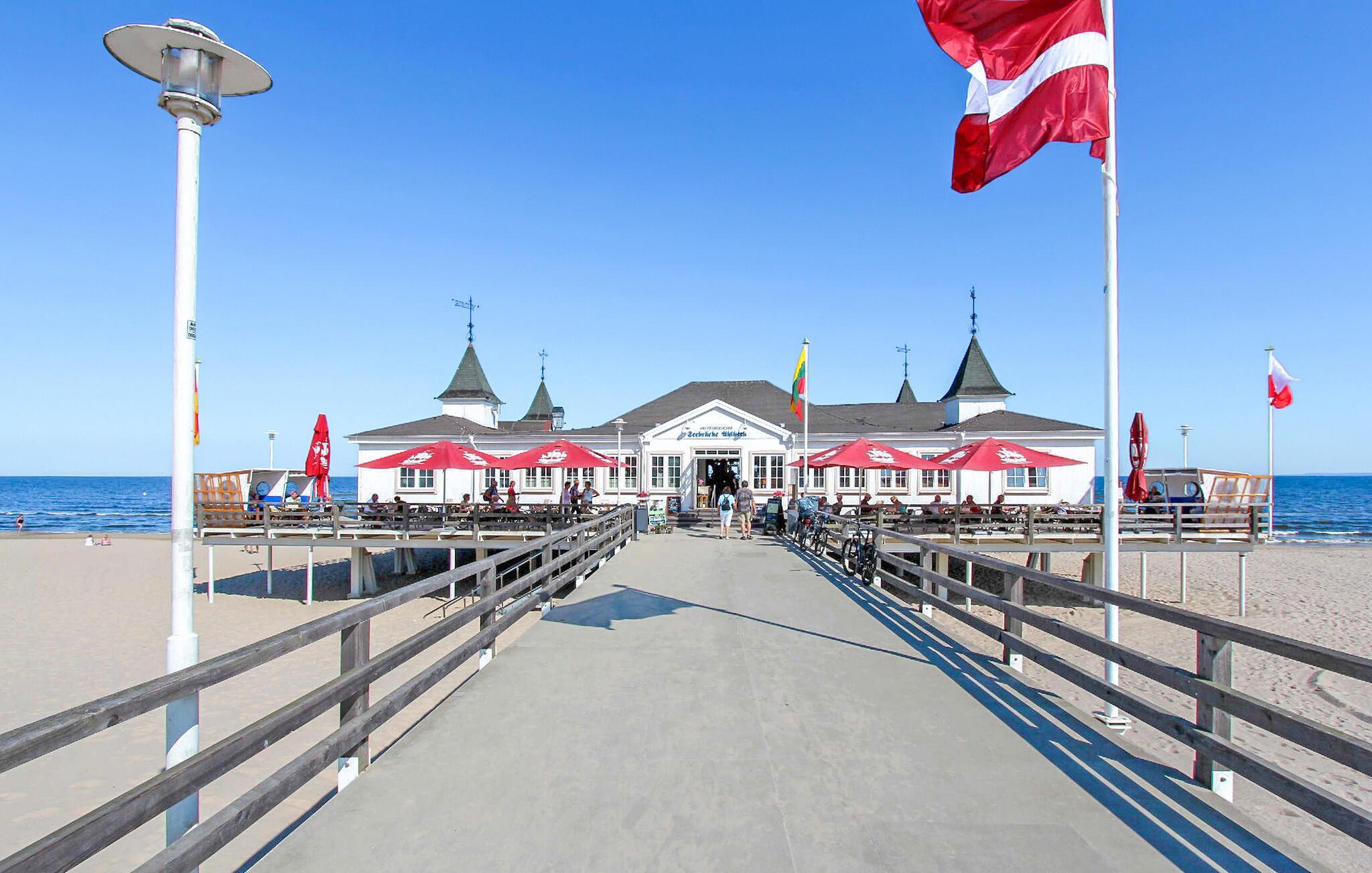 Denne 55 kvm store ferielejlighed til 3 personer ligger i stueetagen af en separat ferielejlighed i gården til en spavilla, cirka 200 m fra Ahlbeck-molen og Østersøstranden. Butikker og restauranter ligger inden for få hundrede meter. Lejligheden har en stue (polstrede møbler, nogle med sovefunktion (stueetagen), fladskærms-tv), et soveværelse (dobbeltseng, fladskærms-tv), et separat køkken (spisebord, el-komfur med ovn, køleskab) med fryser, mikroovn, diverse køkkenmaskiner) samt badeværelse med brus/toilet. Udenfor er der et lille overdækket opholdsområde i indgangspartiet og en strandstol. En privat parkeringsplads per lejlighed, cirka 8 minutters gang væk (EUR 3,00/dag). Den samlede pris inkluderer slutrengøring, sengelinned, håndklæder samt vand- og energiforbrug. Da Østersøferiestedet Ahlbeck er et spa-/rekreationsresort, opkræves der en spaskat på stedet. En hund er tilladt i denne ejendom. Badebyerne Bansin, Heringsdorf og Ahlbeck er de såkaldte kejserlige feriesteder på øen Usedom. De har brede sandstrande, moler med moler og er forbundet med hinanden af en promenade, der fører til Swinoujscie i Polen. I byerne er der leje af cykler, båd og strandstole, tennisbaner og et netværk af godt afmærkede vandrestier. Et moderne vandland, Ostseetherme, ligger centralt mellem Heringsdorf og Ahlbeck. Grænseovergangen til Polen kan nås fra Ahlbeck på få minutter.