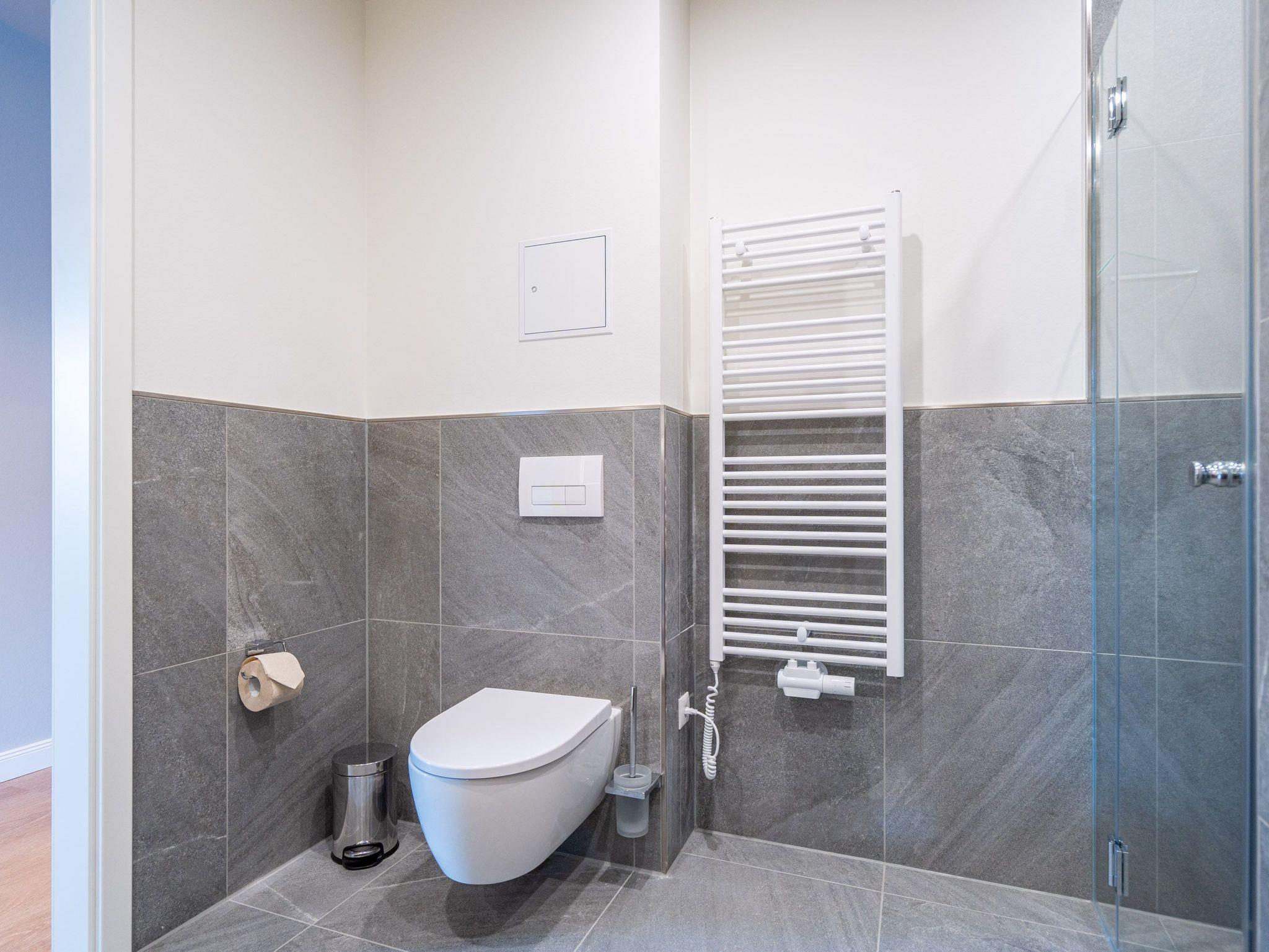Die 2024 fertig gestellte Strandterrasse liegt direkt an der belebten Strandpromenade und bietet einen einzigartigen Ausblick auf die Grand Dame der historischen Seebrücken sowie die historische Konzertmuschel, einem beliebten Treffpunkt für Kunst und Kultur. Dahinter liegt die Ostsee ? ein Panorama, das zu den schönsten in den Kaiserbädern gehört. Es ist wie das Abtauchen in eine andere Zeit. In eine Zeit, in der man mit Stock, Sonnenschirm und Hut fürs ?Sehen und gesehen werden? über die Promenade schlenderte; aber auch in eine Zeit, in der ? damals wie heute ? Zeit einmal für eine kurze Weile keine Rolle spielt. Weil man angekommen ist im Loslassen, Entspannen und Genießen. Es ist dieser besondere Geruch nach Meeresluft und Freiheit, der in Erinnerung bleibt. Dazu die Bilder, die man mitnimmt. Von langen Strandspaziergängen, vom Lachen in fröhlich schäumenden Ostseewellen, von der Zeit in einem wunderschönen Urlaubsdomizil. Denn genau das ist die Strandterrasse mit ihren 56 modernen und exklusiven Ferienappartements direkt gegenüber der Ahlbecker Seebrücke. Die Ein-, Zwei- oder Dreizimmerwohnungen ? zwischen 40 und 70 Quadratmeter groß ? sind von einer Innenarchitektin gemeinsam mit unserem Erfahrungsschatz an Gästewünschen mit viel Liebe zum Detail und ganz individuell konzipiert worden. Entspannung und Wohlfühlen stehen an erster Stelle. Alles ist aufeinander abgestimmt und sorgt für eine gemütliche Atmosphäre. Wählen Sie zwischen einem Domizil in einem hellen, sandfarbenen Designkonzept oder einem Appartement mit anthrazitfarbenen Farbakzenten. Alle Appartements verfügen gleichermaßen über eine stilvolle und komfortable Einrichtung, die passgenau angefertigt worden ist, sowie über moderne Küchen und Bäder. Jedem Schlafzimmer ist ein eigenes Bad mit Dusche zugeordnet (außer App. B4.5). Die Appartements besitzen fast alle einen Balkon ? viele schauen sogar zur Ostsee hinaus. Die meisten Feriendomizile haben einen Elektrokamin und Infrarotsaunen. Im Erdgeschoss befindet sich ein separater Gemeinschaftsraum für Fahrräder. Außerdem besteht die Möglichkeit, im Gemeinschaftswaschraum 2 Waschmaschinen [&] Trockner zu nutzen. Ergänzt wird das Angebot durch eine Gemeinschaftssauna, die täglich von 11:00 bis 22:00 Uhr nutzbar ist. In der Tiefgarage (Einfahrtshöhe 2,03 Meter) steht für jede Wohnung 1 Pkw-Stellplatz zur Verfügung. Ist alles zur Zufriedenheit untergebracht? Dann kann der Urlaub ja beginnen. Und beim Blick vom Balkon über die Ostsee treffen sich zum Sonnenaufgang das Heute und das Damals. Gelassenheit legt sich beim Gang hinunter an den Strand auf die Seele. Jetzt darf die Zeit stehenbleiben.