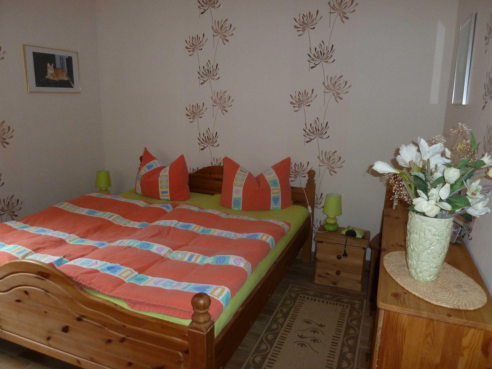 Die Ferienwohnung ist ca. 50 qm groß und ideal für 2 Personen. 1 Aufbettung mit Beistellbett. - Küchenzeile, großer Kühlschrank, 2-Platten Herd, Spüle, Mikrowelle und sämtliches Küchenzubehör
