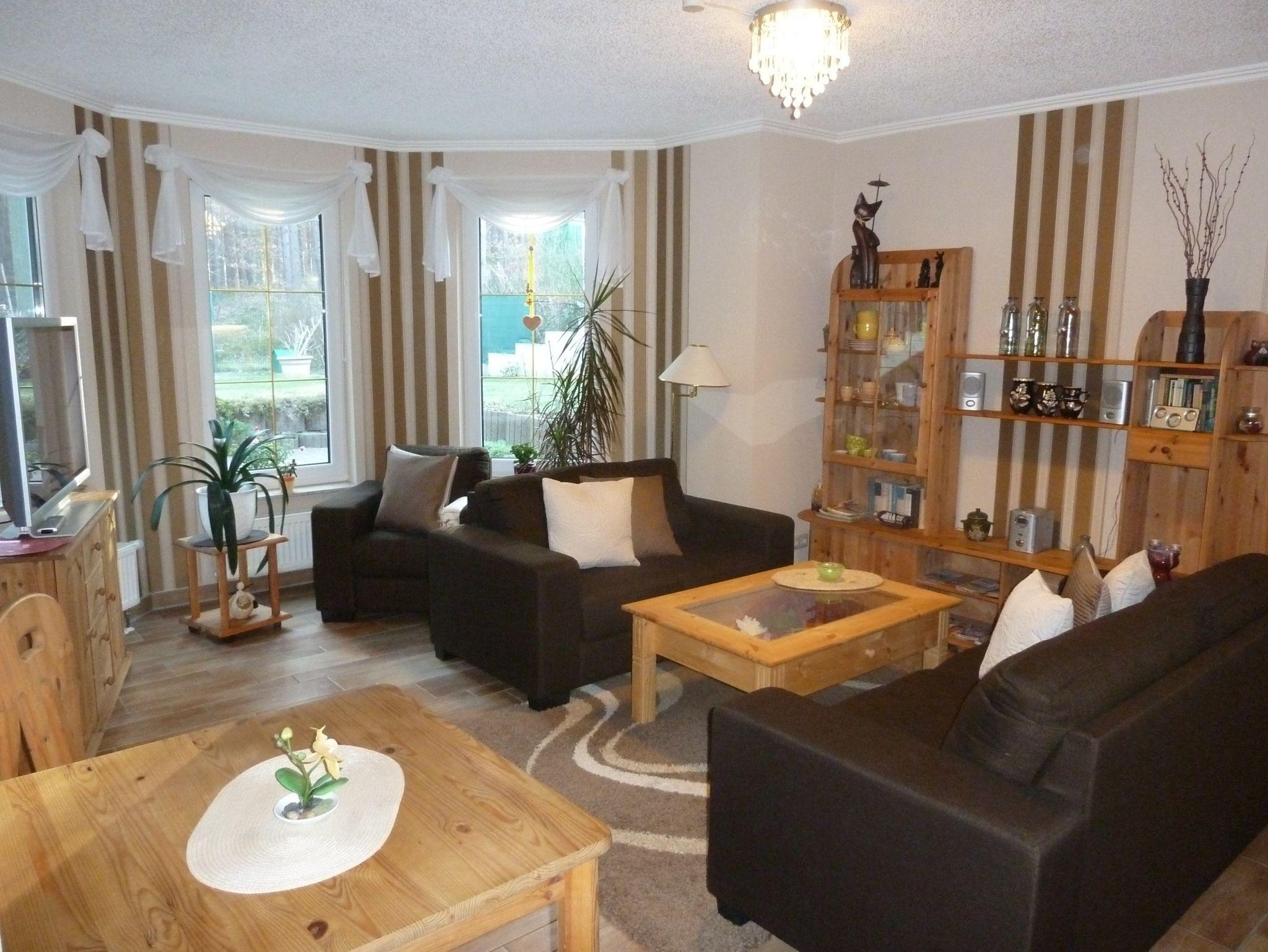 - Wohnzimmer; gemütlicher Erker mit Sitzgruppe2-Sitzer, 3-Sitzer und Sessel, Essecke, Kabel - TV, Radio, CD-Spieler