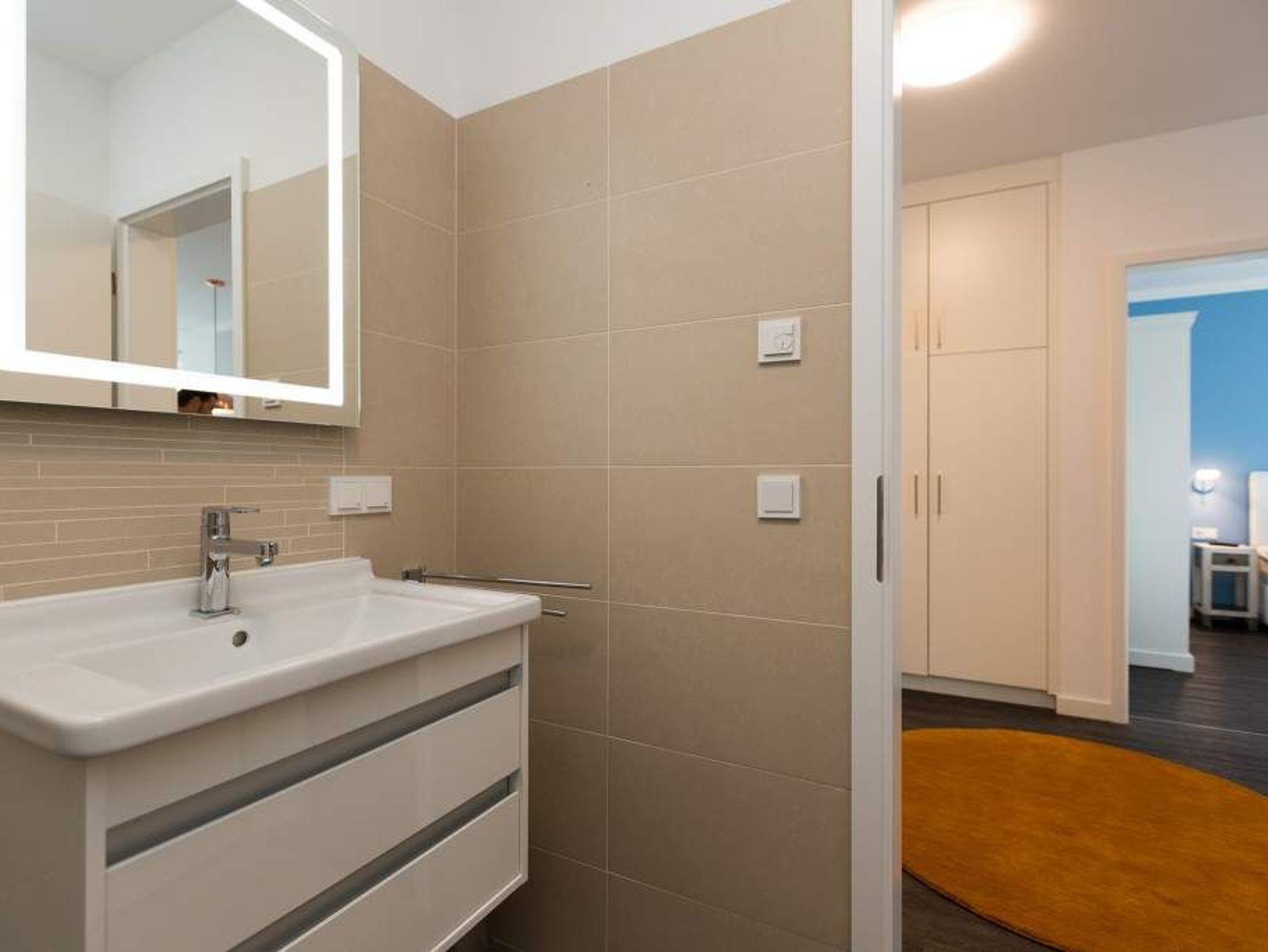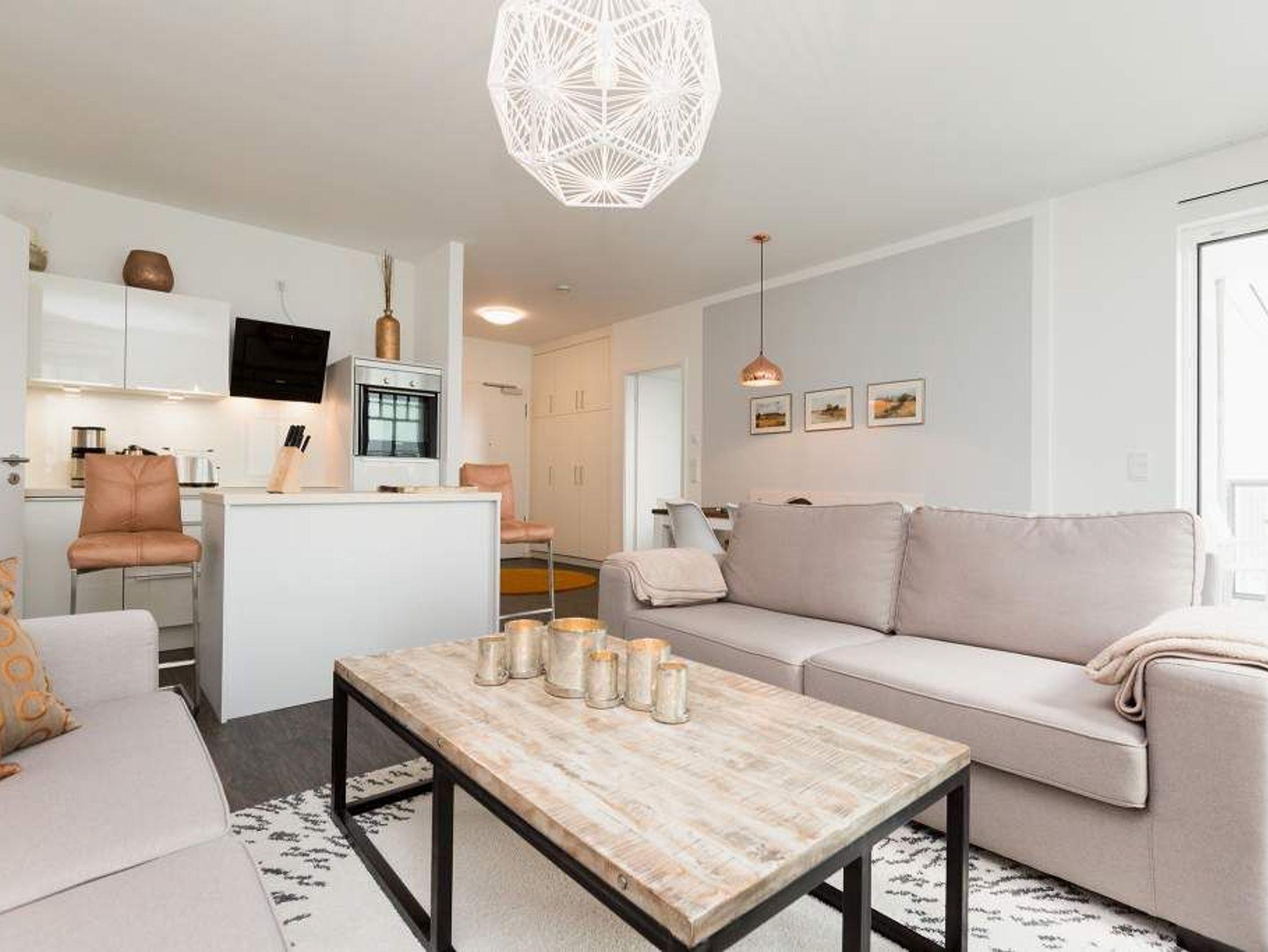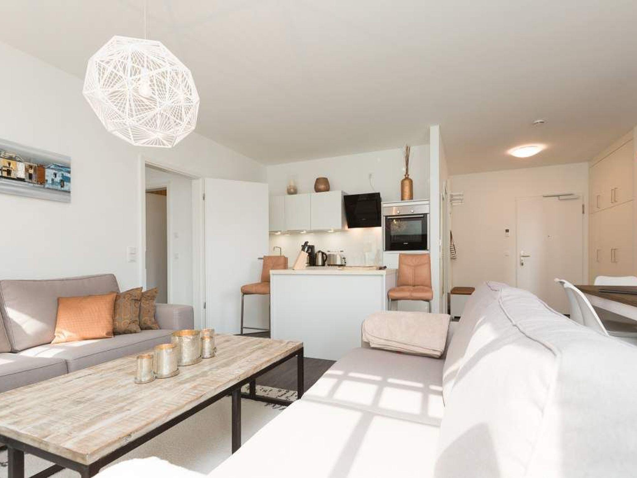 Schon beim Frühstück auf dem schönen Balkon legt sich das Morgenglitzern der Ostsee wie tausend Diamanten in Ihren Tag. Luxus pur. Und das direkt vor der Haustür. Lichtdurchflutet und hell sind die 73 Quadratmeter im ersten Obergeschoss der Villa Westend, machen Ihren Urlaub zu einer exklusiven Auszeit. Hier fühlt man sich angekommen. Ab der ersten Minute. In diesem 3-Zimmer-Appartement können sich vier Erwachsene eine wunderschöne Zeit machen. Dafür sorgt auch das luftige Wohn-Ess-Zimmer. Hier können Sie auf den beiden gemütlichen und kuscheligen Sofas mit Blick auf den großen Flat-TV oder den Elektrokamin einfach mal die Seele baumeln lassen. Denn was gibt es schöneres als dem Flammenspiel zuzuschauen. Der Essbereich wartet mit einem Echtholztisch und stylischen Vintage-Schalenstühlen nur darauf, Ihnen das Beisammensitzen so bequem wie möglich zu machen. Die offene Küche ist komplett ausgestattet. Hochwertige Geräte erleichtern Ihnen den Küchendienst. Ganz modern und angesagt ? die freistehende Arbeitsplatz-Insel mit Keramikplatte. Hier findet das gemütliche Beisammensein seinen Höhepunkt. In den beiden Schlafzimmern gibt es in den Kleiderschränken viel Fläche zur Aufbewahrung. Und die beiden Doppelboxspringbetten (1,80 m x 2,00 m) machen nicht nur beim Schlafen Spaß. Die Wohnung verfügt über zwei Bäder. Wobei das Masterbad ein kleines Highlight besitzt: Eine Panorama-Sauna. Ansonsten bieten beide Bäder je eine Tropen-Dusche, große Waschtische und Toiletten. Für eine exklusive Auszeit sind die Betten bezogen und Handtücher liegen bereit. In der Tiefgarage steht der Stellplatz Nr. 17 zur Verfügung.