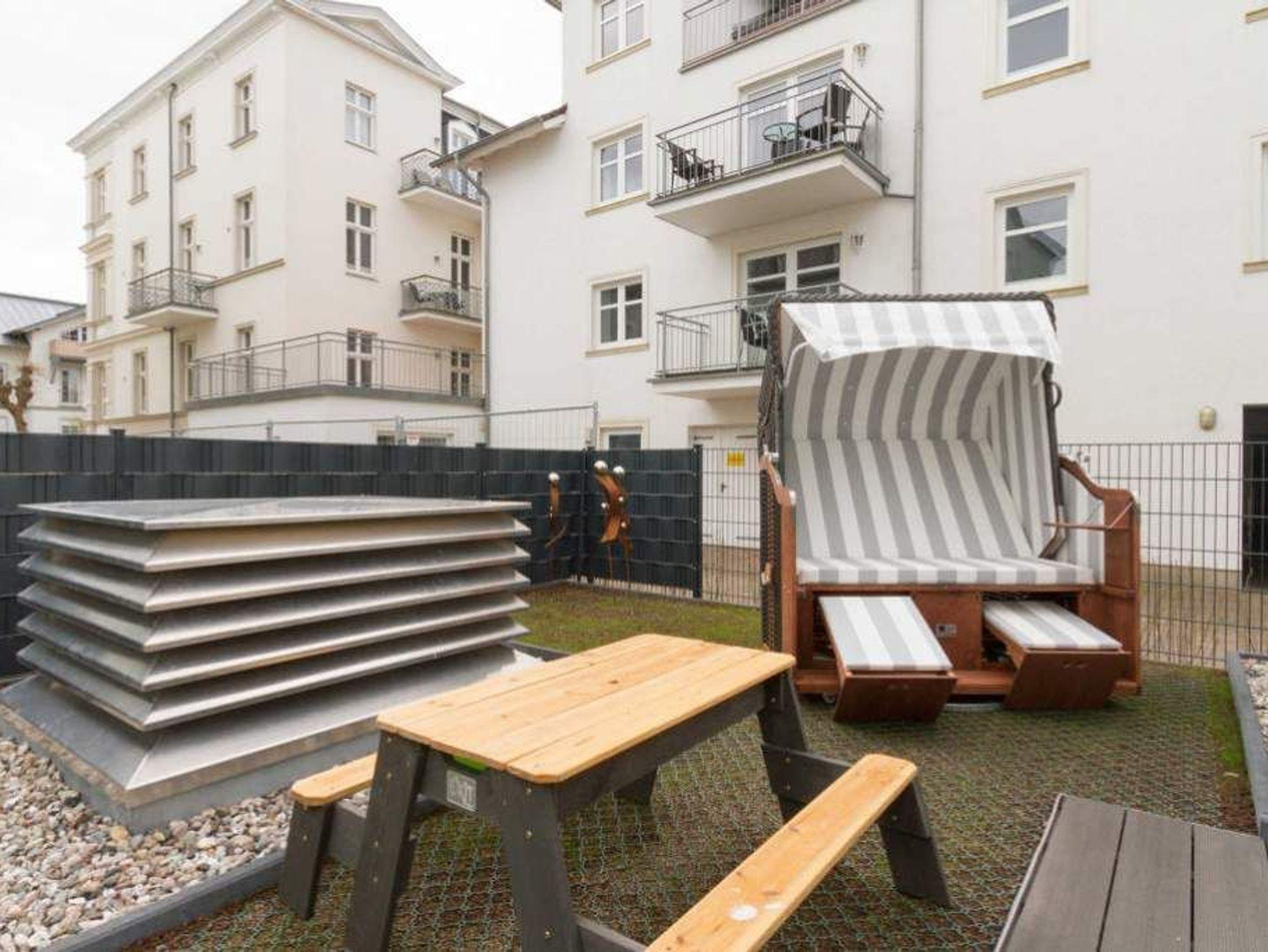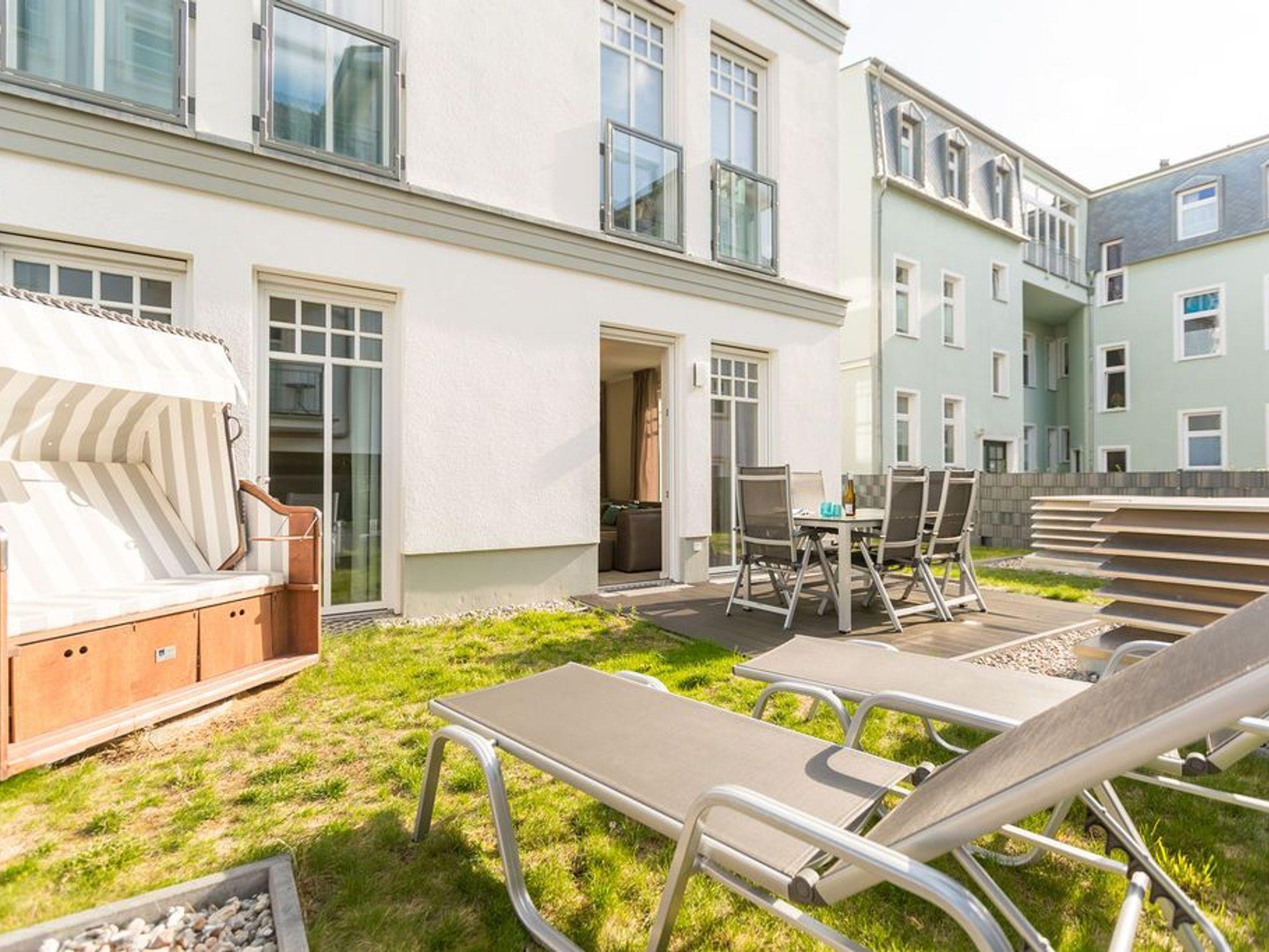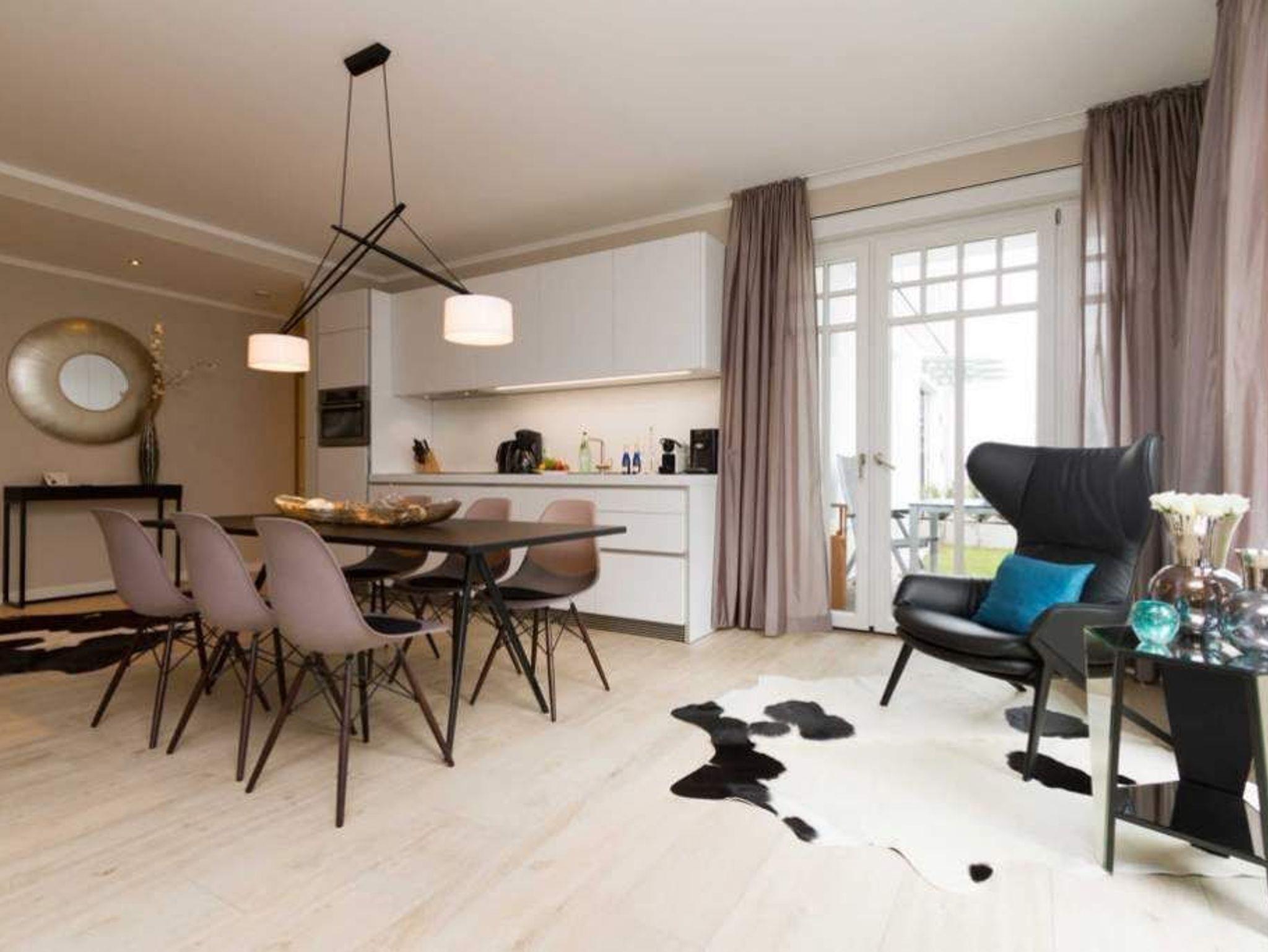Ein Domizil der Extraklasse erwartet Sie im Erdgeschoss der Villa Westend. 3 Schlafzimmer, 3 Bäder und ganz viel Wohlfühlatmosphäre auf großzügigen 125 qm, Platz für 6 Personen und 2 Kleinkinder (im Babyreisebett), perfekt nicht nur für Familien und befreundete Paare. Die Ausstattung: Luxus, von Interieur-Designern mit sehr viel Liebe zum Detail dekoriert. Und das Meer liegt quasi vor der Haustür, Meeresrauschen inklusive. Schon beim Eintreten offeriert sich ein großer Eingangsbereich, wertige Einbauten sorgen für viel Ablagemöglichkeiten, auch die Waschmaschine ist hier versteckt. Ihr Wohn- und Essbereich ist offen gestaltet , durch große Fensterfronten strömt viel Tageslicht hinein. Die loungige Rolf Benz Sofalandschaft, ausgestattet mit Flat-TV, Blu-Ray-Player und einem modernen Elektrokamin, der per Knopfdruck eine gemütliche Kaminatmosphäre zaubert, lädt zum Relaxen ein. Die moderne Küche ist komplett ausgestattet, der Essplatz davor harmoniert im Wohn-Essbereich gekonnt als zentraler Punkt der Wohnung. Drei Schlafzimmer mit exklusiven Doppelboxspringbetten (180 x 220 cm und 2 mit 180 x 210 cm) und jeweils eigenem[nbsp] Flat-TV sorgen für entspannte Nächte. Ein Masterbad mit Regendusche, ein Duschbad und ein Wellnessbad mit toller Sauna, Regendusche und Badewanne ergänzen die Wohnung. Der Urlaubstag startet entspannt bei einem Frühstück auf der nordseitigen Terrasse. Die Ostsee, nur einen Steinwurf entfernt, bietet mit Meeresrauschen die entsprechende Urlaubskulisse. Nach einem Strandtag genießt man auf der Südterrasse im Strandkorb die Usedomer Sonne. Urlaub at it´s best! Für Ihren Komfort sind die Betten bei der Anreise bezogen und die Erstausstattung Handtücher liegt für Sie bereit. Es stehen 2 Pkw Stellplätze ( Nr. 19 [&] 20) in der Tiefgarage zur Verfügung.