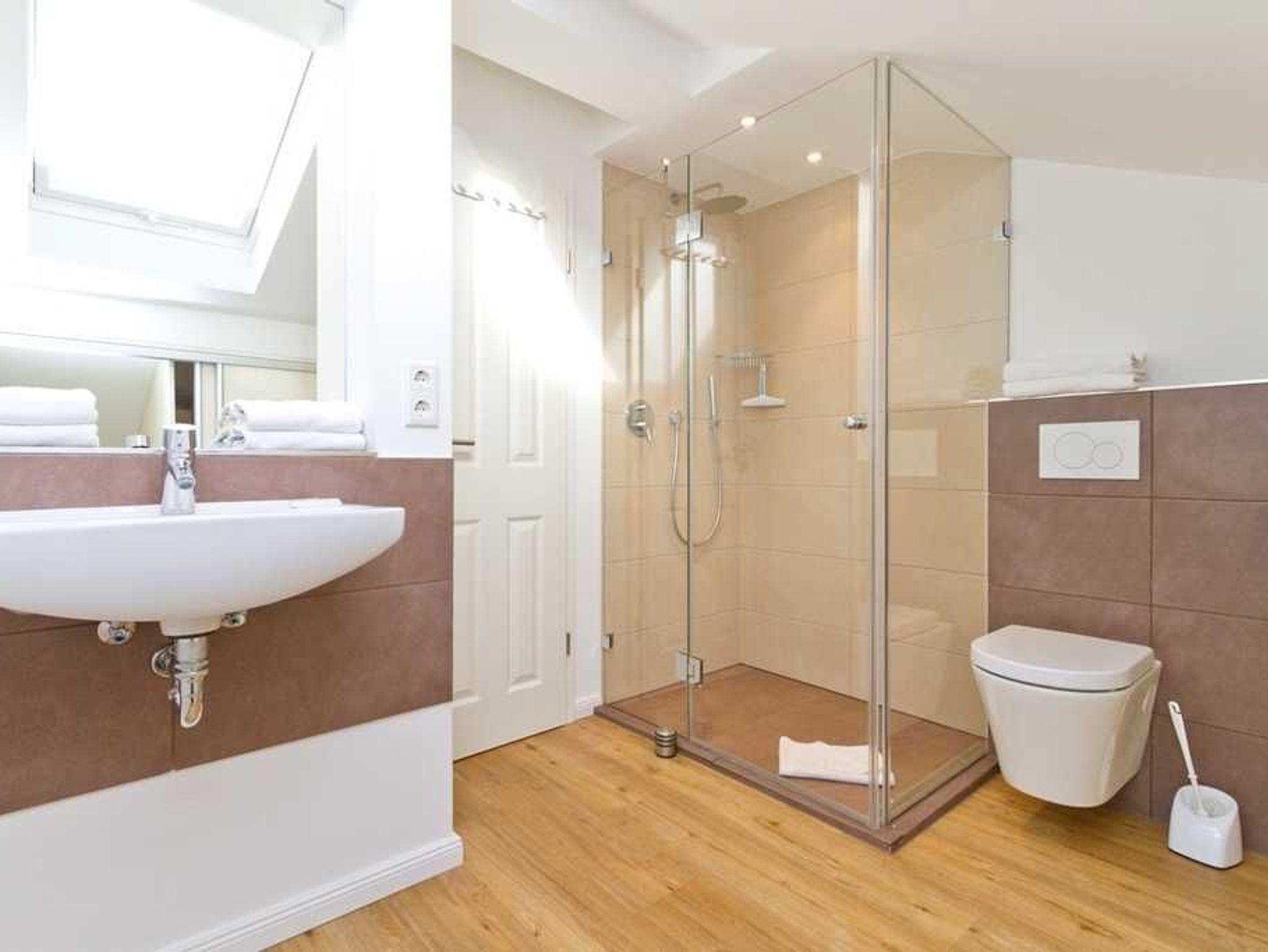 Das Badezimmer mit WC und Walk-in-Dusche trägt ebenfalls zum Urlaubsvergnügen bei.