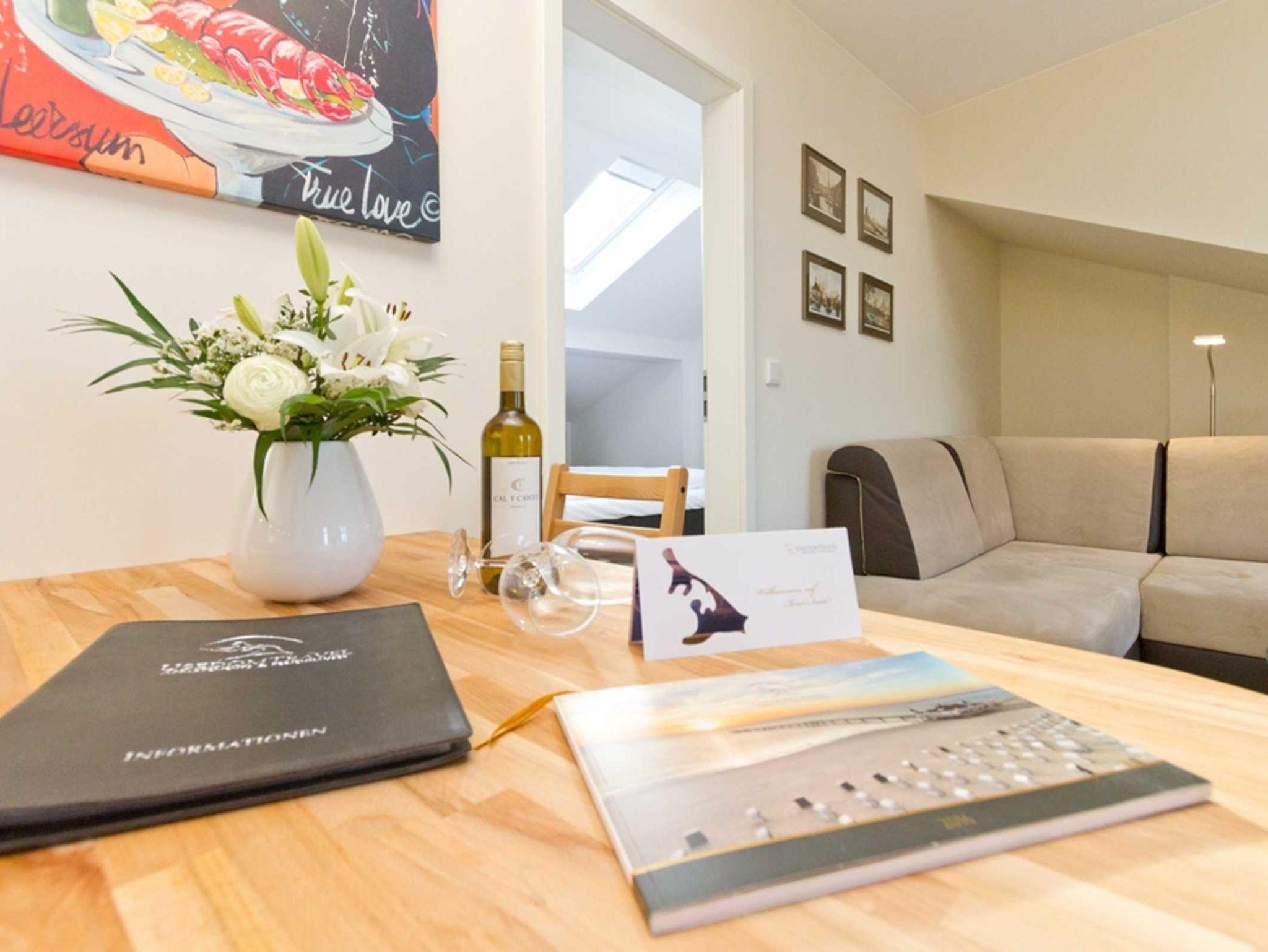 Das helle 2-Raum-Appartement lädt zum Träumen und Urlauben unter dem Dach der Villa Livia ein. Auf 35 Quadratmeter erwartet Sie ein mit Liebe zum Detail eingerichtetes Traumappartement.