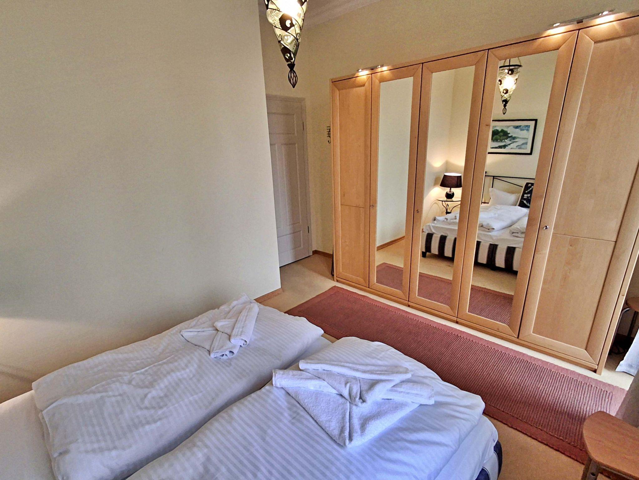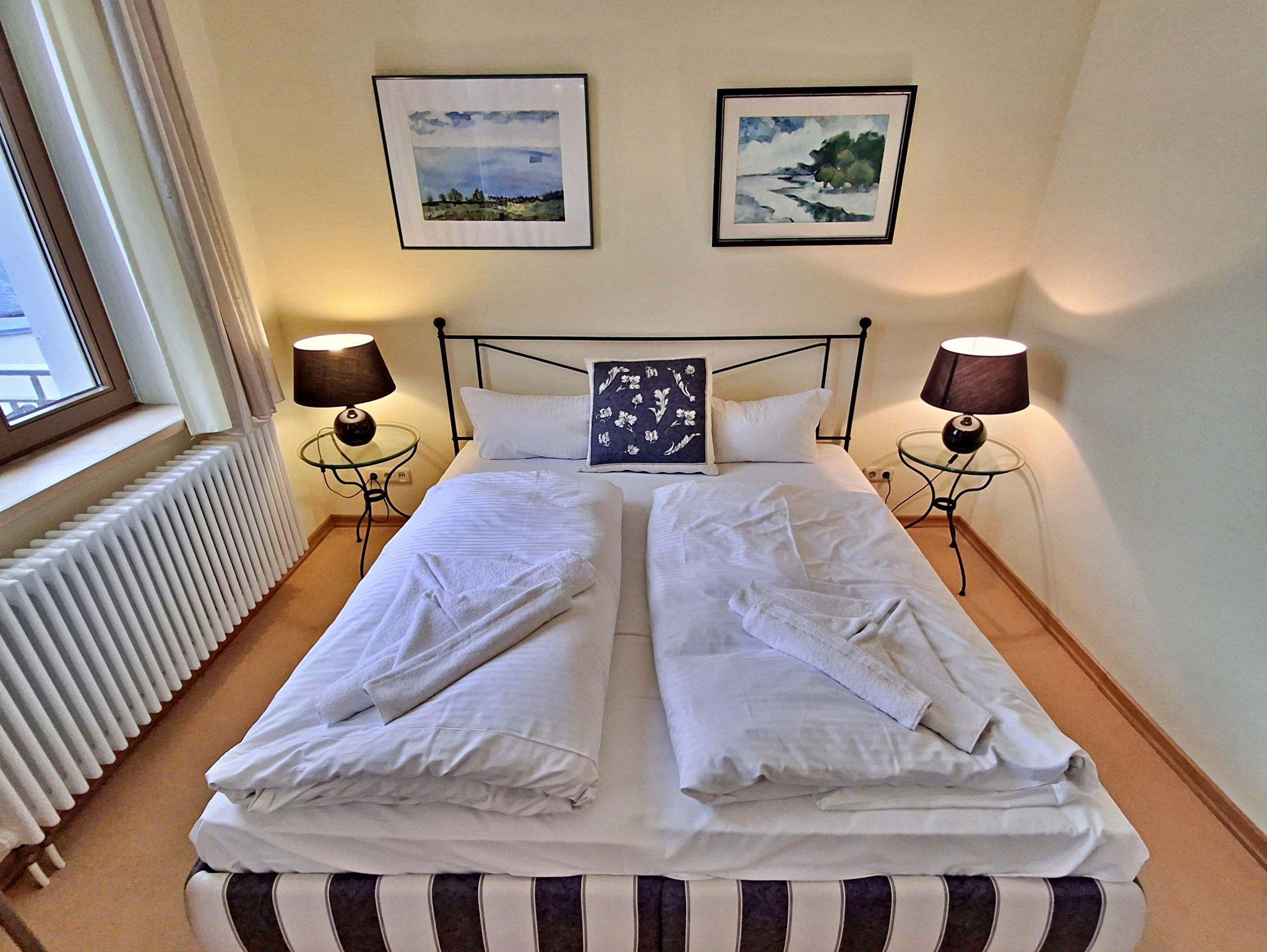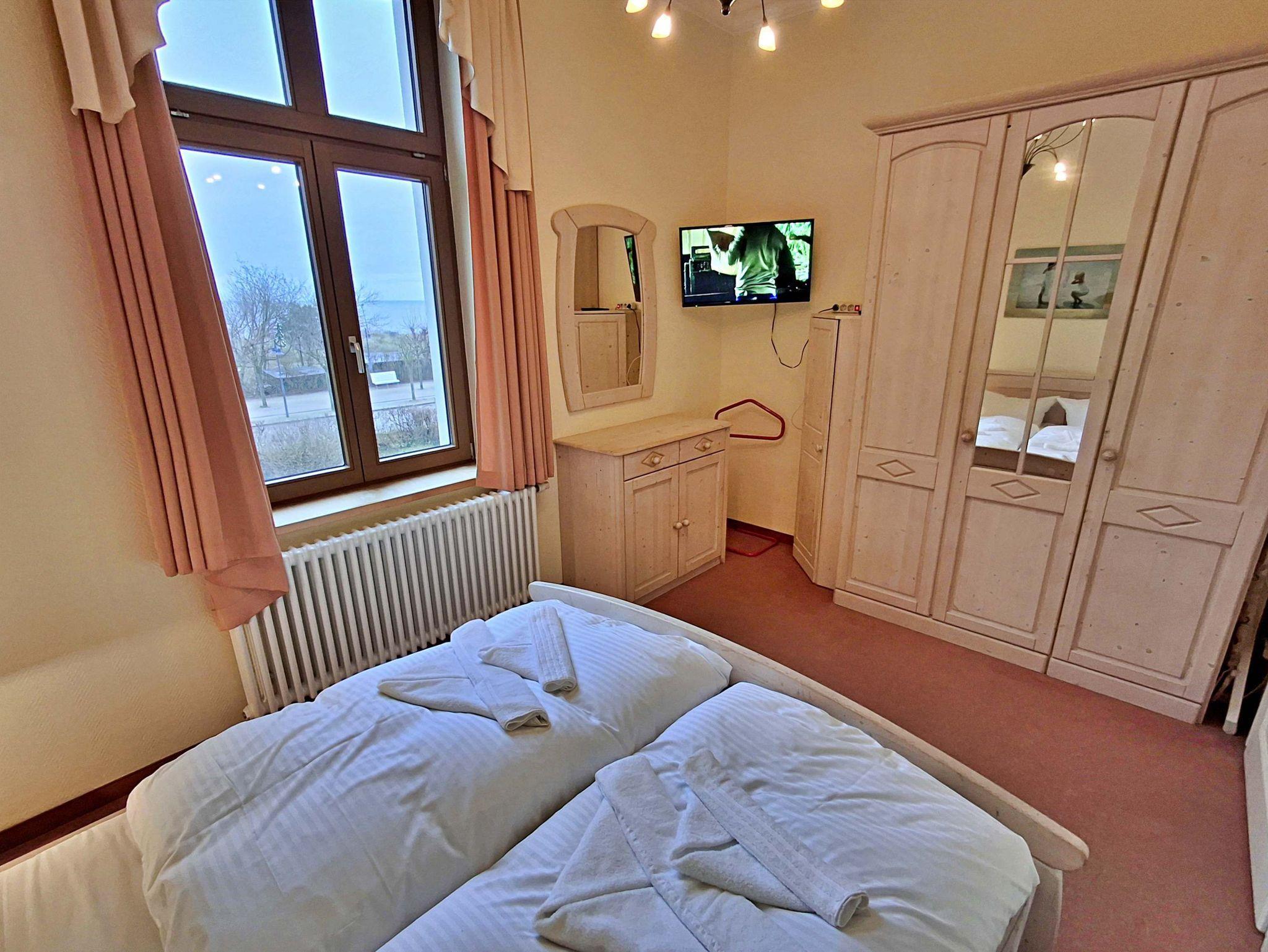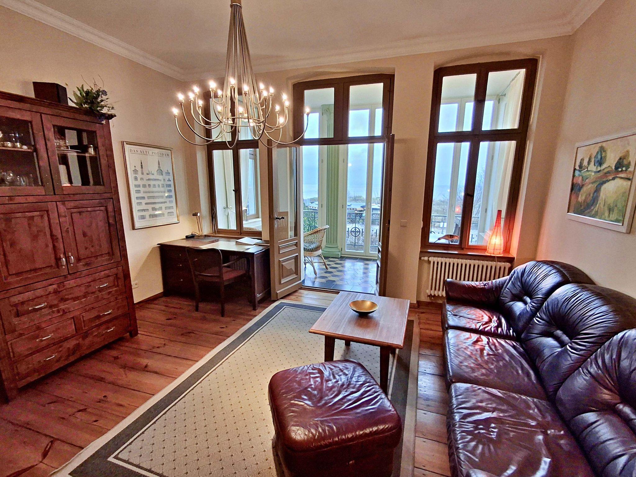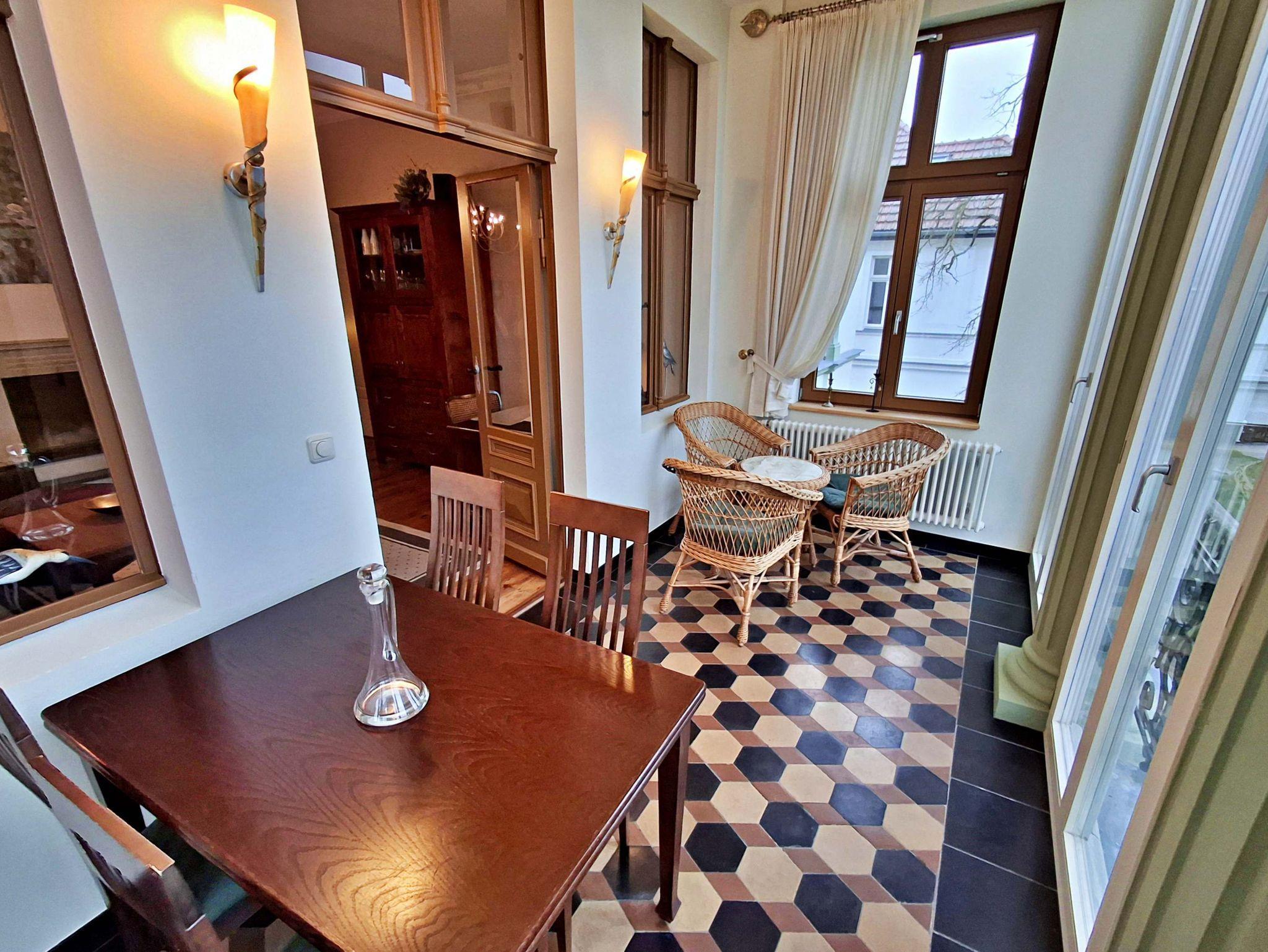 Herzlich willkommen in dieser charmanten Nichtraucher-Wohnung! Mit großzügigen 75 qm im ersten Obergeschoss bietet sie Ihnen ein stilvolles und komfortables Zuhause. Die beeindruckende Deckenhöhe und die denkmalgeschützten Ausstattungsdetails verleihen der Wohnung einen besonderen Charakter. Das helle Wohnzimmer lädt mit seinem Kamin, den eleganten Stuckelementen und dem historischen Dielenboden zum Verweilen ein. Hier finden Sie eine bequeme Sitzgruppe, einen Schreibtisch mit Meerblick, eine kleine Bibliothek sowie einen Flachbild-TV und moderne Audiotechnik, alles stilvoll in einem Schrank integriert. Die Veranda, ausgestattet mit historischen Bodenfliesen und Geländer sowie raumhohen Fenstern, bietet einen atemberaubenden Blick auf das Meer. Genießen Sie entspannte Stunden am Esstisch oder in der kleinen Sitzgruppe. In den beiden Schlafzimmern erwarten Sie gemütliche Doppelbetten, entwerder mit Blick auf das Meer oder einem Südbalkon, sowie ausreichend Stauraum in Kommoden und Kleiderschränken. Die separate, voll ausgestattete Küche lässt keine Wünsche offen und bietet Ihnen alles, was Sie für die Zubereitung Ihrer Lieblingsgerichte benötigen, einschließlich Ceranherd, Backofen, Geschirrspüler und Mikrowelle Das Badezimmer ist mit einer Badewanne und WC ausgestattet. Zusätzlich profitieren Sie von einem Parkplatz am Haus, einer eigenen Abstellkammer auf dem Grundstück sowie einer Waschmaschine und einem Trockner, die den Komfort dieser Wohnung abrunden. WLAN steht Ihnen in der gesamten Wohnung kostenfrei zur Verfügung. Bitte beachten Sie, dass eine Kaution in Höhe von 100 Euro für die Funk-Fernbedienung zum Befahren der Promenade erhoben wird.