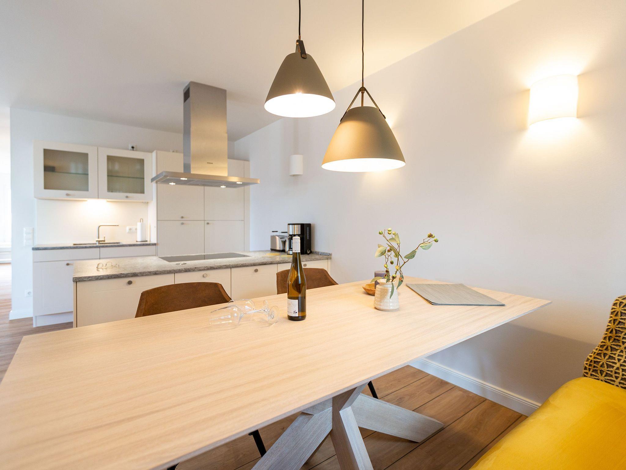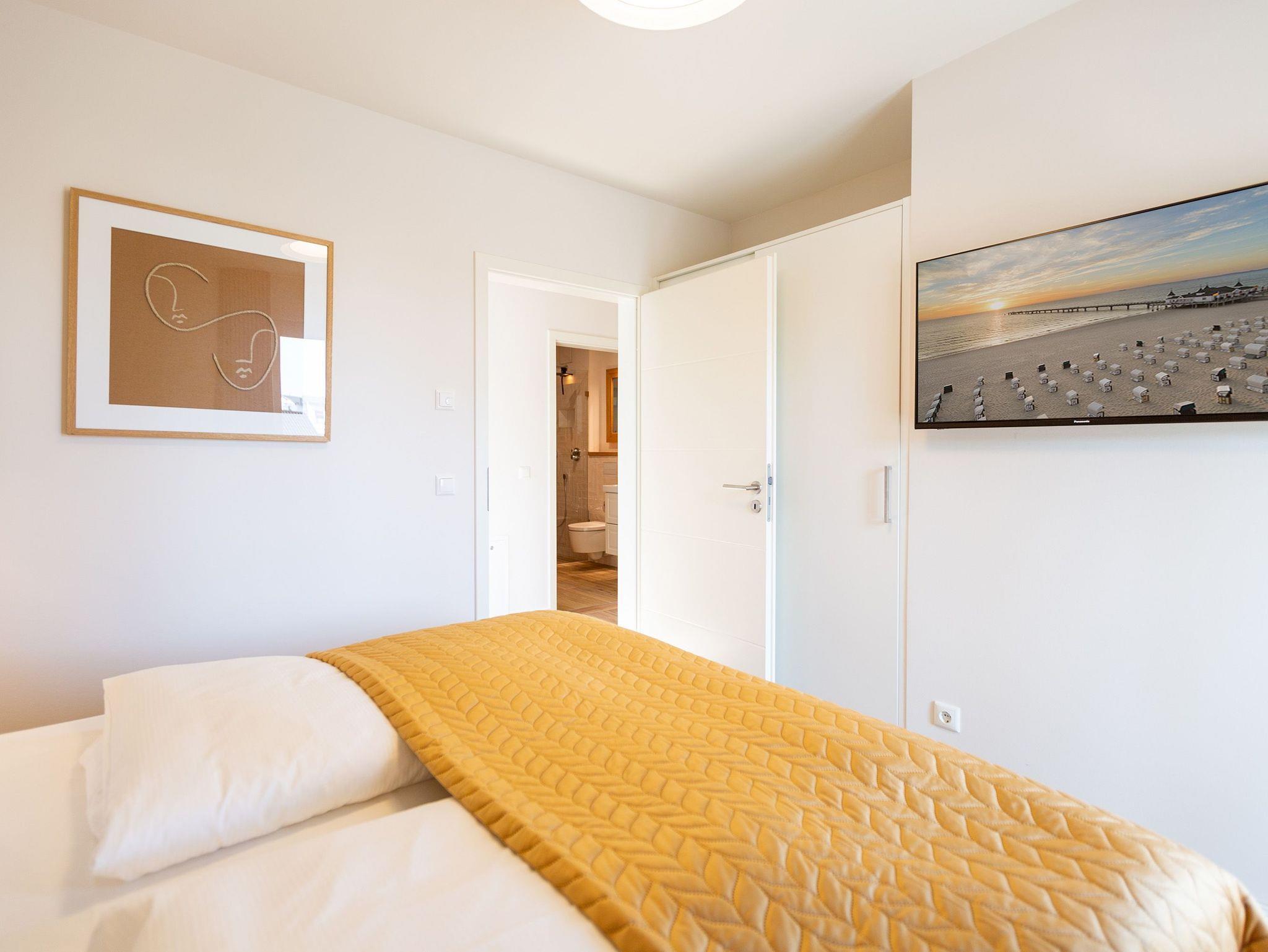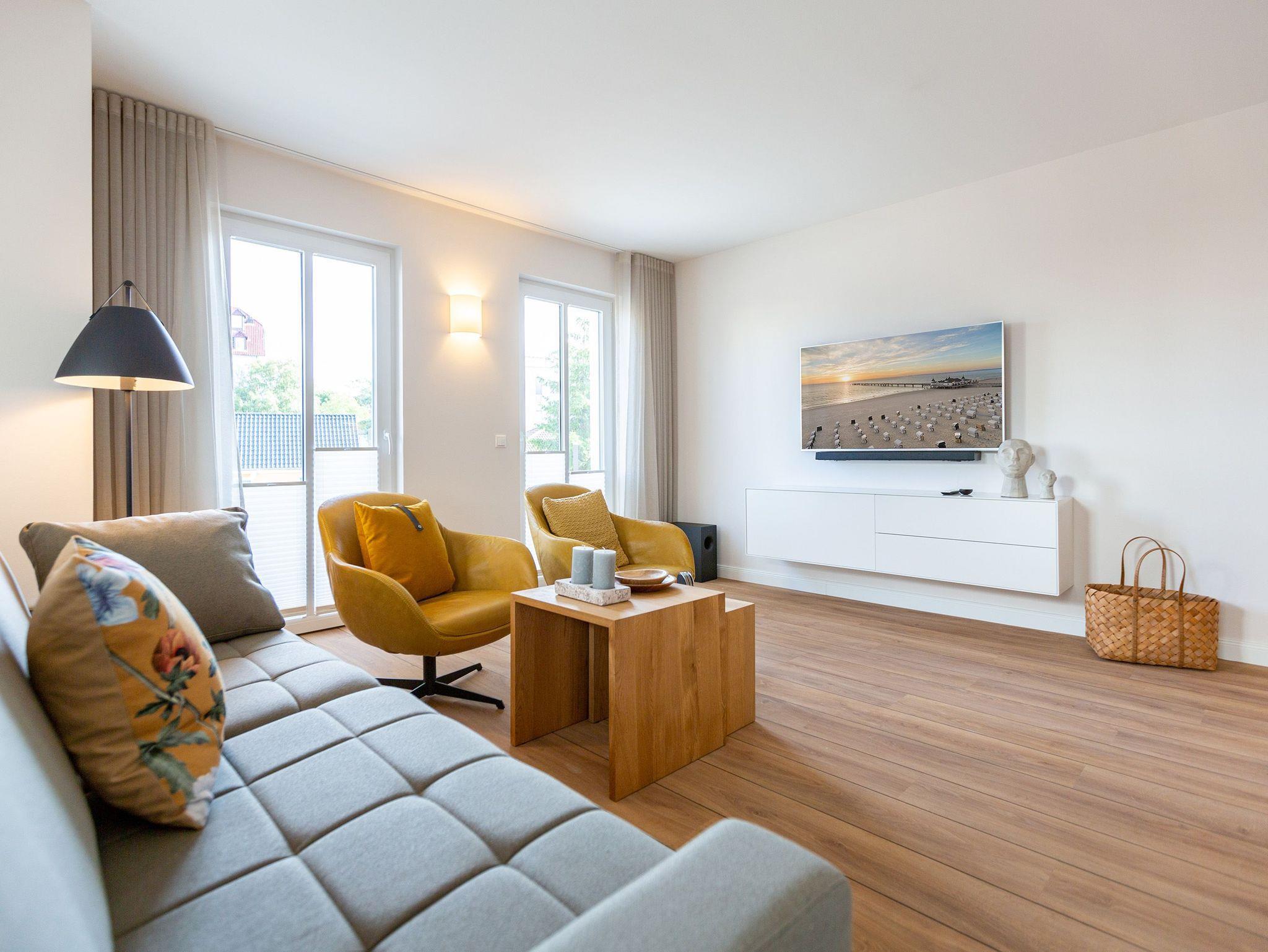 Modernes Design und ein perfekt abgestimmtes Farbkonzept erwarten Sie in diesem Drei-Zimmer-Feriendomizil für bis zu vier Personen im Gartengeschoss. Auf den 84qm begrüßen Sie helle Farbtöne in Kombination mit einem dezenten maritimen Look. Der offen gestaltete Wohn-Ess-Bereich besticht durch seine gemütliche Atmosphäre und seine Großzügigkeit. In der voll ausgestatteten Küche mit hochwertigen Siemens-Geräten ist für jeden Komfort beim Zubereiten Ihrer Speisen gesorgt. Eine Granit-Arbeitsplatte sorgt zudem für einfaches Sauberhalten und einen edlen Look. Genießen Sie gemeinsame Fernsehabende vor dem Flat-TV mit Soundsystem und hören Sie dem Knistern des dreiseitigen Gaskamins zu, der vom Wohn- und Essbereich aus für eine wohlige Stimmung sorgt. Den perfekten Start in den Tag können Sie sich auf der 25qm großen Nord-Terrasse gönnen, während Sie den ersten Morgenkaffee genießen. In komfortablen Boxspringbetten (1,80m x 2,00m) lässt es sich am besten von Ihren Urlaubserlebnissen träumen. Und bei richtiger Windrichtung und Wellengang können Sie sich sogar das Meeresrauschen über die Terrassentüren in Ihr Appartement holen. Zwei barrierefreie Regenduschen, beheizte Spiegel und eine Saunalandschaft im Masterbad sorgen für ein erholsames Spa-Erlebnis. Kostenfreies W-Lan und ein Stellplatz in der hauseigenen Tiefgarage runden Ihren perfekten Urlaub auf der Insel Usedom ab.