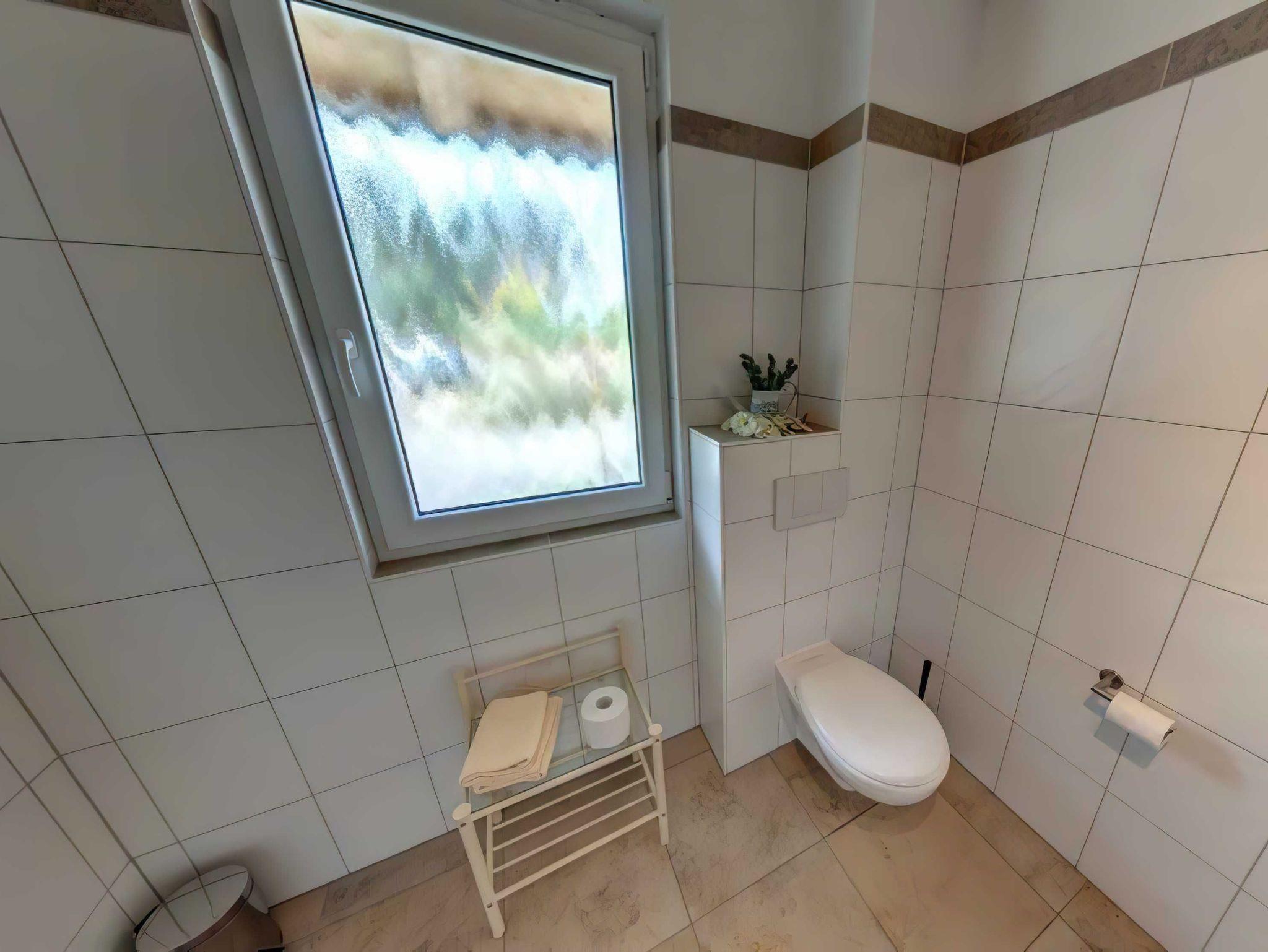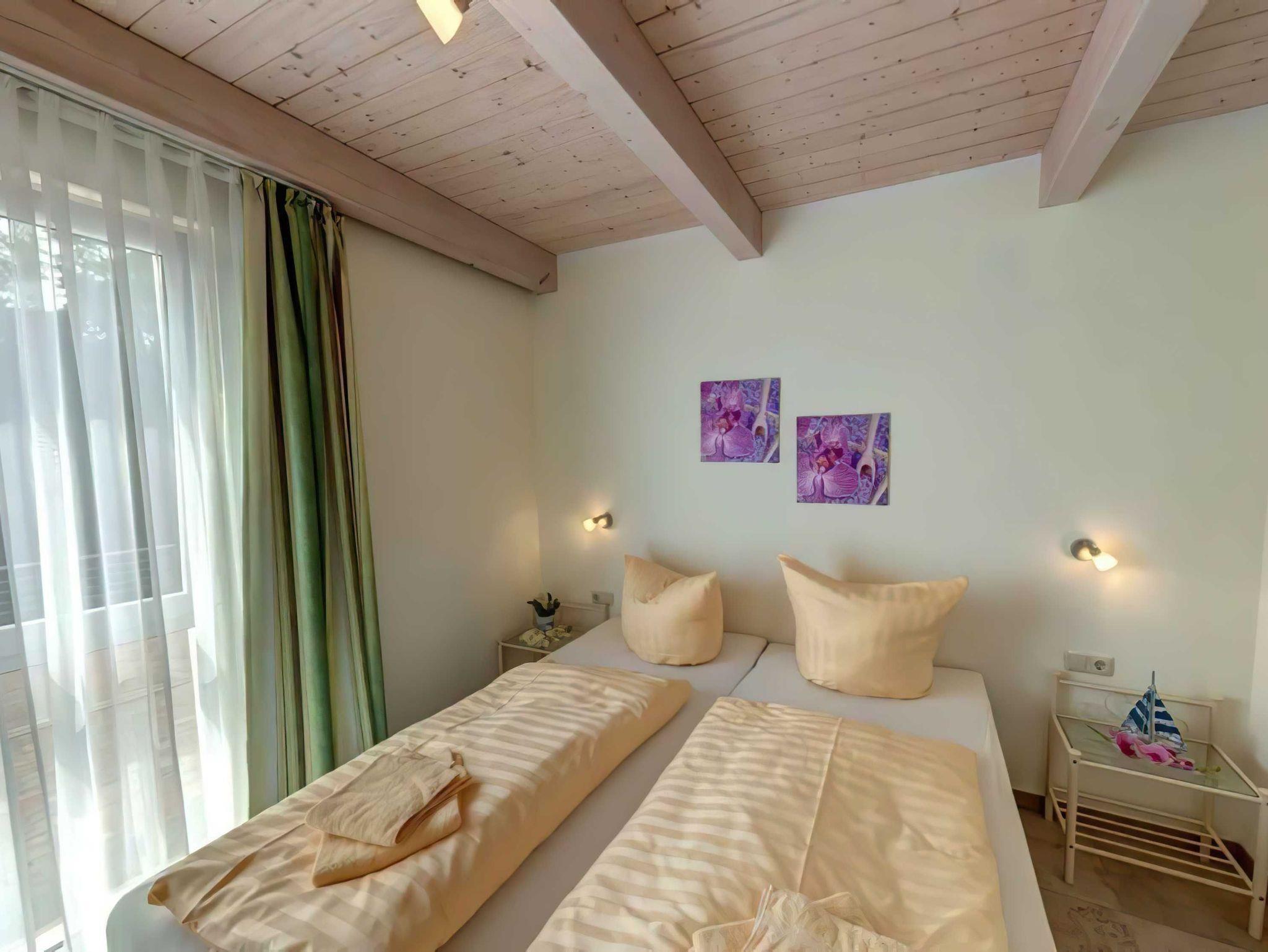 Zur Ausstattung der Ferienwohnung gehören ein Schlafzimmer mit Doppelbett und zwei Schlafzimmer mit 2 Einzelbetten. Zur weiteren Ausstattung gehören ein Wohnzimmer mit integrierter vollausgestatteter Küche (Geschirrspüler, Ceranherd mit Backofen, Mikrowelle, Kaffeemaschine) einem Bad mit Wanne/Dusche/WC und einer großen Terrasse mit Sitzmöglichkeiten. Im Preis enthalten sind Bettwäsche, Handtücher, ein Parkplatz und die Endreinigung. Waschmaschine/Trockner, Garagen und Abschließbare Unterstellmöglichkeiten für Fahrräder können gegen Gebühr zur Verfügung gestellt werden.