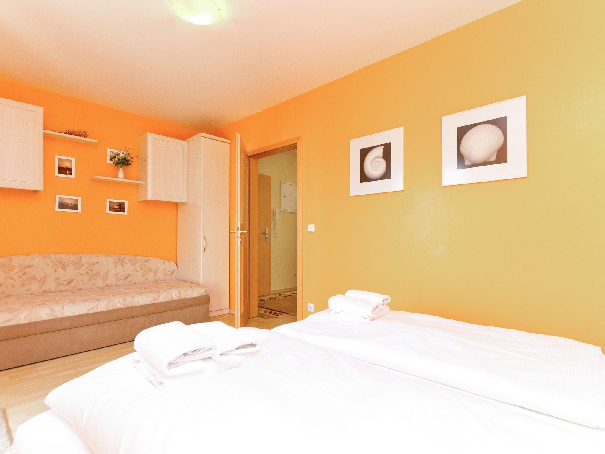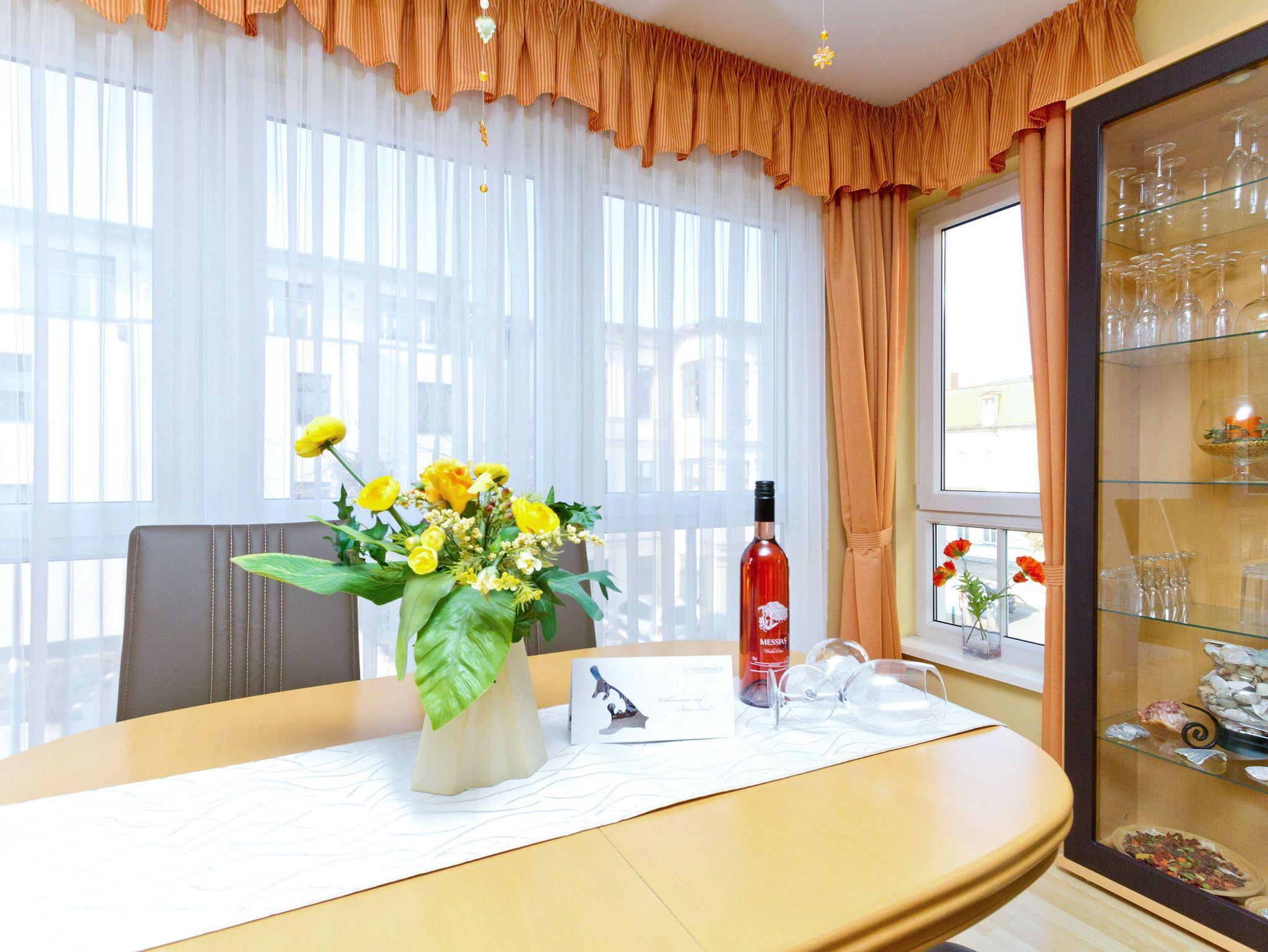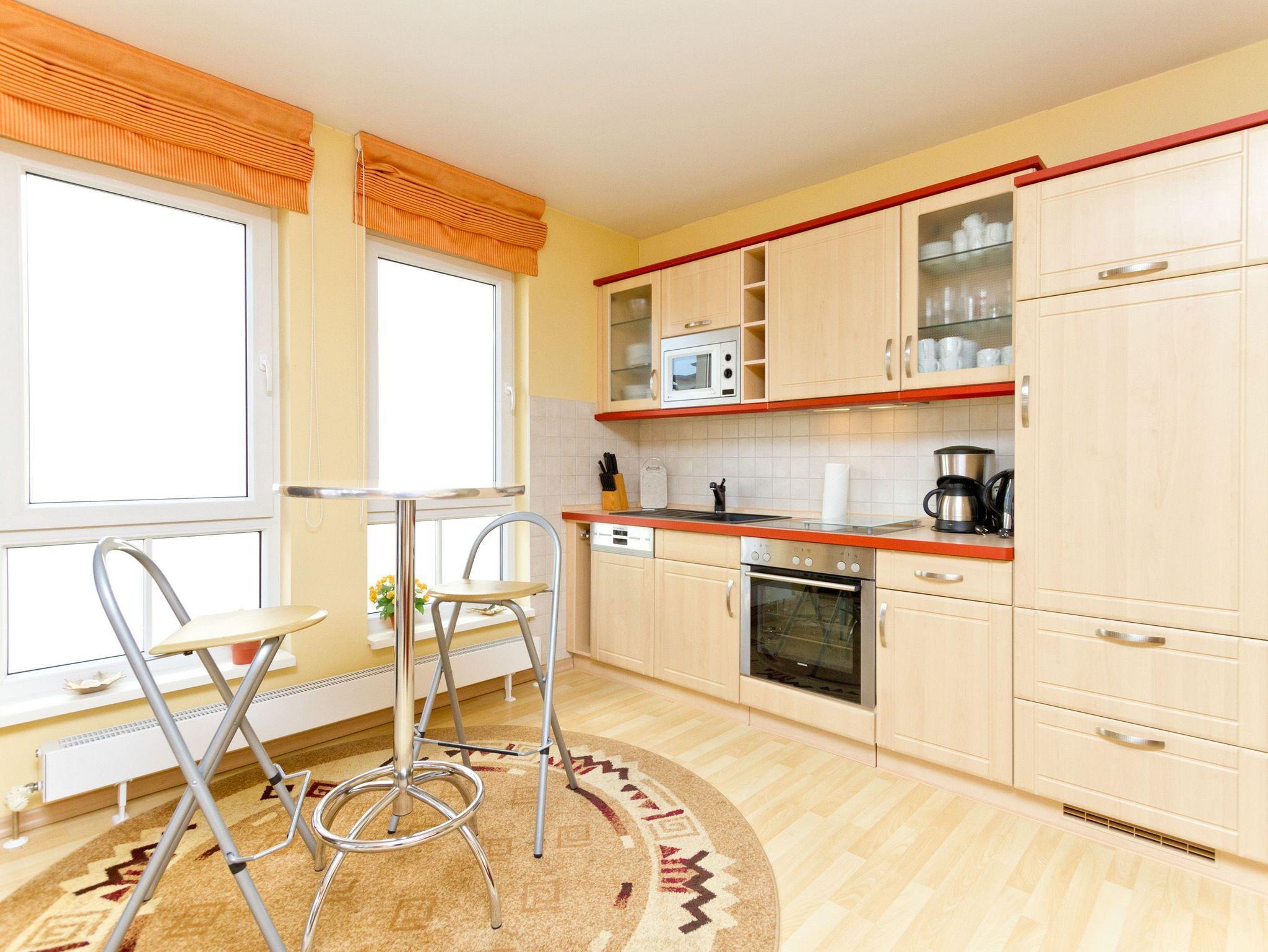 Die Ferienwohnung 11 in der Residenz Bismarck empfängt Sie in der 1. Etage des Hauses. Für Ihren Komfort ist es komplett ausgestattet und verfügt über einen großzügigen Wohnbereich mit Flat-TV, eine integrierte Küchenzeile und einen separaten Essplatz. Der Kamin im Wohnbereich ergänzt den Komfort dieser Ferienwohnung und lädt nicht nur in den kalten Jahreszeiten zum Entspannen ein. Durch die große Fensterfront im Wohnzimmer können Sie seitlich die Ostsee sehen. Das Schlafzimmer bietet Platz für drei Personen und verfügt über ein Doppelbett und ein Einzelbett für ein Kind bis 12 Jahre. Zusätzlich gelangen Sie von hier auf einen Balkon, der nach Osten ausgerichtet ist. Einen weitere Schlafmöglichkeit bietet die Couch mit Schlaffunktion im Wohnzimmer. Für Ihren Komfort ist die Erstausstattung Bettwäsche bereits bezogen und Handtücher liegen bereit.