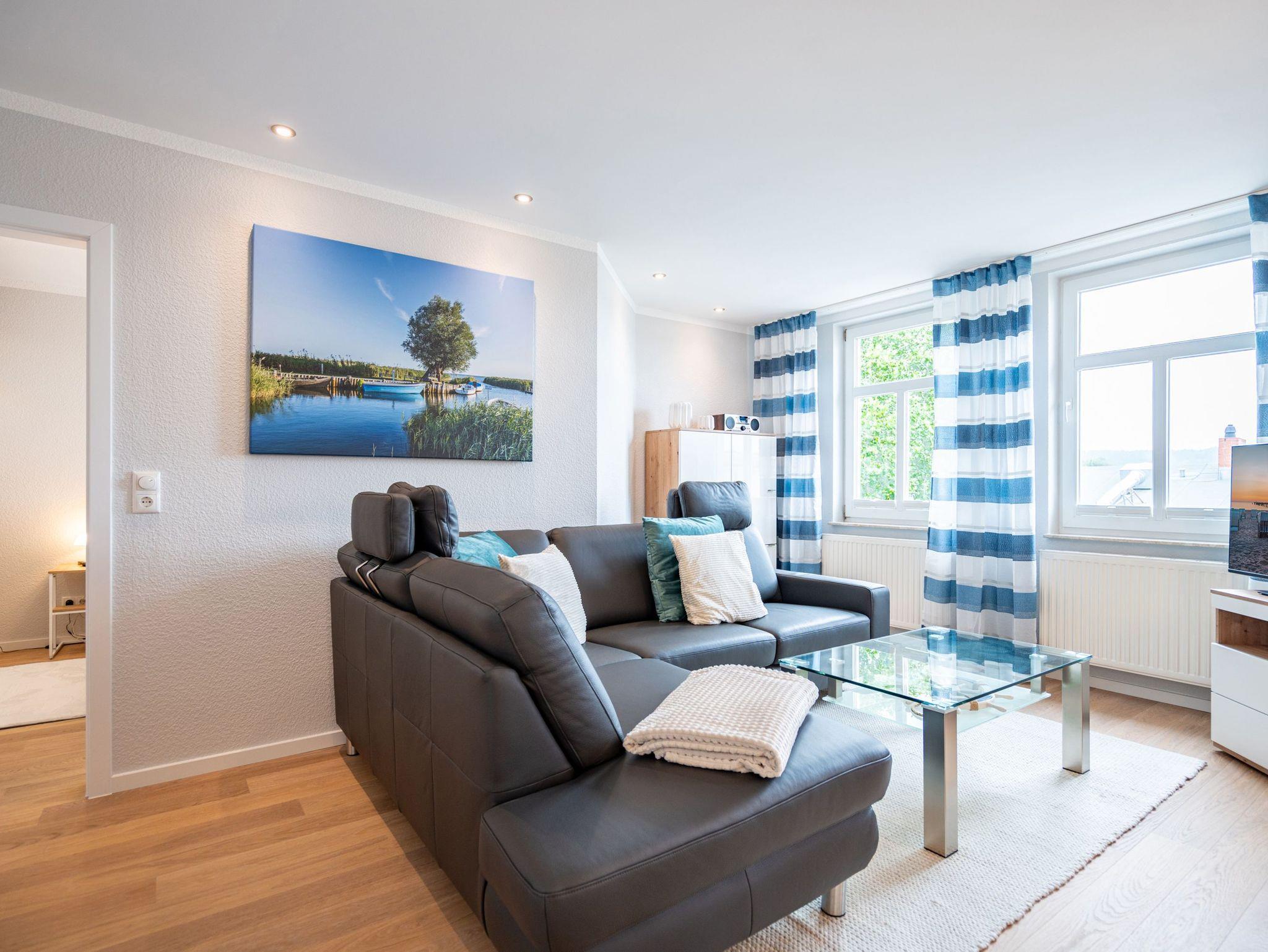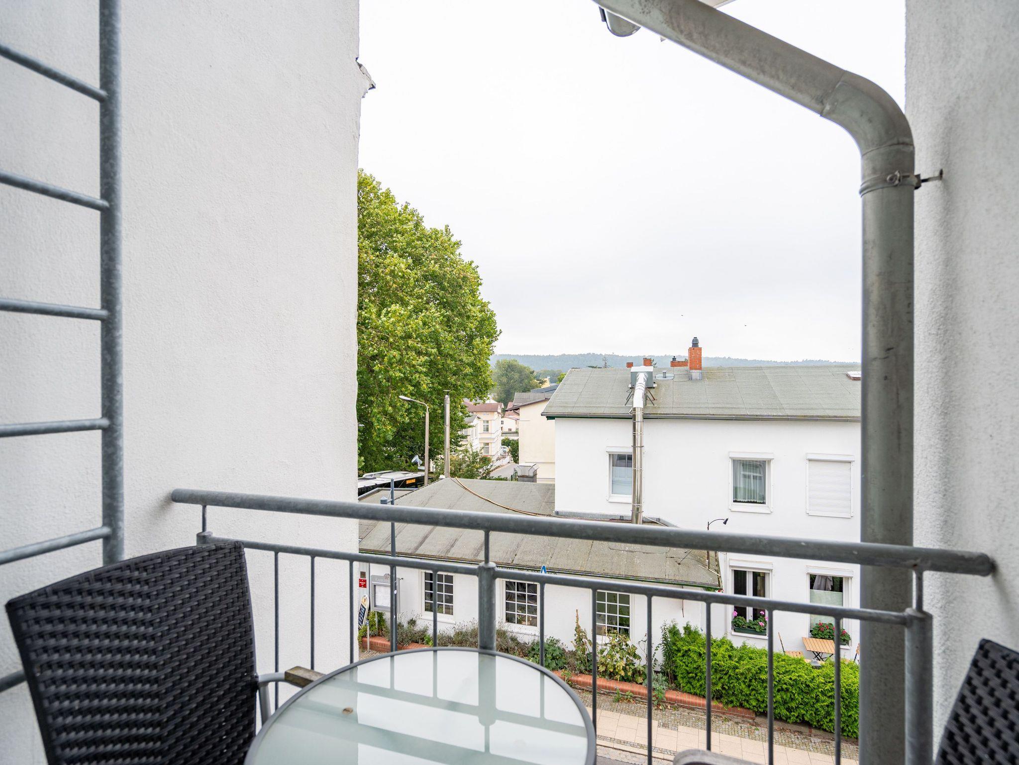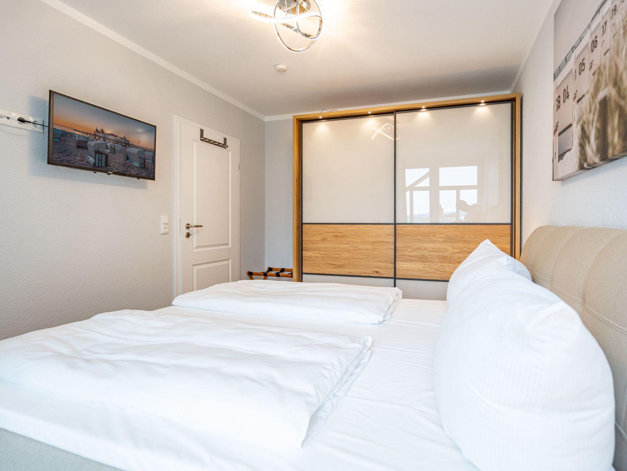 Willkommen in der komfortablen Zwei-Raum-Ferienwohnung (50qm) in der 2. Etage des Haus am Kurpark für 2 Personen. Der helle, offene Wohnbereich ist mit einer voll ausgestatteten Küche versehen, die unter anderem einen Backofen, eine Mikrowelle sowie einen Geschirrspüler umfasst. Ein gemütlicher Essplatz und eine bequeme Sitzgruppe mit Flat-TV laden zum Entspannen ein. Im separaten Schlafzimmer erwartet Sie ein hochwertiges Boxspringdoppelbett (1,80m x 2,00m), ein geräumiger Kleiderschrank sowie ein zusätzlicher Flat-TV. Das innenliegende Badezimmer verfügt über eine Badewanne, einen Waschtisch und ein WC. Der sonnige Süd-West-Balkon bietet mit Tisch und zwei Stühlen einen perfekten Ort, um die frische Luft zu genießen. Während Ihres Aufenthalts steht Ihnen kostenfreies WLAN zur Verfügung. Zudem können Sie den Gemeinschafts-Saunabereich mit Ruheraum im Obergeschoss des Hauses nutzen. Ein fester Stellplatz in der Tiefgarage ist ebenfalls für Sie reserviert.