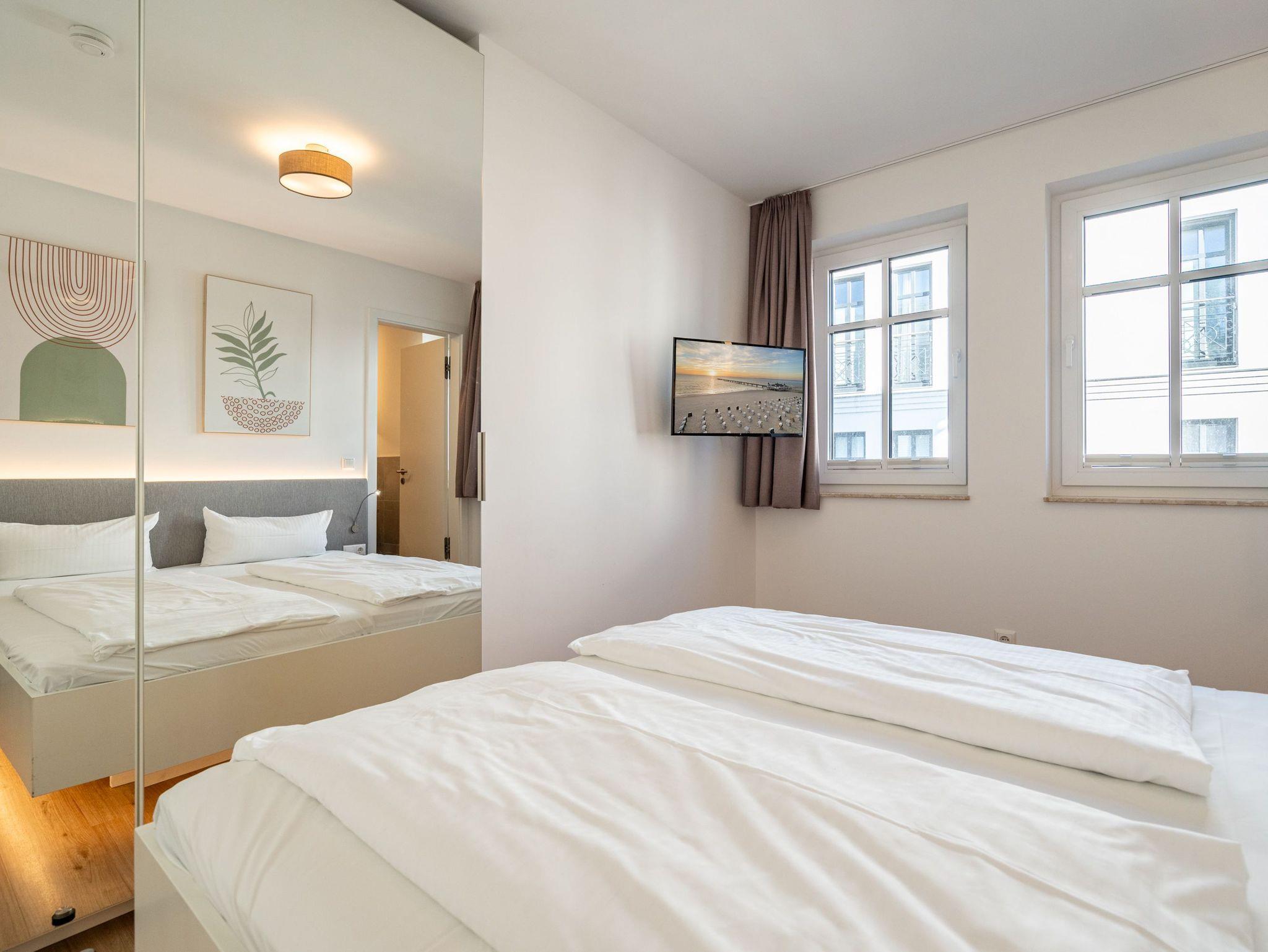 Ankommen, durchatmen, abschalten ? in dieser hochwertigen Ferienwohnung fällt das leicht. Nur wenige Schritte trennen Sie vom feinen Ostseesand und dem weiten Strand der Kaiserbäder. Die Wohnung Nr. 05 befindet sich im ersten Obergeschoss und ist bequem per Aufzug erreichbar. Auf rund 75 Quadratmetern bietet sie bis zu vier Erwachsenen und einem Kleinkind viel Platz, um den Urlaub entspannt zu genießen. Der offene Wohn- und Essbereich ist hell, modern und durchdacht eingerichtet. Die voll ausgestattete Küche mit Backofen, Geschirrspüler, Ceranfeld und Mikrowelle lässt keine Wünsche offen. Am Esstisch finden vier Personen bequem Platz. Im Wohnbereich laden eine bequeme Couch und ein großer Flachbild-TV zu gemütlichen Stunden ein. In der kalten Jahreszeit sorgen Kamin und Sauna für wohlige Wärme. Vom Wohnzimmer aus gelangen Sie auf den Balkon mit südöstlicher Ausrichtung ? hier können Sie die Sonne genießen und über den Dünenaufgang hinweg bis zur Ostsee blicken. Beide Schlafzimmer sind mit hochwertigen Doppelbetten (1,80 x 2,00 m), Einbaukleiderschrank und eigenem TV ausgestattet. Eines der Bäder schließt direkt an ein Schlafzimmer an und verfügt über eine bodentiefe Dusche und ein Fenster. Das zweite, größere innenliegende Bad bietet ebenfalls eine ebenerdige Dusche sowie eine eigene Sauna ? ideal zum Entspannen nach einem Tag am Strand. Für Familien ist alles vorbereitet: ein Babyreisebett und ein Kinderhochstuhl können bei Bedarf dazu gebucht werden. Ihr Auto parken Sie bequem auf dem reservierten Stellplatz Nr. 5 in der Tiefgarage. WLAN ist selbstverständlich kostenfrei verfügbar. Fahrräder können im abschließbaren Fahrradraum untergebracht werden. Hier erwartet Sie eine Wohnung, die Komfort, Lage und Atmosphäre perfekt verbindet ? ideal für erholsame Tage an der Ostsee.