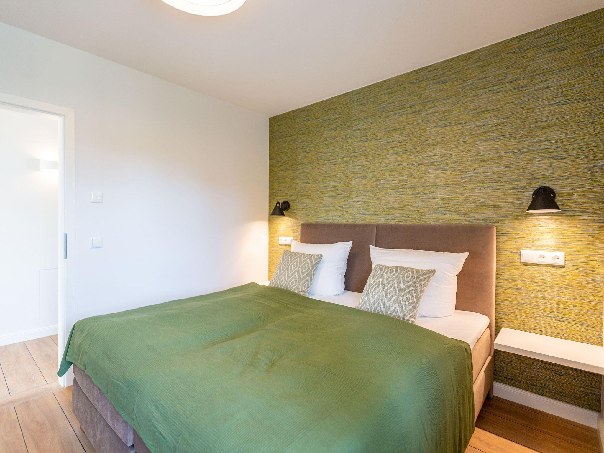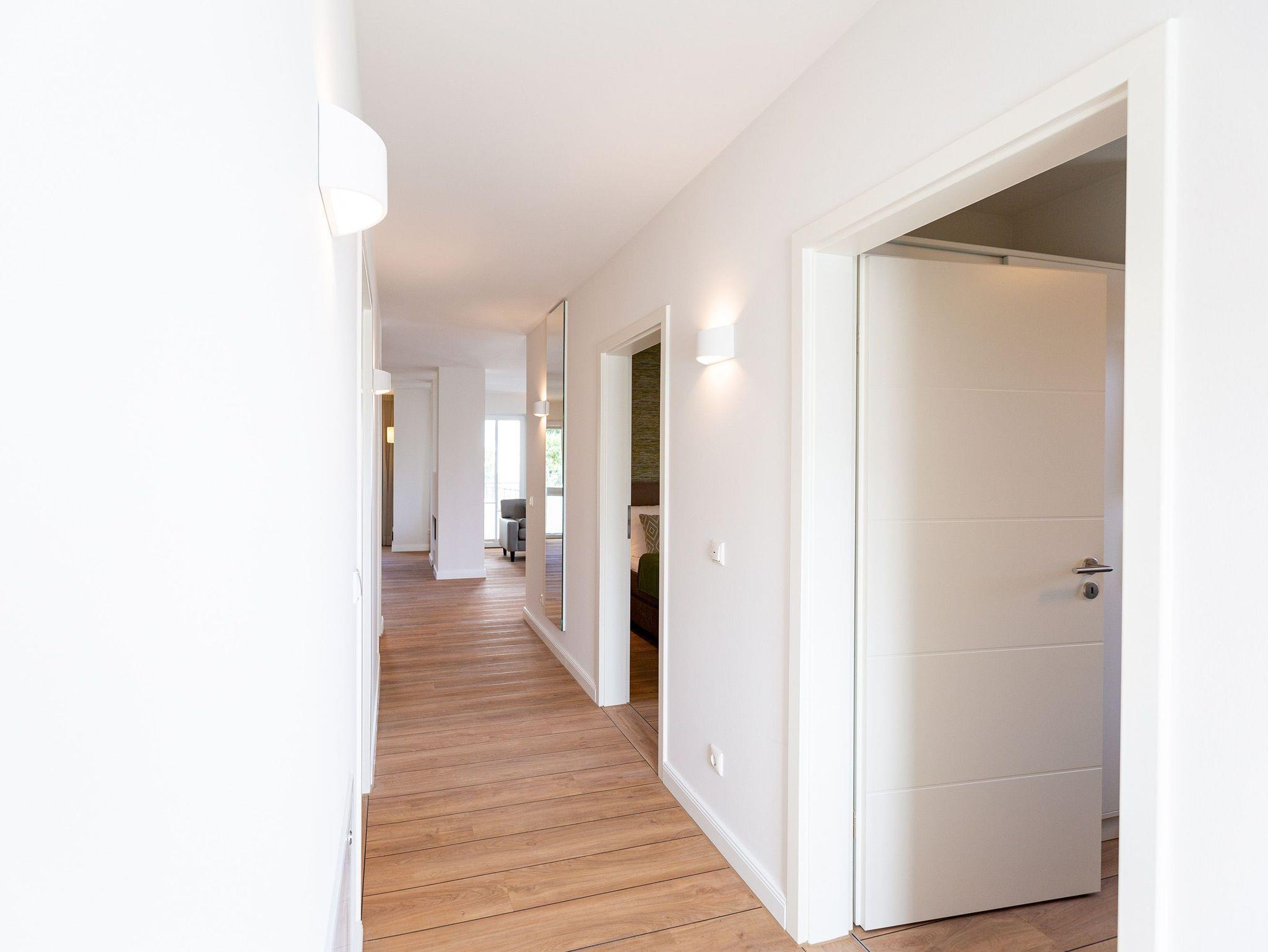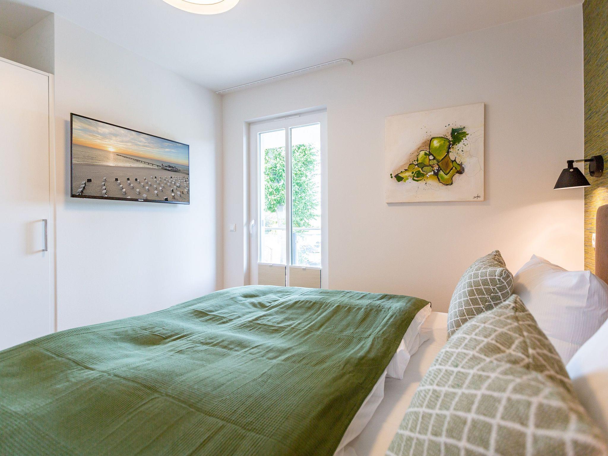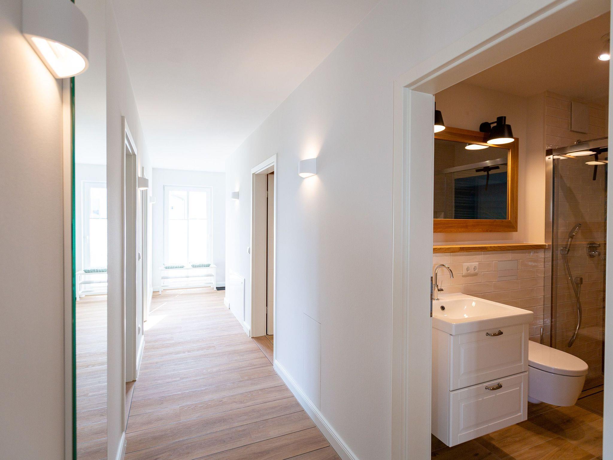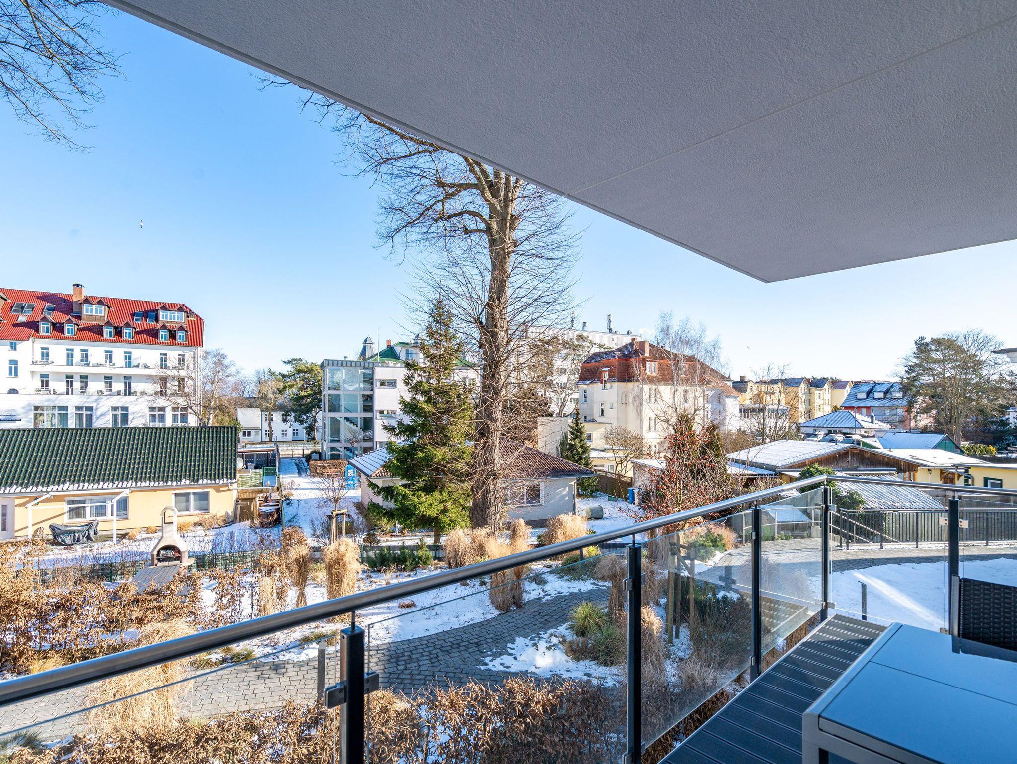Helle Räume, modernes Interieur und harmonisch abgestimmte Farben und Formen laden Sie in diesem 3-Zimmer-Appartement mit 85 qm ein, Ihren Traumurlaub zu verbringen. Das Haus ist in einen Hang gebaut, sodass sich die Wohnung 3 im Erdgeschoss gelegen, zu einer Seite wie in der 1. Etage anfühlt. Die Wohnung ist vom Flur aus auch nur über eine Etage im Treppenhaus oder mit dem Aufzug erreichbar. Ob zu zweit oder zu viert - genießen Sie neben der Nähe zum feinen Ostseestrand die zentrale und doch ruhige Lage dieses Appartements. Ob nach einem Bummel auf der Promenade oder einem ausgiebigen Strandspaziergang, lassen Sie den Abend auf dem Sofa oder den stylischen Ledersesseln ausklingen oder genießen Sie noch eine Brise Meeresluft vom West-Balkon Ihres Wohnzimmers aus. Neben einem Flat-TV mit Soundsystem ist der Wohnbereich mit einem Gaskamin ausgestattet, der auch vom offenen Essbereich aus für entsprechende Gemütlichkeit sorgt. Die offen gestaltete Küche lässt dem Hobby- oder Profikoch keine Wünsche offen. Hochwertige Geräte und Materialien sowie eine Kochinsel sorgen für angenehmen Komfort bei der Zubereitung Ihrer Speisen. Gönnen Sie Ihrem Körper anschließend in einem der beiden Schlafzimmer mit komfortablen Doppelbetten (1,80m x 2,00m) und Flat-TV eine Auszeit. Die angrenzenden Balkone (1x Nord-Ost , 1x nach Westen ausgerichtet) laden zum Verweilen am Morgen ein. Für ausreichend Stauraum und die Sicherheit Ihrer Wertgegenständige sorgt der dezente Einbauschrank inklusive Tresor. Freuen Sie sich besonders auf eines der beiden Badezimmer, das neben Regendusche und einer Finnischen Sauna zum rundum Wohlfühlprogramm beiträgt. Eine barrierefreie Dusche, Waschtisch und WC gehören selbstverständlich ebenso zum Komfort Ihres Urlaubes. Kostenfreies W-Lan und ein Stellplatz in der hauseigenen Tiefgarage runden Ihren perfekten Urlaub auf der Insel Usedom ab.