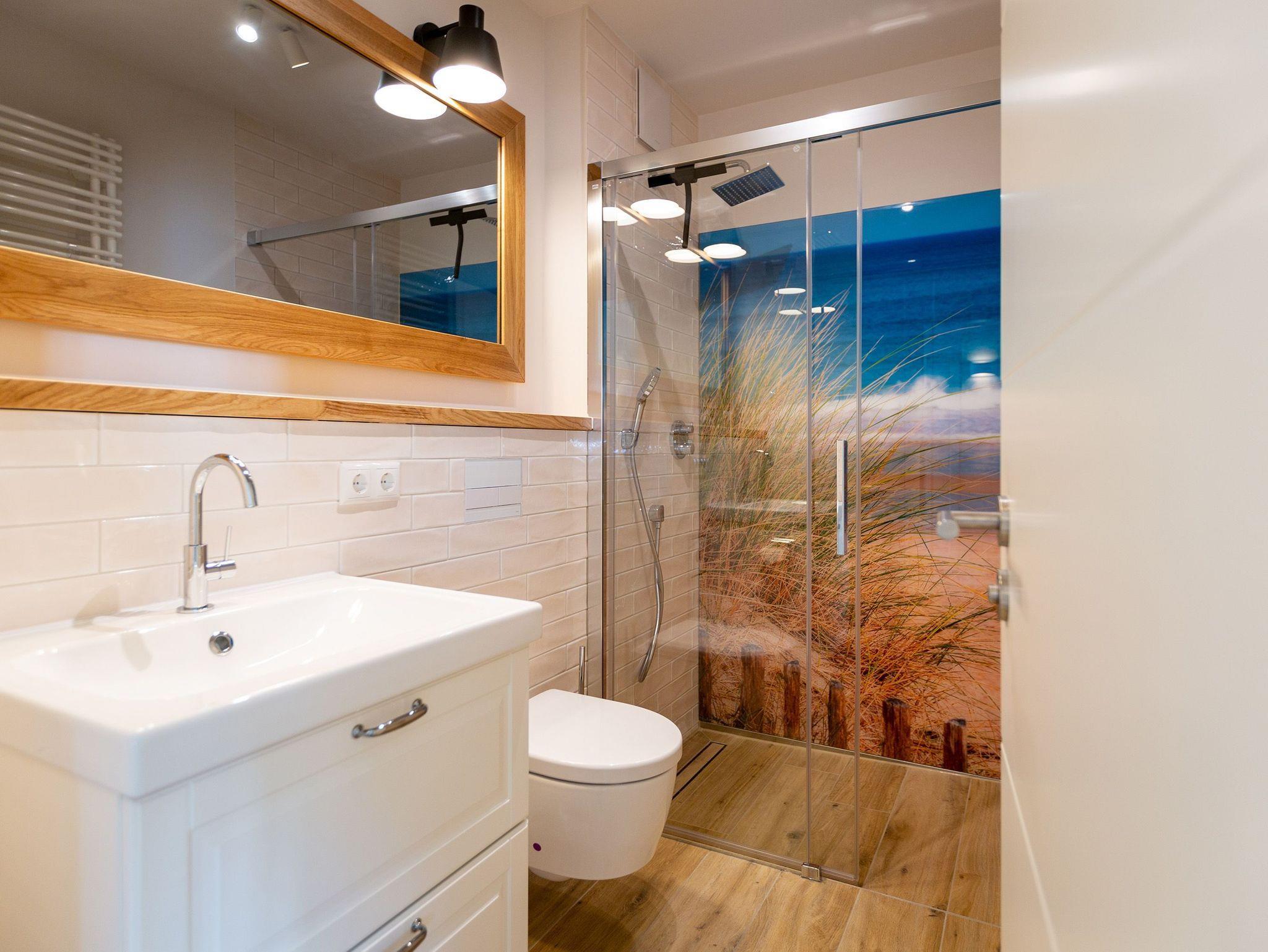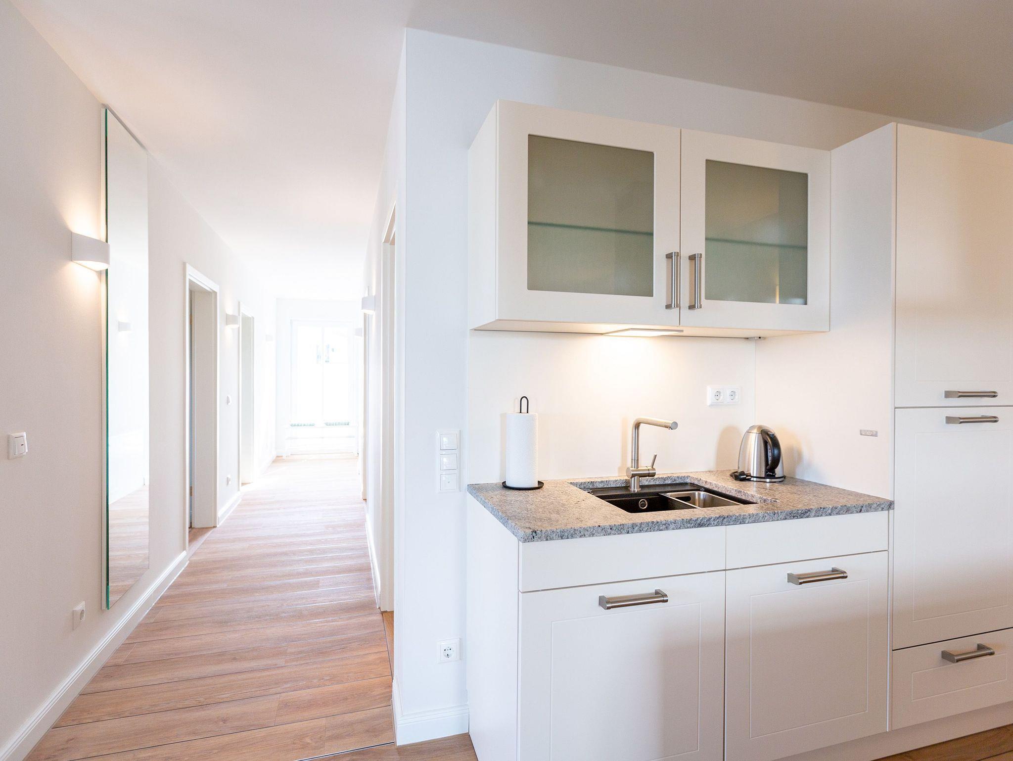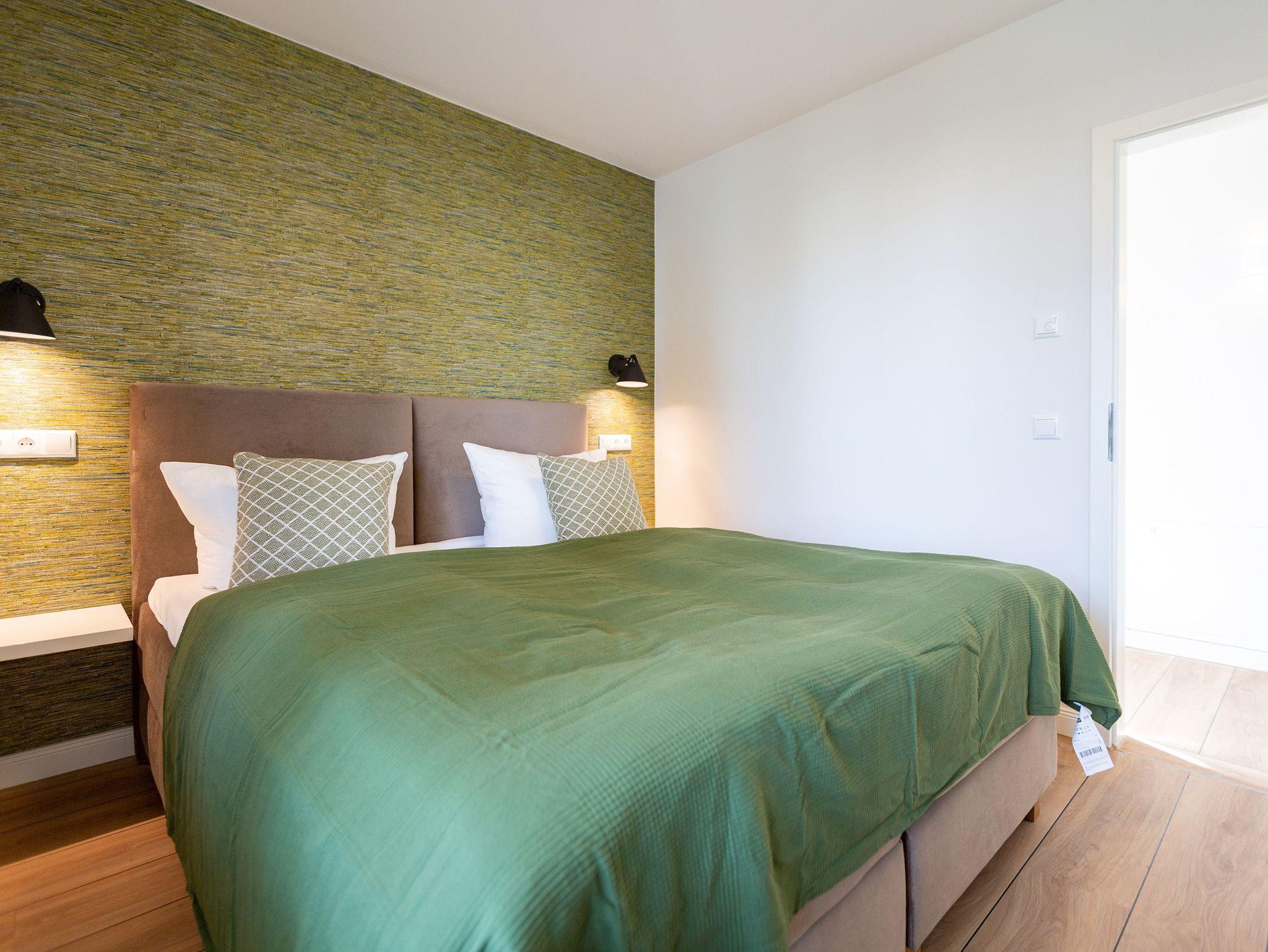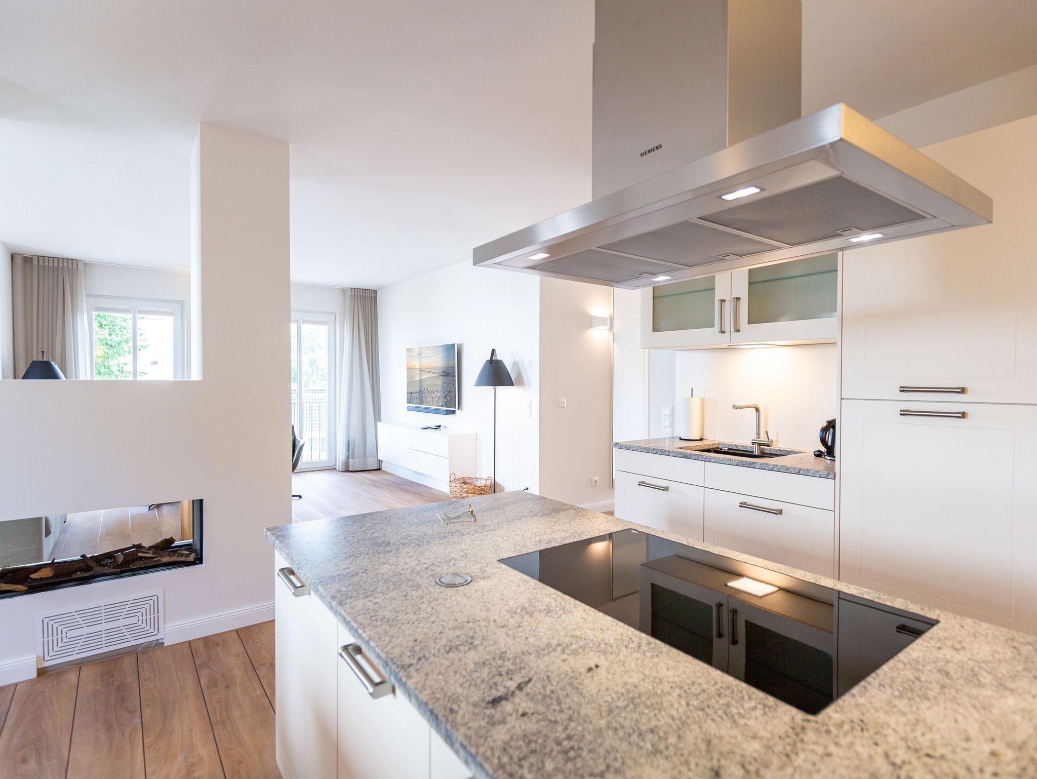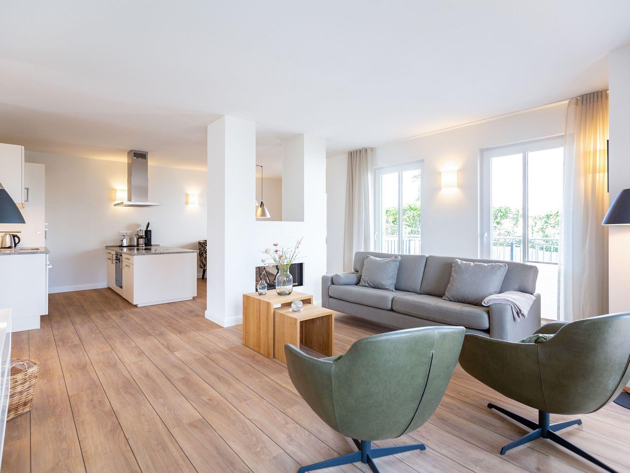 In diesen 2021 errichteten Häusern trifft Helligkeit auf Moderne und bietet Ihnen in seinen stilvoll eingerichteten Zwei- bis Drei-Zimmer Appartements Komfort auf höchster Ebene. Die offen gestalteten Wohn-Ess-Bereiche überzeugen durch ein stylisches Ambiente und ihr großzügiges Raumkonzept. Die teilweise mit Kochinseln ausgestatteten Küchen integrieren sich perfekt in den ebenso schlichten wie modernen Wohnraum. Alle Appartements verfügen über zwei Bäder oder ein Bad und ein zusätzliches Gäste-WC. Um Ihre Auszeit am Meer zusätzlich zu verschönern, wurden alle Appartements mit Gaskamin und Finnischer Sauna ausgestattet. Genießen Sie von den großzügigen Balkonen und Terrassen den Ausblick auf die parkähnliche Grünanlage oder verbringen Sie Ihren Abend auf dem frei zur Verfügung stehenden Grillplatz mit Sitzecke und Grill. Ein kostenloser PKW-Stellplatz in der Tiefgarage (Einfahrtshöhe 1,95m, Anfahrt über die Straße ?Kieferngrund? Höhe Hausnummer 17) gehört ebenso zum Komfort dieser Appartement-Häuser wie kostenfreies W-Lan. Für E-Autos steht am Objekt eine E-Ladesäule mit 2 Ladeplätzen (gesamt 22 kW) auf dem Grundstück kostenpflichtig zur Verfügung. Eine Waschmaschine und ein Trockner können Sie gegen Gebühr über die kostenlose App (Android [&] Apple) WeWash nutzen.