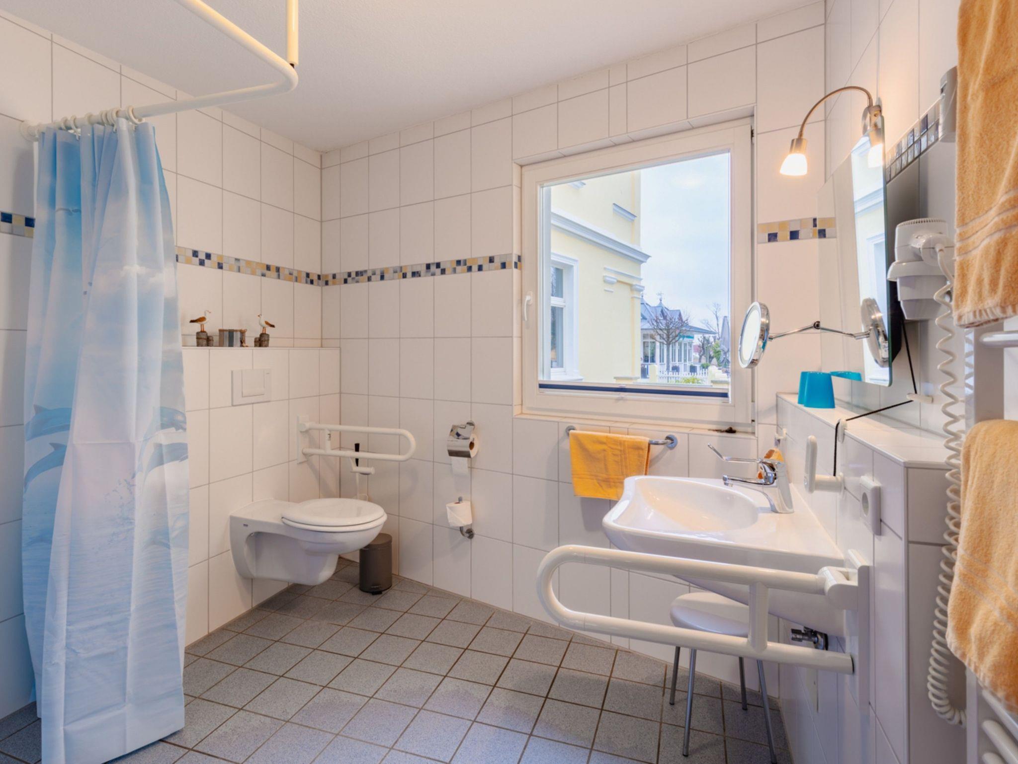 Von den beiden Duschbädern verfügt das behindertengerechte Bad über eine ebenerdige Dusche.