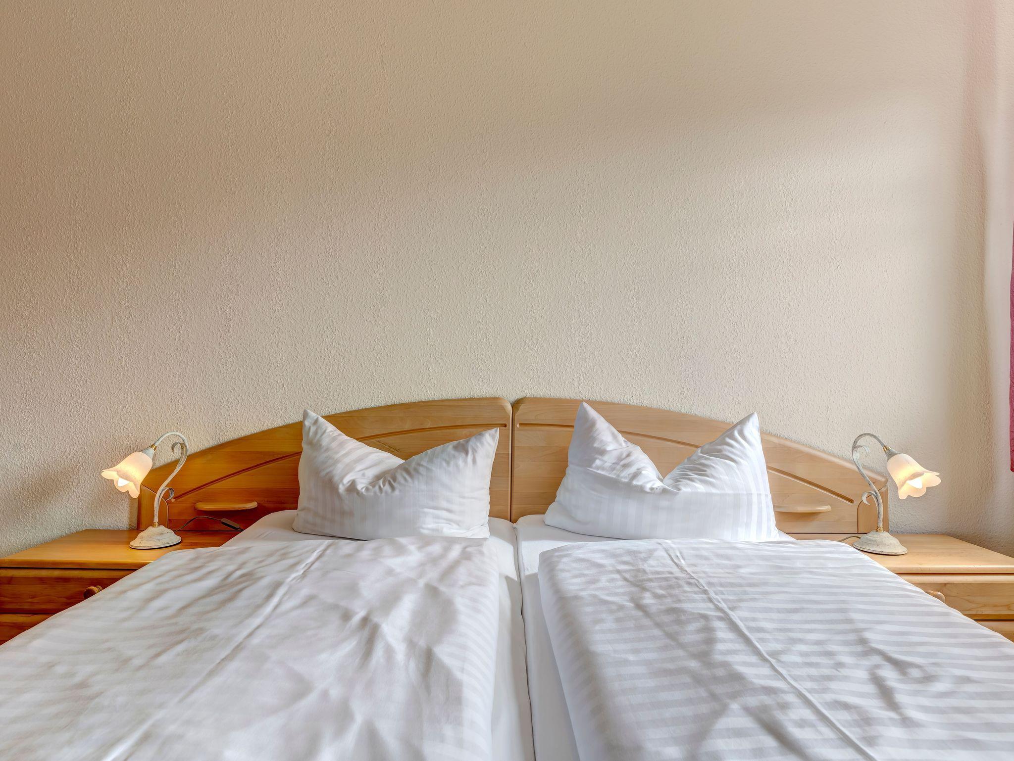 Die 50m² große Ferienwohnung mit Balkon und W-Lan verfügt über ein Wohnzimmer mit Schlafsofa und Flachbildfernsehr. Die separate, komplett ausgestattete Küche hat einen Ceranherd mit Backofen, Kühlschrank, Mikrowelle, Spülmaschine und eine Essecke. Es gibt ein Schlafzimmer mit Doppelbett und Kleiderschrank. Ein geräumiges Badezimmer mit Dusche/WC und Badewanne sowie einem Fön und ein beleuchtetem Kosmetikspiegel erwarten Sie. Zusätzlich steht Ihnen in der Wohnung ein Safe für Ihre Wertsachen zur Verfügung. Die Erstausstattung Bettwäsche und Handtücher sind inklusive.