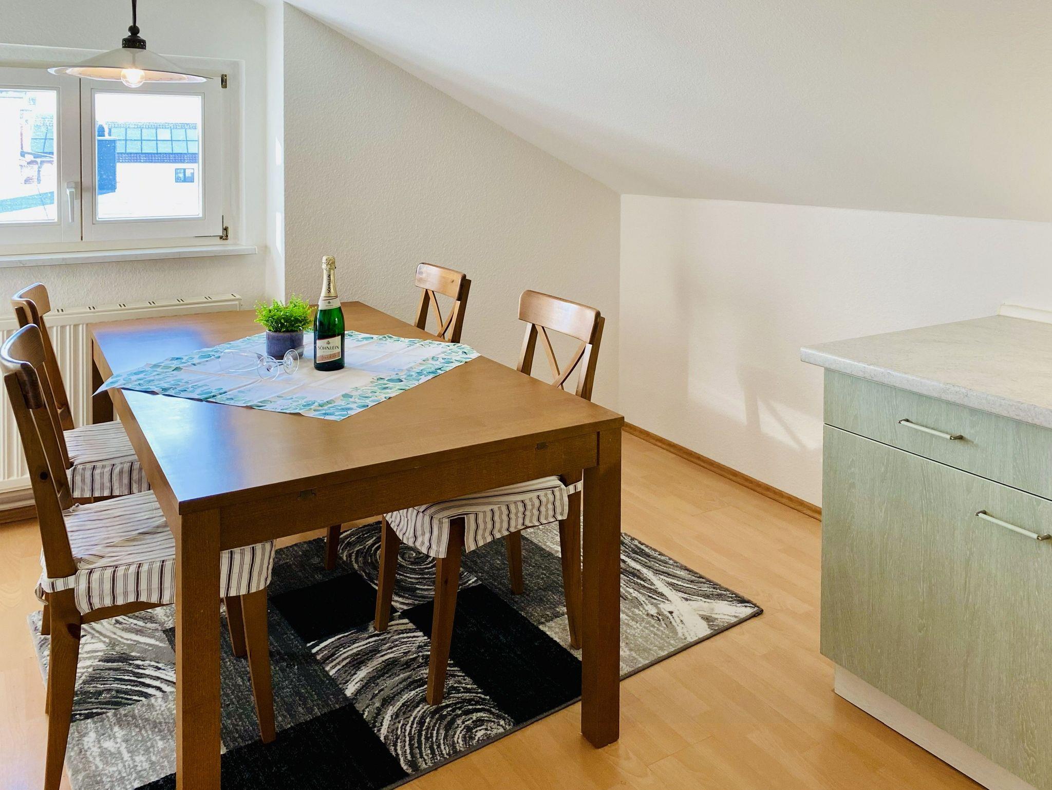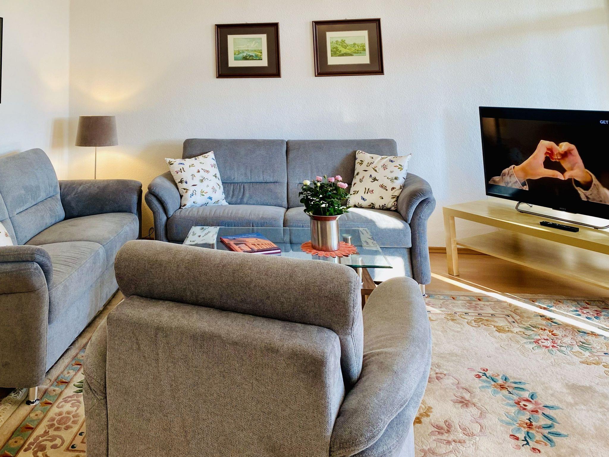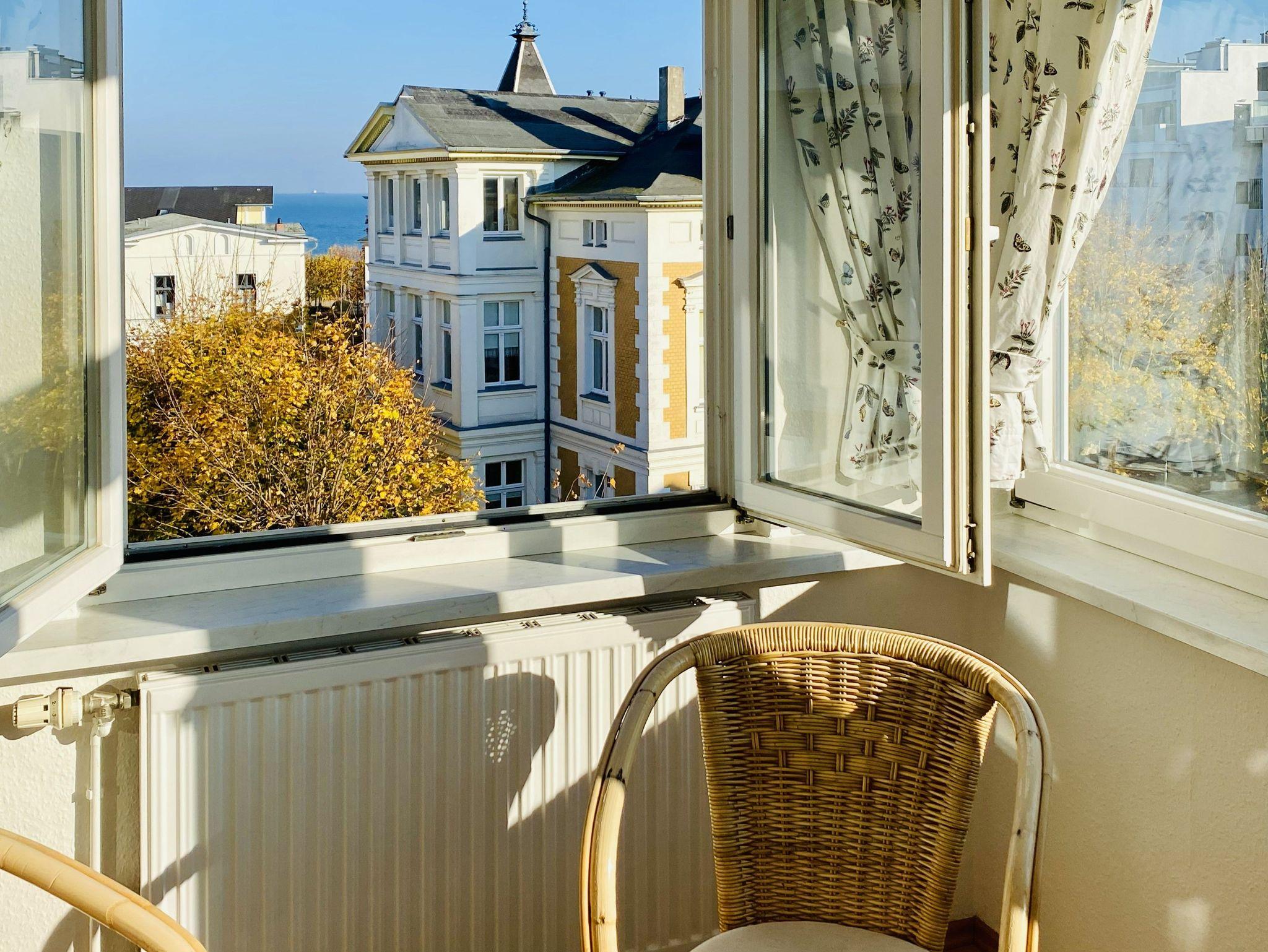 Genießen Sie Ihren Urlaub in dieser schönen 2,5-Raumwohnungim Dachgeschoss mit Blick von der Veranda auf die Ostsee. Der Wohnraum bietet durch eine funktionale Aufteilung genug Platz für die gesamte Familie. In der abgeschlossenen Küche stehen Geschirrspüler, Backofen/Herd, Mikrowelle, ein Kühlschrank mit Gefrierteil sowie ein Esstisch zur Verfügung. Zur Wohnung gehört ein Schlafzimmer mit Doppelbett sowie eine Veranda mit Schlafsofa. Es gibt ein Badezimmer mit Dusche und Badewanne.