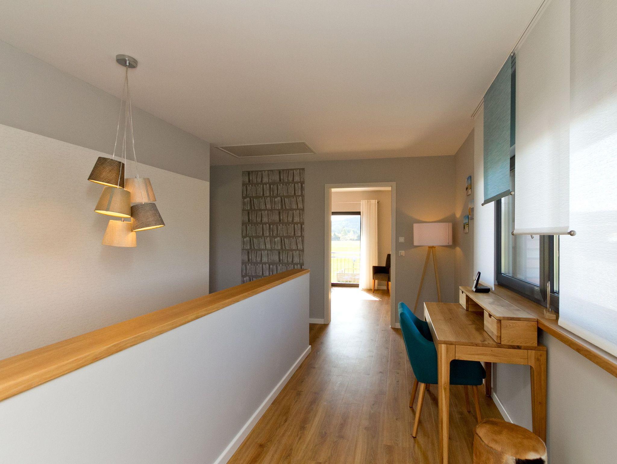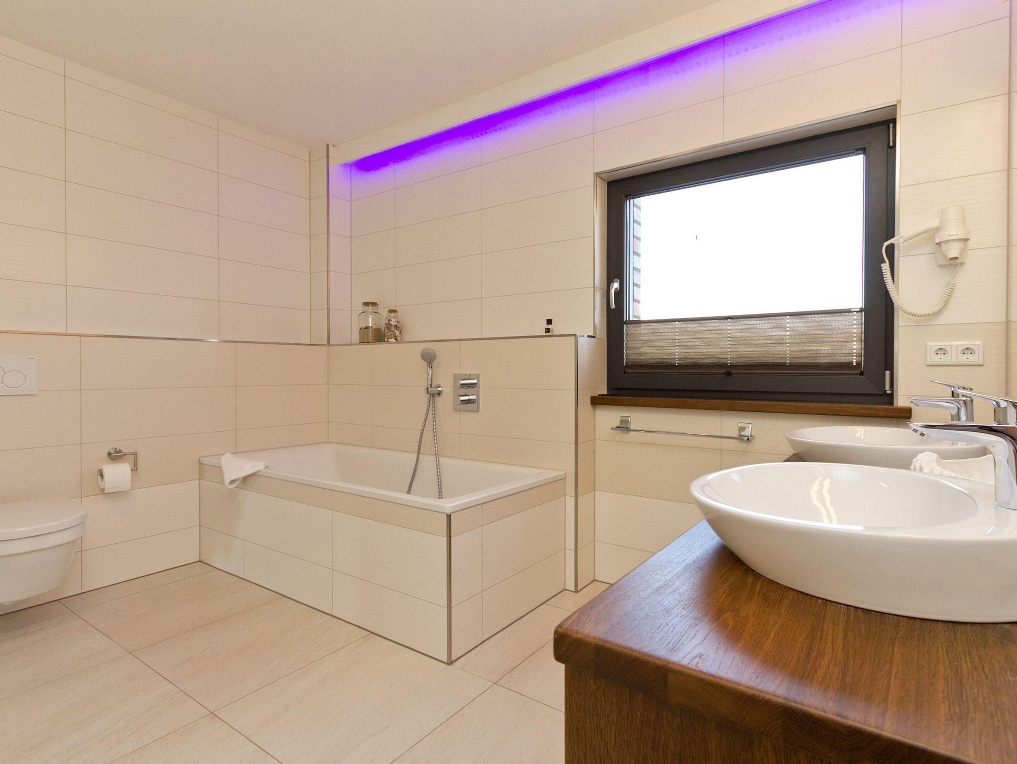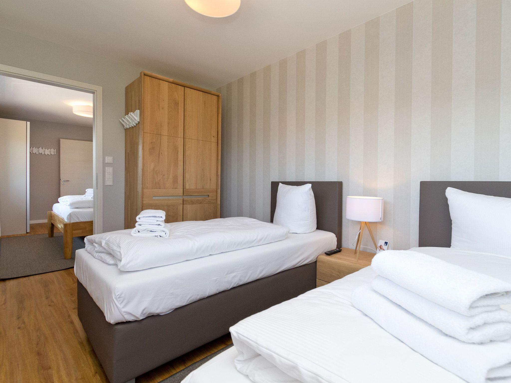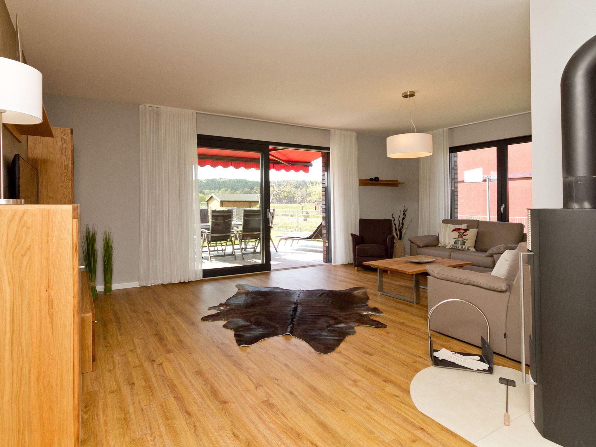 Herzlich willkommen im Ferienhaus Wiesenblick. Auf 140 Quadratmetern finden bis zu sechs Personen und zwei Kleinkinder viel Raum zum Entspannen. Der Wohnbereich im Erdgeschoss wirkt durch die großen Fenster offen und freundlich. Eine bequeme Sitzgruppe, Flat TV, Internetradio und der Kamin machen ihn zum Mittelpunkt des Hauses. Von hier erreichen Sie die sonnige Südterrasse mit rund 30 Quadratmetern Fläche, Strandkorb, Sitzmöbeln und freiem Blick über die Ahlbecker Wiesen. Die offene Küche ist modern ausgestattet und bietet am hellen Essplatz genügend Platz für gemeinsame Mahlzeiten. Ein Bad mit Dusche und WC sowie ein Hauswirtschaftsraum mit Waschmaschine und Trockner runden das Erdgeschoss ab. Im Obergeschoss liegen die drei Schlafzimmer. Das große Schlafzimmer mit Doppelbett und Flat TV bietet viel Stauraum und eine ruhige Atmosphäre. Das zweite Schlafzimmer, ebenfalls mit Doppelbett, führt in das dritte Schlafzimmer mit zwei Boxspring Einzelbetten und Flat TV. Das moderne Bad auf dieser Etage verfügt über Farblicht, Badewanne, Dusche und Doppelwaschtisch. Elektrische Jalousien im ganzen Haus sorgen bei Bedarf für gute Verdunklung. Im Garten steht Ihnen ein Saunahäuschen mit Münzautomat zur Verfügung. WLAN nutzen Sie kostenfrei. Fahrräder können zusätzlich kostenfrei gebucht werden, ausgenommen in den Monaten Juli und August.
