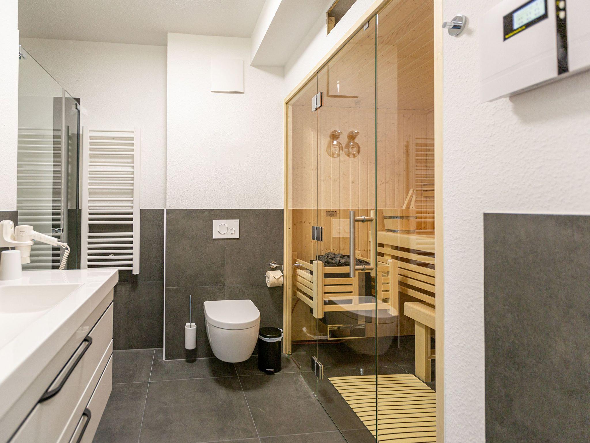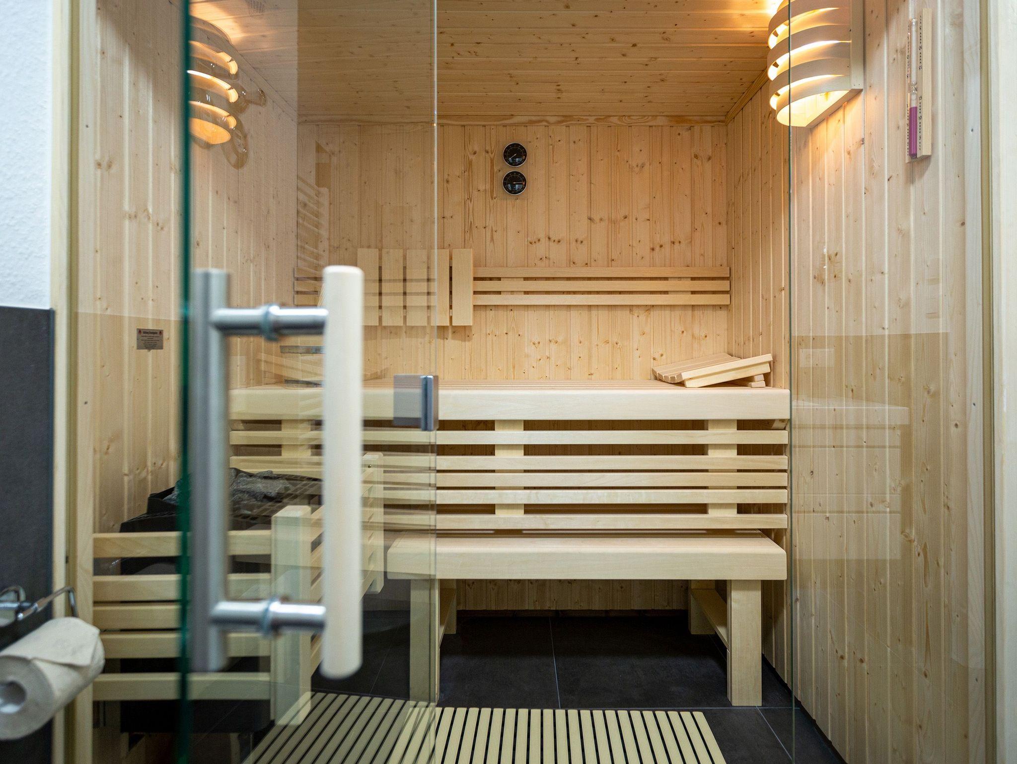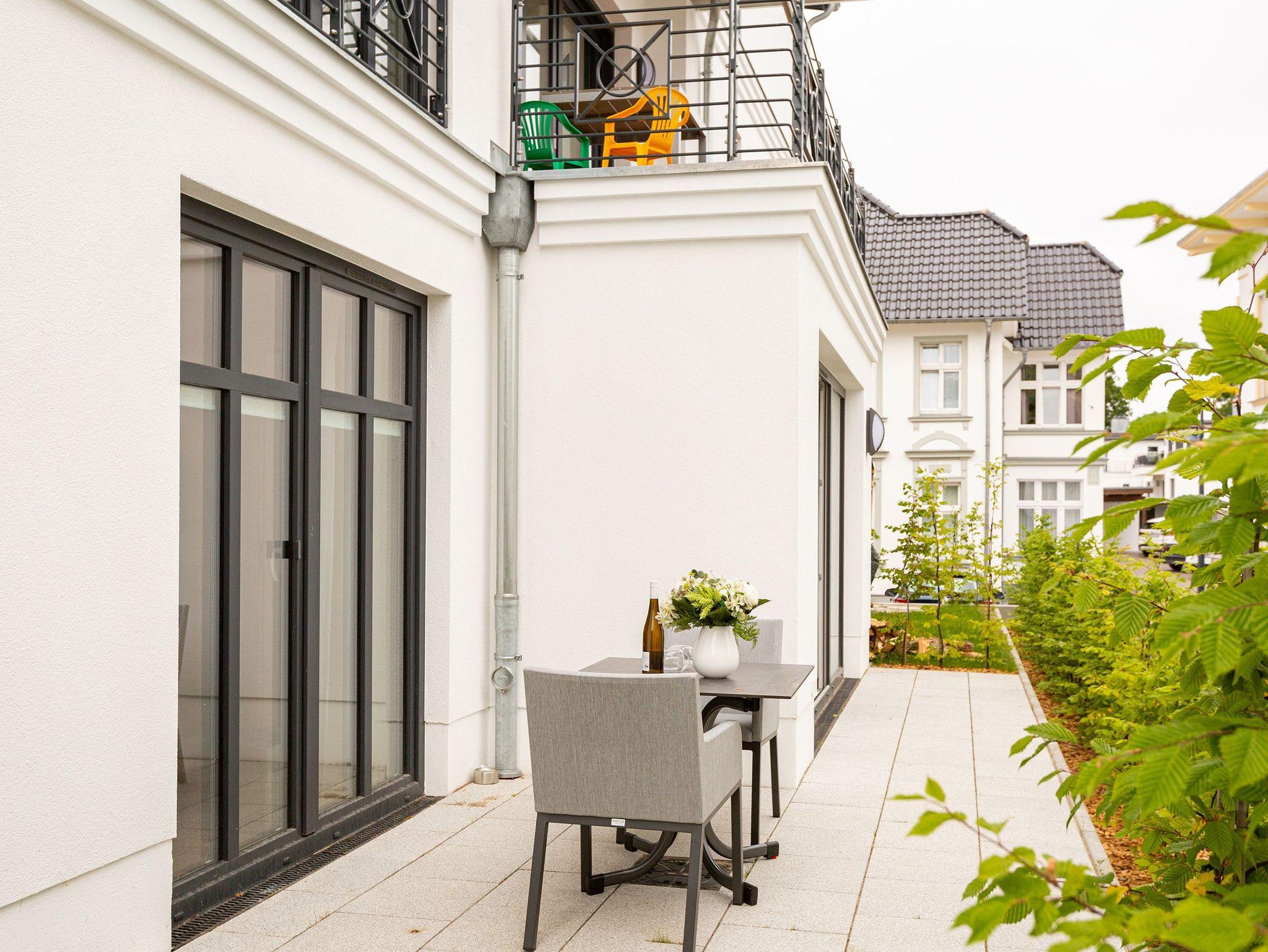 Mit viel Geschmack und einer Vorliebe für nordisches Design wurde dieses 54 Quadratmeter große Ferienparadies im Erdgeschoss des Quartiers Frohsinn eingerichtet. Die zwei Zimmer des Appartements sind eine kuschelige und zugleich stylische Wohlfühloase für zwei Personen. Das moderne Interieur besticht durch viel Eleganz. Ob Smart-TV oder schnelles und kostenfreies WLAN - Die Technik ist auf dem neuesten Stand. Das Wohnzimmer besitzt sogar einen Kamin. Freuen Sie sich auf entspannte Stunden zu zweit auf dem bequemen Sofa oder im Lesesessel. In das geräumige Wohnzimmer ist eine offene Küche mit einem Esstisch und zwei Stühlen intergiert. Voll ausgestattet mit hochwertigen Küchengeräten und edlem Geschirr bietet Sie allen Komfort. Vor dem Wohnzimmer befindet sich eine kleine Nord-Terrasse. Lassen Sie es sich auf den Gartenmöbeln oder den beiden Sonnenliegen gut gehen. Für erholsame Träume sorgt das behagliche Schlafzimmer. Auf dem komfortablen Boxspringdoppelbett (1,80 m x 2,00 m) schlafen Sie wie auf Wolken. Auch hier gibt es einen Smart-TV. Ein geräumiger Schrank bietet viel Platz. Das Badezimmer ist nicht einfach nur mit einer Dusche und einem WC ausgestattet. Hier wartet zudem eine kleine Finnische Sauna nur darauf, Sie an kühlen Inseltagen muschelig aufzuwärmen. Handtücher liegen für Sie bereit. Und auch die Betten sind bei Anreise schon bezogen. Zur Wohnung gehört ein Stellplatz in der Tiefgarage. Für ihre Fahrräder gibt es einen separaten Kellerraum.