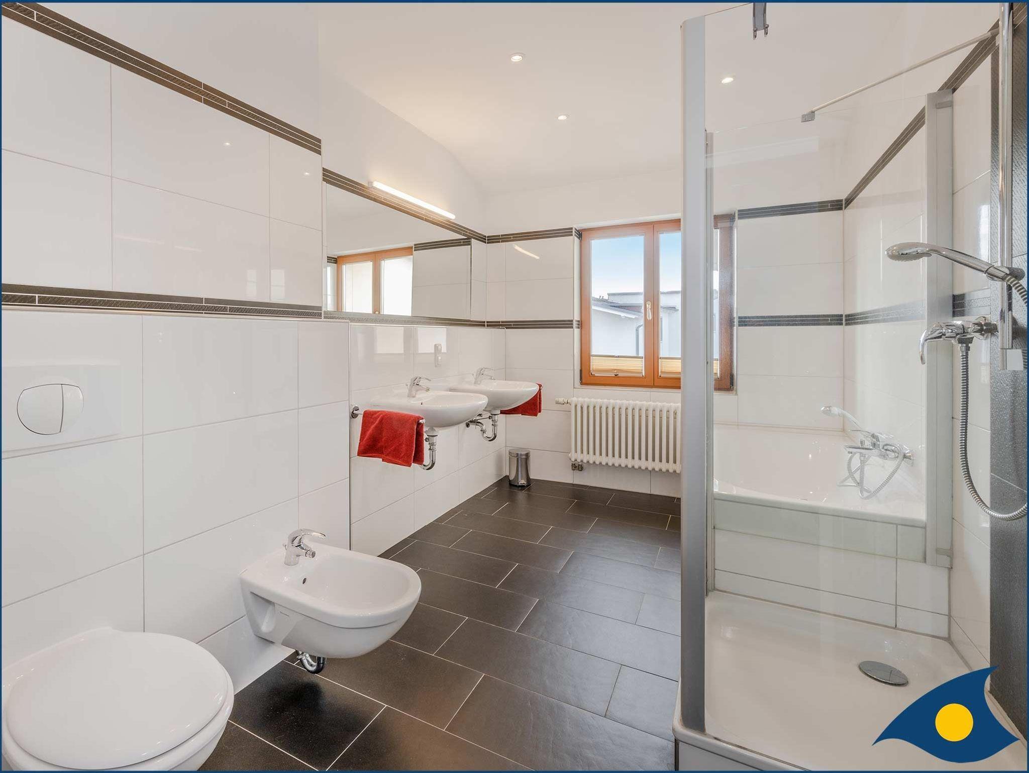 • Badzimmer mit Dusche, Badewanne, Bidet