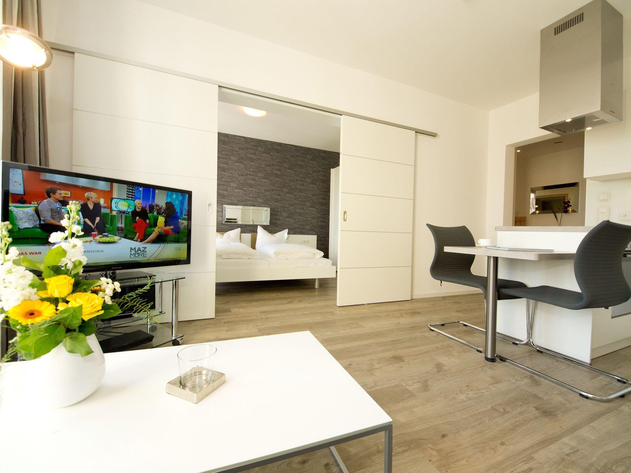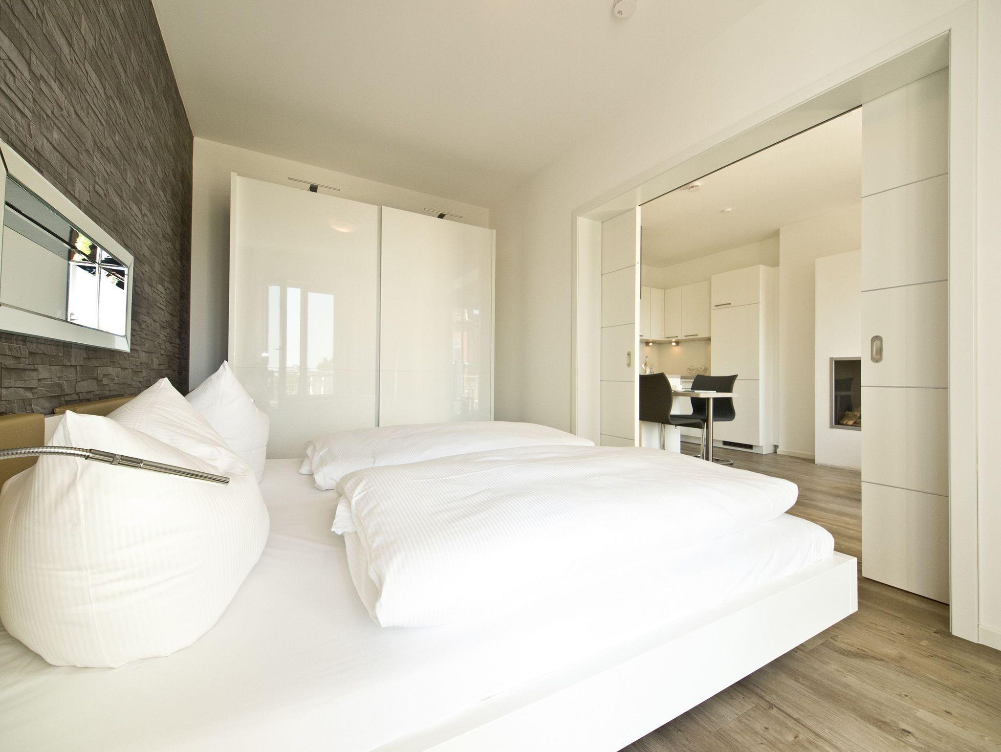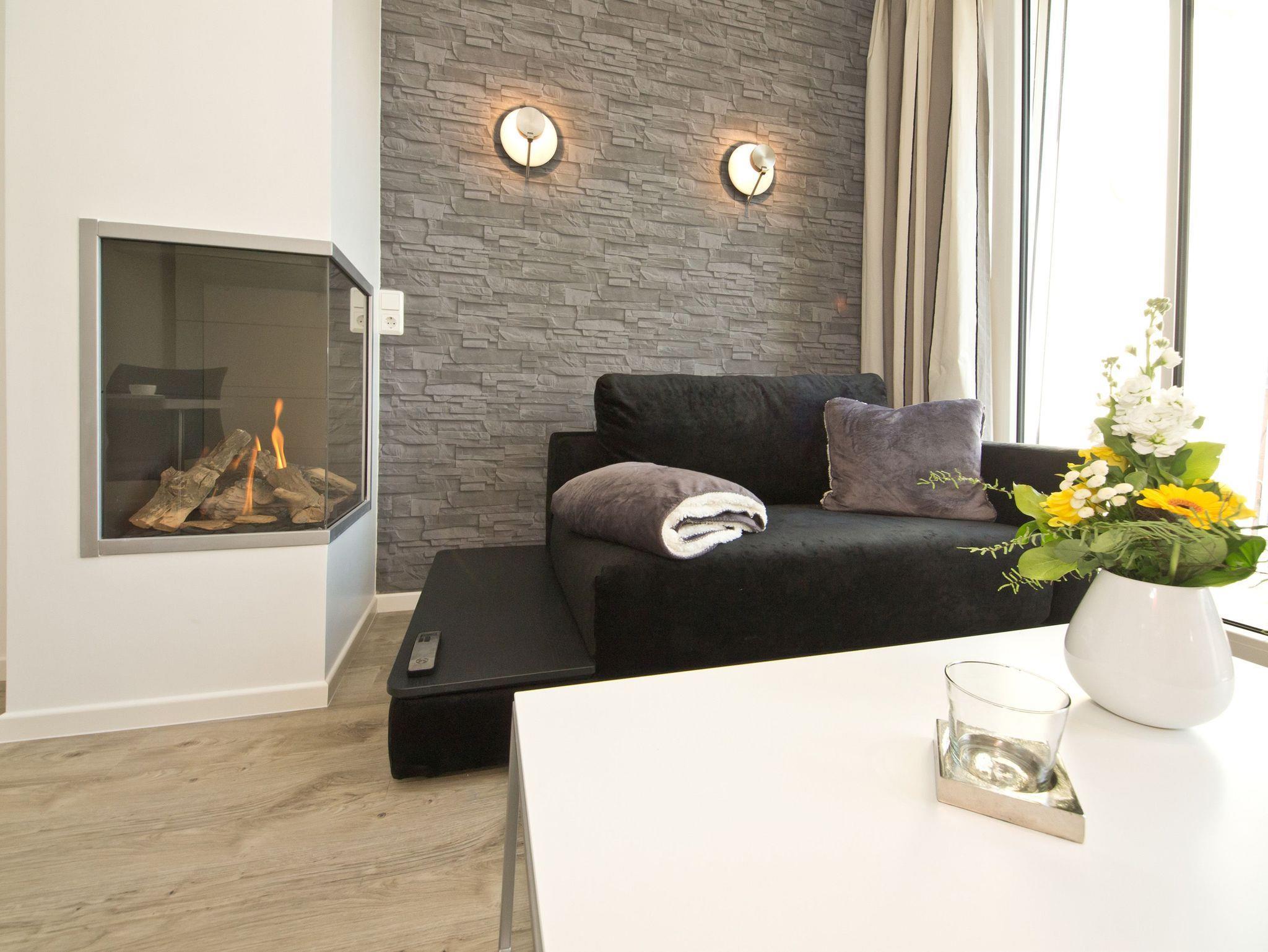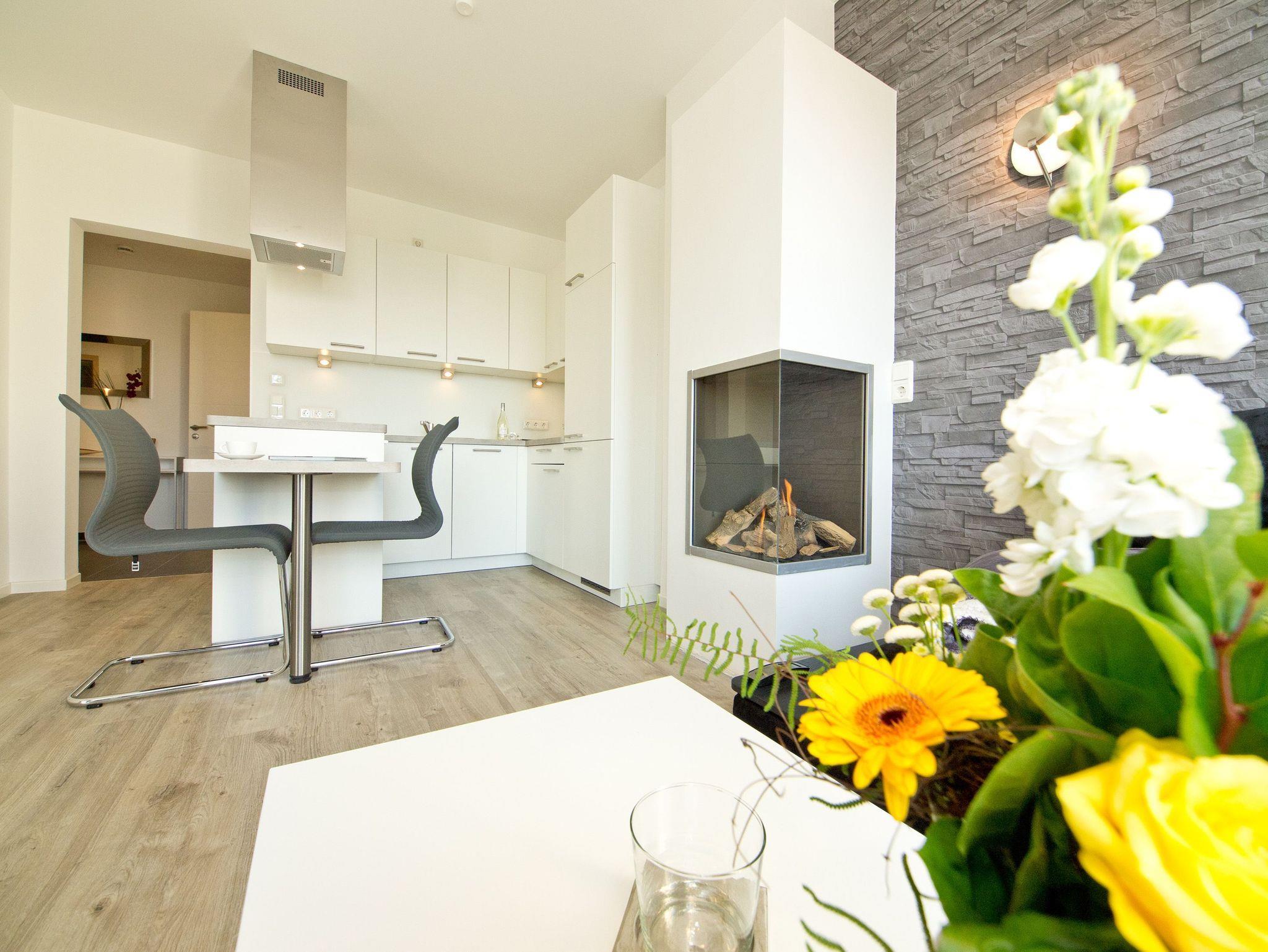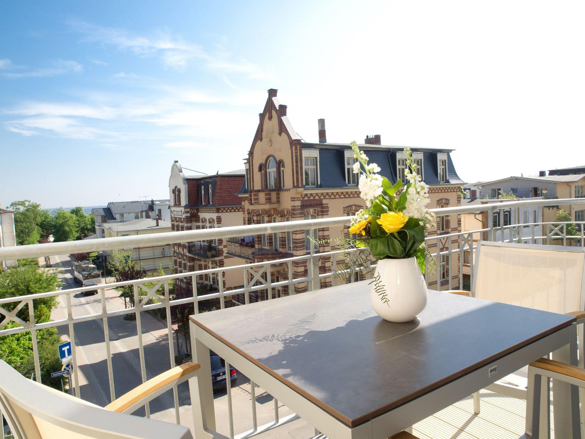 Im 2. Obergeschoss des Vorderhauses empfängt Sie die Ferienwohnung 16. Modern, exklusiv, stylisch, aber dennoch gemütlich mit Kuschelsofa und Gaskamin, der per Fernbedienung ganz einfach zu benutzen ist. Das 2-Raum-Appartement ist für 2 Personen und ein Kleinkind (bis 3 Jahre im Kinderreisebett) eingerichtet. Der Wohnbereich mit Flat-TV wird durch die offene, komplett ausgestattete Küche ergänzt. Der Schlafbereich mit bequemem Doppelbett ist durch eine Schiebetür getrennt. Von hier hat man (wie auch aus dem Wohnbereich) Zugang auf den schönen Balkon, der zur Meerseite ausgerichtet ist. Über die Bäume an der Promenade und die Goethestraße hinweg, kann man sogar die Ostsee sehen. Ein besonderes Highlight ist die wohnungseigene Sauna, die gegen eine Gebühr von 2,00 EUR / Stunde zu nutzen ist. Gleich daneben liegt das Bad mit Echtglasdusche und WC. Auf Wunsch stellen wir für unsere kleinen Gäste ein Kinderreisebett (ohne zusätzliche Matratze [&] Bettzeug) und einen Kinderhochstuhl ( gegen einen Aufpreis) zur Verfügung. Für Ihren Komfort sind die Betten bei der Anreise bezogen und Handtücher liegen bereit. Ein PKW-Stellplatz steht in der Tiefgarage am Haus zur Verfügung.