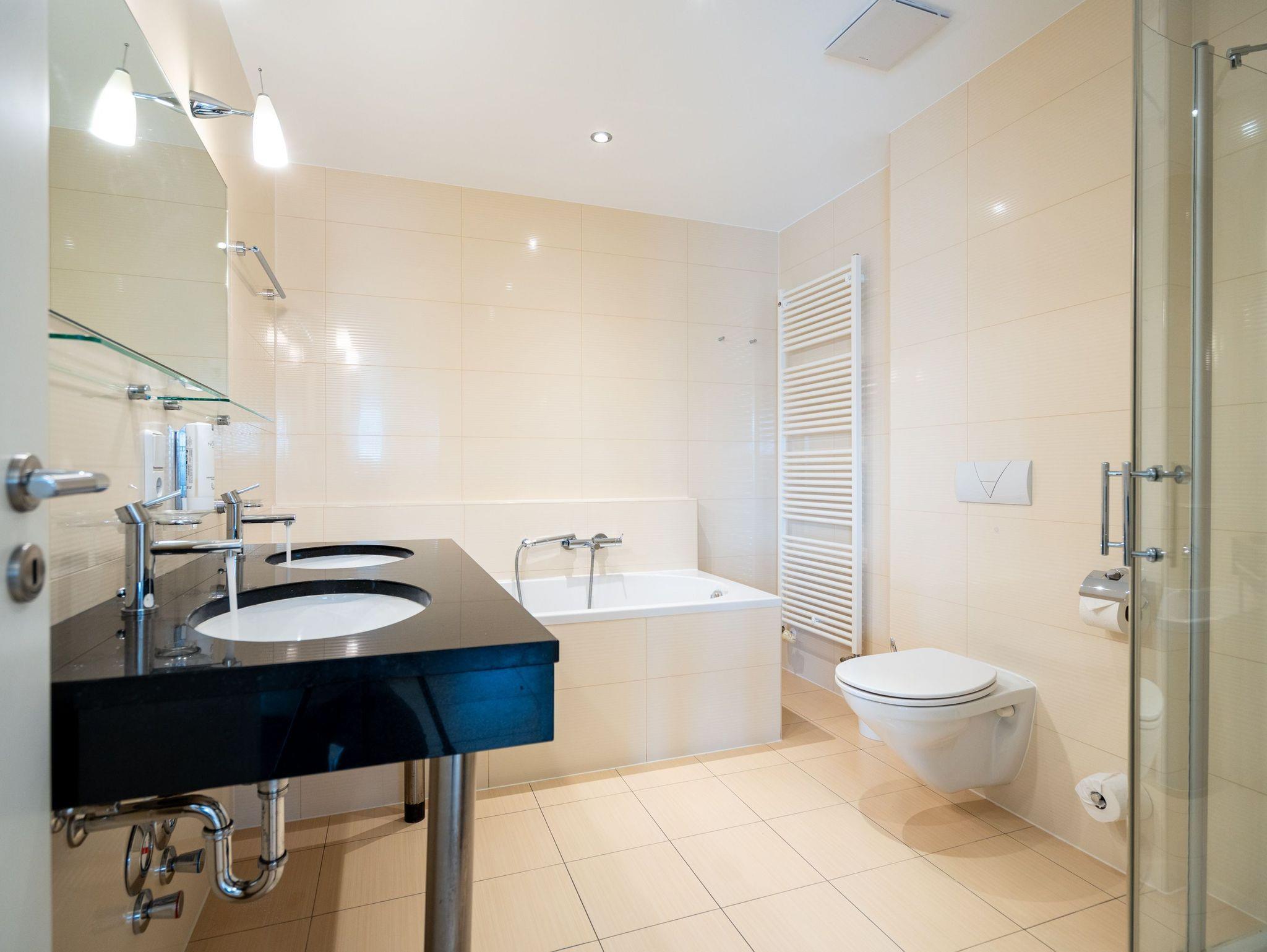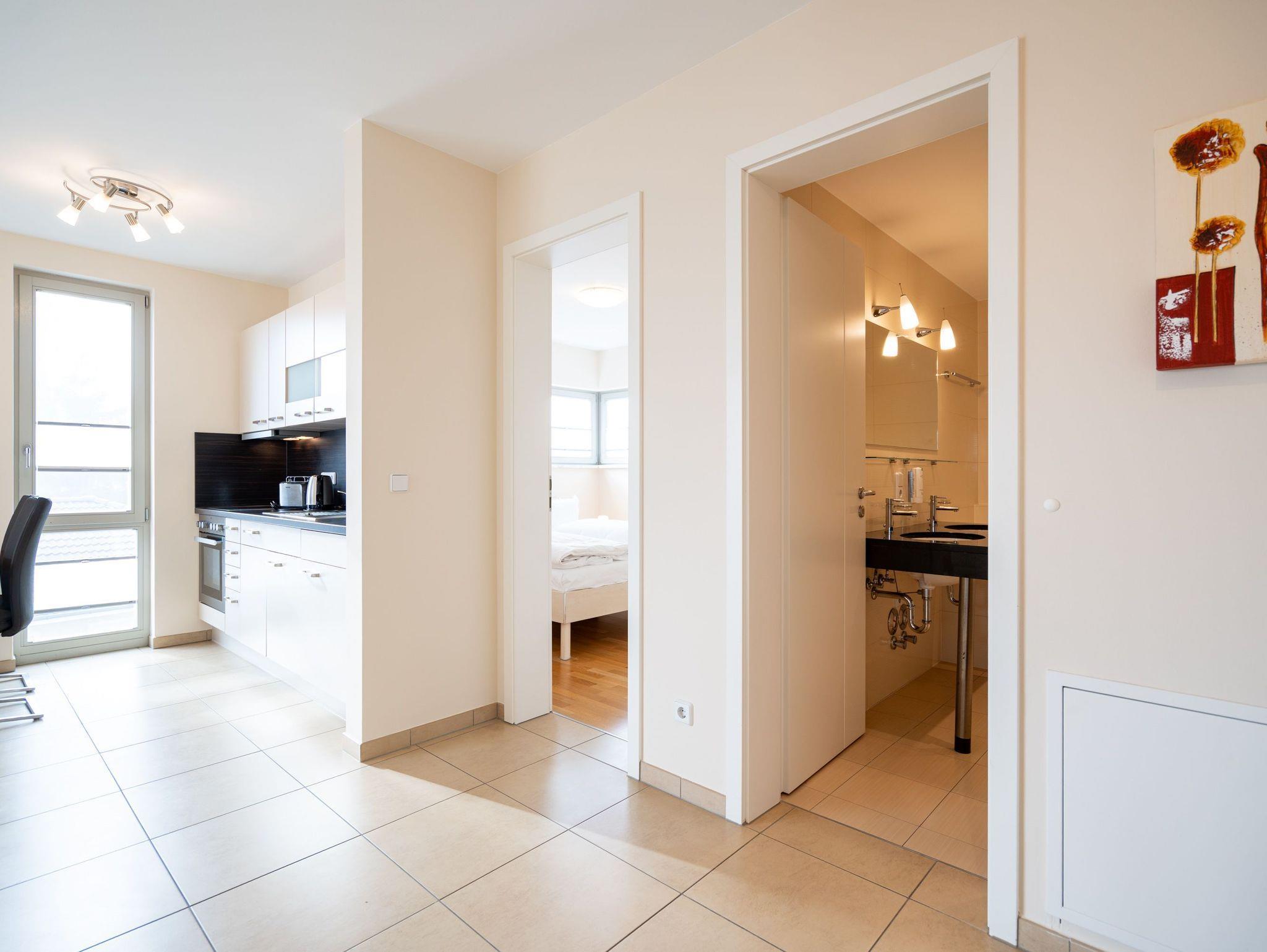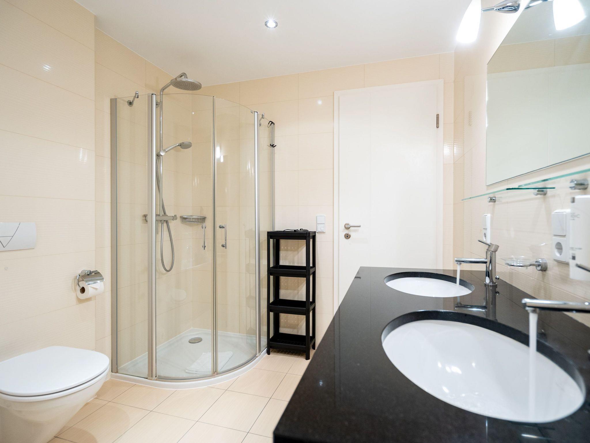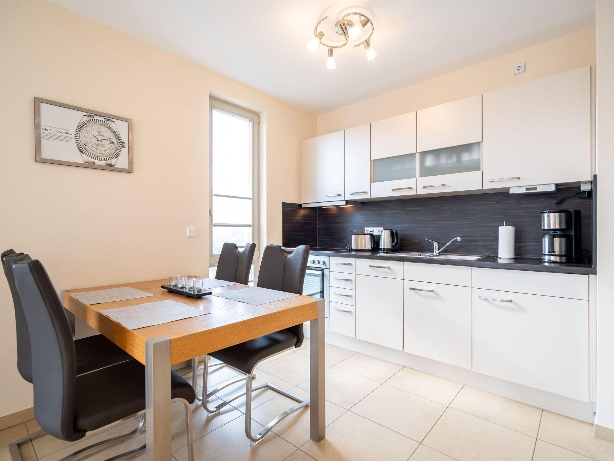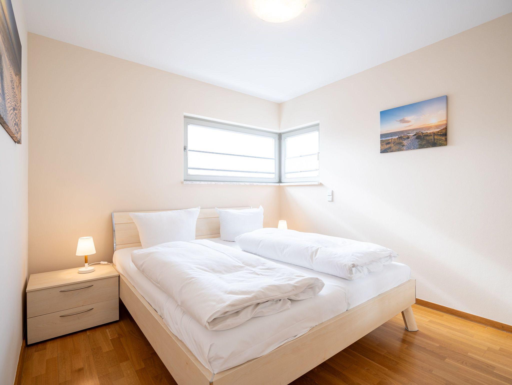 Die moderne und stilvoll eingerichtete 3-Raum-Ferienwohnung in der Villa Estrelia bietet auf 65 m² ausreichend Platz für bis zu vier Personen. Sie befindet sich im 1. Obergeschoss des hochwertigen Neubaus und überzeugt mit einer durchdachten Raumaufteilung sowie einer komfortablen Ausstattung. Der helle Wohnbereich lädt mit einer gemütlichen Sitzgruppe, einem großen Flat-TV und einer modernen Einrichtung zum Entspannen ein. Angrenzend befindet sich die offene Küche, die mit hochwertigen Geräten und einer vollständigen Ausstattung für alle kulinarischen Bedürfnisse sorgt. Ein stilvoller Essplatz bietet genügend Raum für gemeinsame Mahlzeiten. Vom Wohnbereich aus gelangt man direkt auf den sonnigen Balkon, der zum Verweilen an der frischen Seeluft einlädt. Die Wohnung verfügt über zwei separate Schlafzimmer, jeweils mit komfortablen Doppelbetten, in denen erholsamer Schlaf garantiert ist. Ein geräumiges Badezimmer mit Badewanne und einer modernen Glasdusche sorgt für besonderen Komfort. Zusätzlich steht ein Gäste-WC zur Verfügung. Zur Ferienwohnung gehört ein kostenfreier Pkw-Stellplatz in der Tiefgarage der Villa Estrelia, wo auch mitgebrachte Fahrräder sicher untergestellt werden können. Ein Waschmaschinen- und Trocknerbereich im Haus kann gegen eine geringe Gebühr genutzt werden. Selbstverständlich steht Ihnen kostenfreies WLAN zur Verfügung.