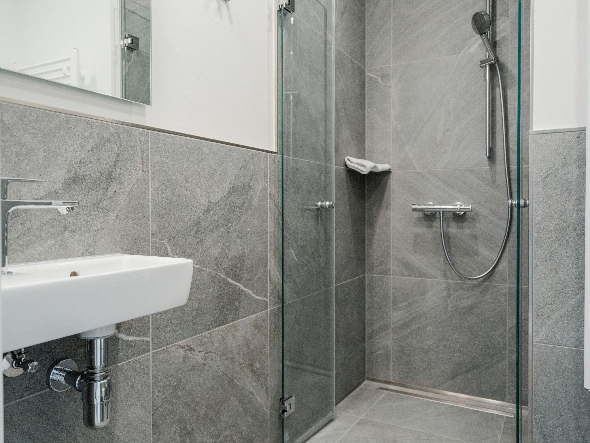 Die 2024 fertig gestellte Strandterrasse liegt direkt an der belebten Strandpromenade und bietet einen einzigartigen Ausblick auf die Grand Dame der historischen Seebrücken sowie die historische Konzertmuschel, einem beliebten Treffpunkt für Kunst und Kultur. Dahinter liegt die Ostsee ? ein Panorama, das zu den schönsten in den Kaiserbädern gehört. Es ist wie das Abtauchen in eine andere Zeit. In eine Zeit, in der man mit Stock, Sonnenschirm und Hut fürs ?Sehen und gesehen werden? über die Promenade schlenderte; aber auch in eine Zeit, in der ? damals wie heute ? Zeit einmal für eine kurze Weile keine Rolle spielt. Weil man angekommen ist im Loslassen, Entspannen und Genießen. Es ist dieser besondere Geruch nach Meeresluft und Freiheit, der in Erinnerung bleibt. Dazu die Bilder, die man mitnimmt. Von langen Strandspaziergängen, vom Lachen in fröhlich schäumenden Ostseewellen, von der Zeit in einem wunderschönen Urlaubsdomizil. Denn genau das ist die Strandterrasse mit ihren 56 modernen und exklusiven Ferienappartements direkt gegenüber der Ahlbecker Seebrücke. Die Ein-, Zwei- oder Dreizimmerwohnungen ? zwischen 40 und 70 Quadratmeter groß ? sind von einer Innenarchitektin gemeinsam mit unserem Erfahrungsschatz an Gästewünschen mit viel Liebe zum Detail und ganz individuell konzipiert worden. Entspannung und Wohlfühlen stehen an erster Stelle. Alles ist aufeinander abgestimmt und sorgt für eine gemütliche Atmosphäre. Wählen Sie zwischen einem Domizil in einem hellen, sandfarbenen Designkonzept oder einem Appartement mit anthrazitfarbenen Farbakzenten. Alle Appartements verfügen gleichermaßen über eine stilvolle und komfortable Einrichtung, die passgenau angefertigt worden ist, sowie über moderne Küchen und Bäder. Jedem Schlafzimmer ist ein eigenes Bad mit Dusche zugeordnet (außer App. B4.5). Die Appartements besitzen fast alle einen Balkon ? viele schauen sogar zur Ostsee hinaus. Die meisten Feriendomizile haben einen Elektrokamin und Infrarotsaunen. Im Erdgeschoss befindet sich ein separater Gemeinschaftsraum für Fahrräder. Außerdem besteht die Möglichkeit, im Gemeinschaftswaschraum 2 Waschmaschinen [&] Trockner zu nutzen. Ergänzt wird das Angebot durch eine Gemeinschaftssauna, die täglich von 11:00 bis 22:00 Uhr nutzbar ist. In der Tiefgarage (Einfahrtshöhe 2,03 Meter) steht für jede Wohnung 1 Pkw-Stellplatz zur Verfügung. Ist alles zur Zufriedenheit untergebracht? Dann kann der Urlaub ja beginnen. Und beim Blick vom Balkon über die Ostsee treffen sich zum Sonnenaufgang das Heute und das Damals. Gelassenheit legt sich beim Gang hinunter an den Strand auf die Seele. Jetzt darf die Zeit stehenbleiben.