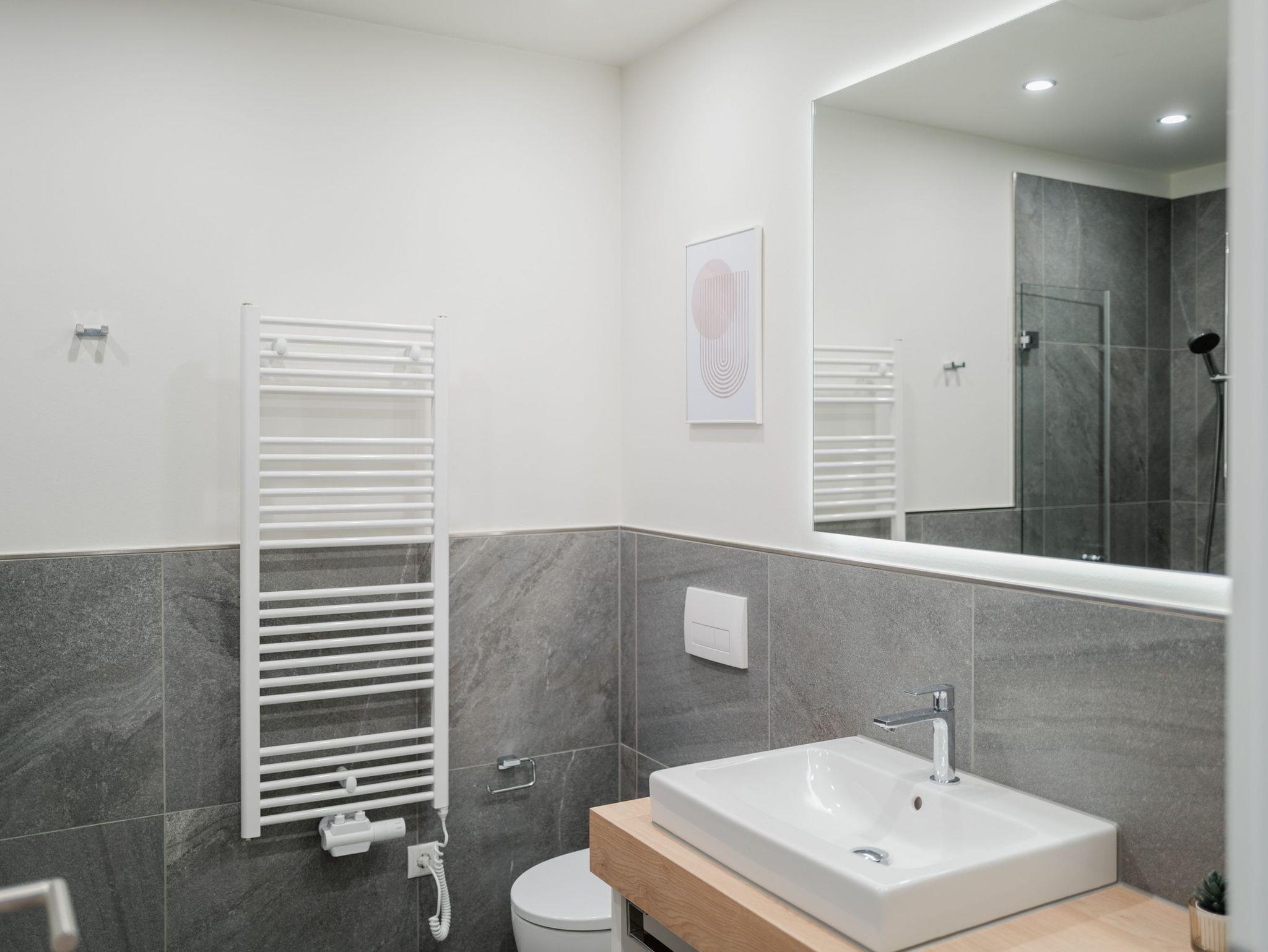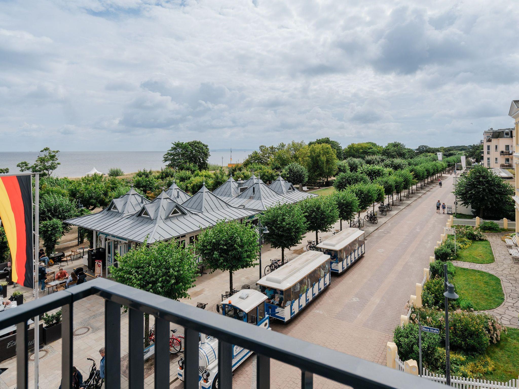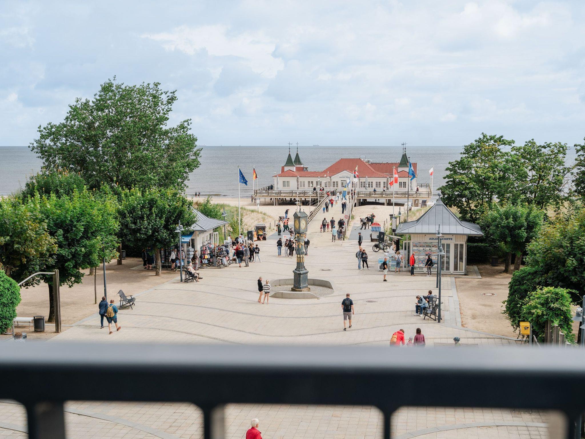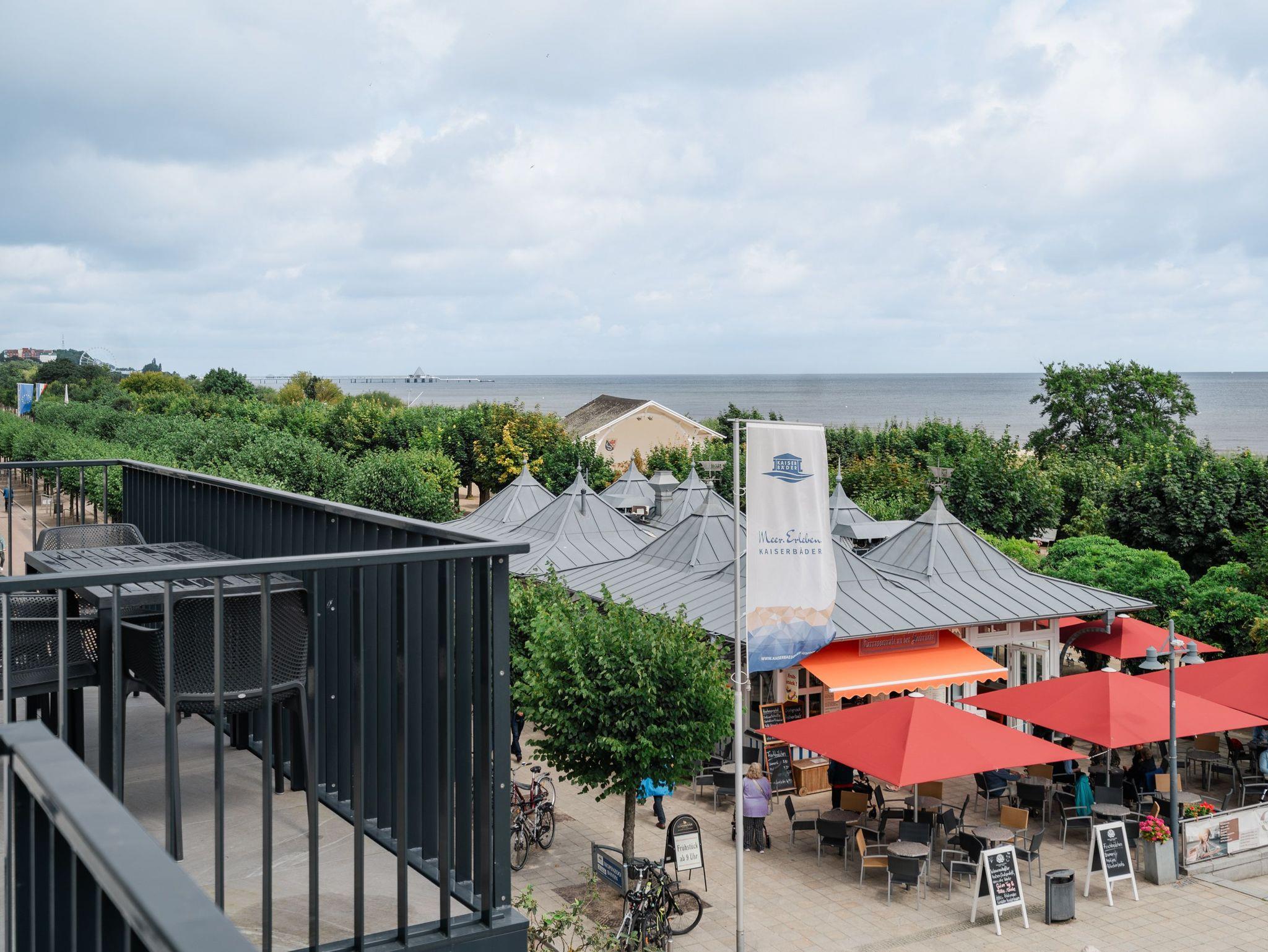 Die 2024 fertig gestellte Strandterrasse liegt direkt an der belebten Strandpromenade und bietet einen einzigartigen Ausblick auf die Grand Dame der historischen Seebrücken sowie die historische Konzertmuschel, einem beliebten Treffpunkt für Kunst und Kultur. Dahinter liegt die Ostsee ? ein Panorama, das zu den schönsten in den Kaiserbädern gehört. Es ist wie das Abtauchen in eine andere Zeit. In eine Zeit, in der man mit Stock, Sonnenschirm und Hut fürs „Sehen und gesehen werden“ über die Promenade schlenderte; aber auch in eine Zeit, in der ? damals wie heute ? Zeit einmal für eine kurze Weile keine Rolle spielt. Weil man angekommen ist im Loslassen, Entspannen und Genießen. Es ist dieser besondere Geruch nach Meeresluft und Freiheit, der in Erinnerung bleibt. Dazu die Bilder, die man mitnimmt. Von langen Strandspaziergängen, vom Lachen in fröhlich schäumenden Ostseewellen, von der Zeit in einem wunderschönen Urlaubsdomizil. Denn genau das ist die Strandterrasse mit ihren 56 modernen und exklusiven Ferienappartements direkt gegenüber der Ahlbecker Seebrücke. Die Ein-, Zwei- oder Dreizimmerwohnungen ? zwischen 40 und 70 Quadratmeter groß ? sind von einer Innenarchitektin gemeinsam mit unserem Erfahrungsschatz an Gästewünschen mit viel Liebe zum Detail und ganz individuell konzipiert worden. Entspannung und Wohlfühlen stehen an erster Stelle. Alles ist aufeinander abgestimmt und sorgt für eine gemütliche Atmosphäre. Wählen Sie zwischen einem Domizil in einem hellen, sandfarbenen Designkonzept oder einem Appartement mit anthrazitfarbenen Farbakzenten. Alle Appartements verfügen gleichermaßen über eine stilvolle und komfortable Einrichtung, die passgenau angefertigt worden ist, sowie über moderne Küchen und Bäder. Jedem Schlafzimmer ist ein eigenes Bad mit Dusche zugeordnet (außer App. B4.5). Die Appartements besitzen fast alle einen Balkon ? viele schauen sogar zur Ostsee hinaus. Die meisten Feriendomizile haben einen Elektrokamin und Infrarotsaunen. Im Erdgeschoss befindet sich ein separater Gemeinschaftsraum für Fahrräder. Außerdem besteht die Möglichkeit, im Gemeinschaftswaschraum 2 Waschmaschinen [&] Trockner zu nutzen. Ergänzt wird das Angebot durch eine Gemeinschaftssauna, die täglich von 11:00 bis 22:00 Uhr nutzbar ist. In der Tiefgarage (Einfahrtshöhe 2,03 Meter) steht für jede Wohnung 1 Pkw-Stellplatz zur Verfügung. Ist alles zur Zufriedenheit untergebracht? Dann kann der Urlaub ja beginnen. Und beim Blick vom Balkon über die Ostsee treffen sich zum Sonnenaufgang das Heute und das Damals. Gelassenheit legt sich beim Gang hinunter an den Strand auf die Seele. Jetzt darf die Zeit stehenbleiben.