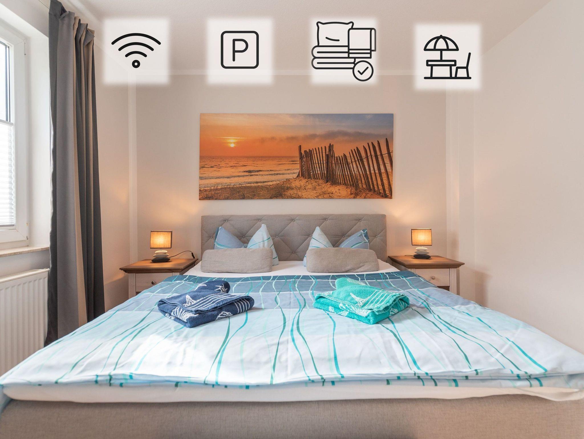 Die Nebenkosten für Wasser, Strom, Heizung sowie die Nutzung eines PKW Stellplatzes sind im Preis enthalten sind im Mietpreis enthalten. 1x Bettwäsche; 1 Duschtuch; 1 Handtuch (pro Person) gehören ebenso dazu. Sollte Ihnen dies nicht reichen, können Sie sich gern ein Wäschepaket bei uns nachkaufen. Eine Grundausstattung wird von der Reinigungsfirma gestellt: Spülmittel; Toilettenpapier und Müllbeutel. Sollten diese Sachen aufgebraucht sein, müssen Sie sich diese Artikel selbst nachkaufen. Wir möchten Sie bitten, die Hinweise der Reinigungsfirma in der Wohnung zu beachten.