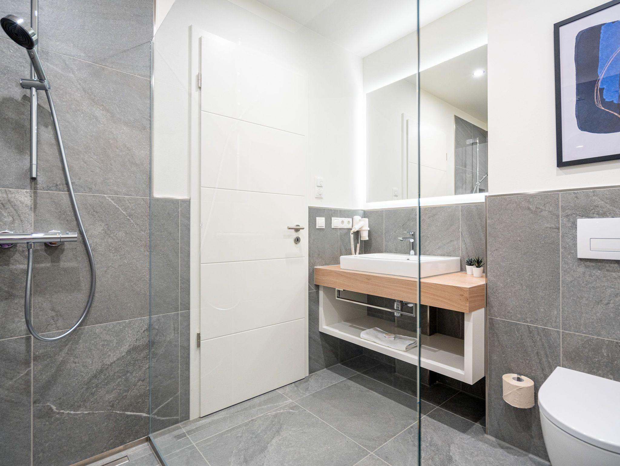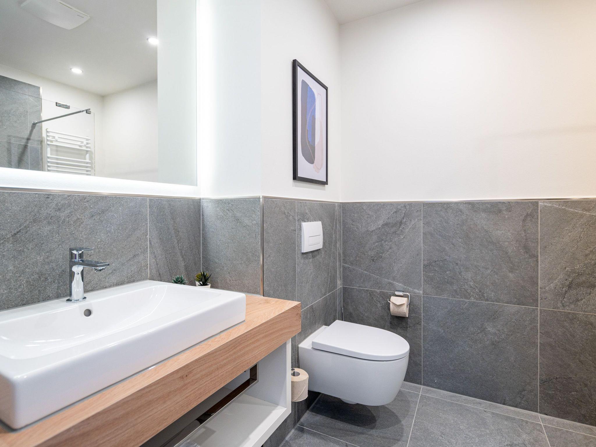 Die 2024 fertig gestellte Strandterrasse liegt direkt an der belebten Strandpromenade und bietet einen einzigartigen Ausblick auf die Grand Dame der historischen Seebrücken sowie die historische Konzertmuschel, einem beliebten Treffpunkt für Kunst und Kultur. Dahinter liegt die Ostsee ? ein Panorama, das zu den schönsten in den Kaiserbädern gehört. Es ist wie das Abtauchen in eine andere Zeit. In eine Zeit, in der man mit Stock, Sonnenschirm und Hut fürs ?Sehen und gesehen werden? über die Promenade schlenderte; aber auch in eine Zeit, in der ? damals wie heute ? Zeit einmal für eine kurze Weile keine Rolle spielt. Weil man angekommen ist im Loslassen, Entspannen und Genießen. Es ist dieser besondere Geruch nach Meeresluft und Freiheit, der in Erinnerung bleibt. Dazu die Bilder, die man mitnimmt. Von langen Strandspaziergängen, vom Lachen in fröhlich schäumenden Ostseewellen, von der Zeit in einem wunderschönen Urlaubsdomizil. Denn genau das ist die Strandterrasse mit ihren 56 modernen und exklusiven Ferienappartements direkt gegenüber der Ahlbecker Seebrücke. Die Ein-, Zwei- oder Dreizimmerwohnungen ? zwischen 40 und 70 Quadratmeter groß ? sind von einer Innenarchitektin gemeinsam mit unserem Erfahrungsschatz an Gästewünschen mit viel Liebe zum Detail und ganz individuell konzipiert worden. Entspannung und Wohlfühlen stehen an erster Stelle. Alles ist aufeinander abgestimmt und sorgt für eine gemütliche Atmosphäre. Wählen Sie zwischen einem Domizil in einem hellen, sandfarbenen Designkonzept oder einem Appartement mit anthrazitfarbenen Farbakzenten. Alle Appartements verfügen gleichermaßen über eine stilvolle und komfortable Einrichtung, die passgenau angefertigt worden ist, sowie über moderne Küchen und Bäder. Jedem Schlafzimmer ist ein eigenes Bad mit Dusche zugeordnet (außer App. B4.5). Die Appartements besitzen fast alle einen Balkon ? viele schauen sogar zur Ostsee hinaus. Die meisten Feriendomizile haben einen Elektrokamin und Infrarotsaunen. Im Erdgeschoss befindet sich ein separater Gemeinschaftsraum für Fahrräder. Außerdem besteht die Möglichkeit, im Gemeinschaftswaschraum 2 Waschmaschinen [&] Trockner zu nutzen. Ergänzt wird das Angebot durch eine Gemeinschaftssauna, die täglich von 11:00 bis 22:00 Uhr nutzbar ist. In der Tiefgarage (Einfahrtshöhe 2,03 Meter) steht für jede Wohnung 1 Pkw-Stellplatz zur Verfügung. Ist alles zur Zufriedenheit untergebracht? Dann kann der Urlaub ja beginnen. Und beim Blick vom Balkon über die Ostsee treffen sich zum Sonnenaufgang das Heute und das Damals. Gelassenheit legt sich beim Gang hinunter an den Strand auf die Seele. Jetzt darf die Zeit stehenbleiben.