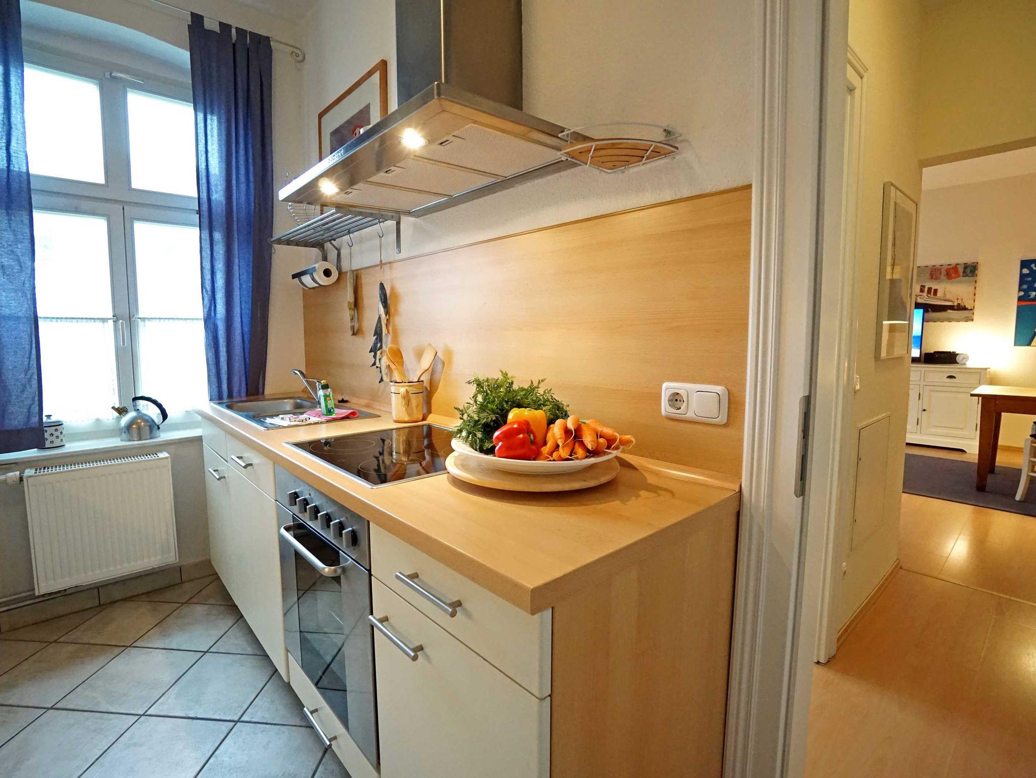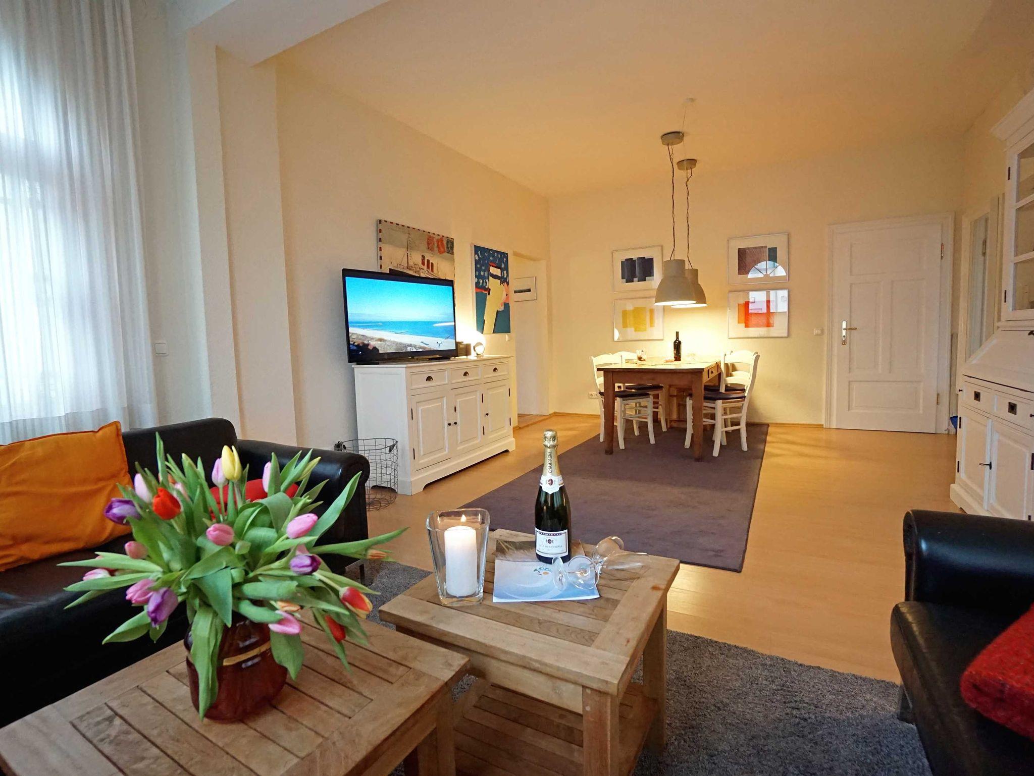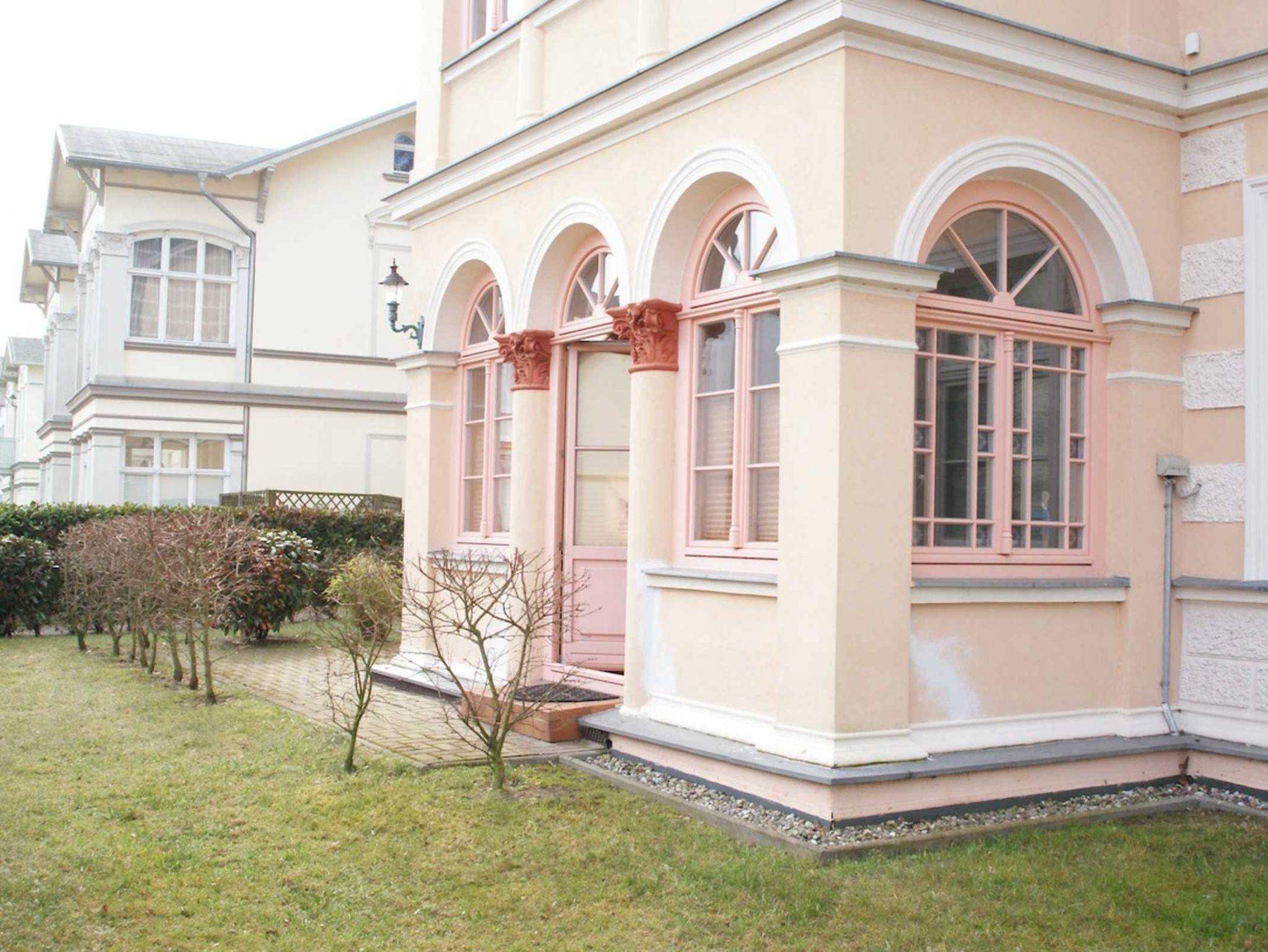 In unmittelbarer Nähe zur Ahlbecker Seebrücke, in zentraler Lage, befindet sich die restaurierte Bädervilla Bellevue. Die großzügige, modern eingerichtete 3-Zimmer Nichtraucherwohnung (59m²) mit zwei getrennten Schlafräumen sowie separater, voll ausgestatteter Küche und großzügigem Wohnzimmer (Couchgarnitur, Flachbildfernseher, großer Esstisch) liegt im Erdgeschoss und verfügt über eine geräumige, möblierte Terrasse. Die Wohnung ist für bis zu 4 Personen ausgerichtet.