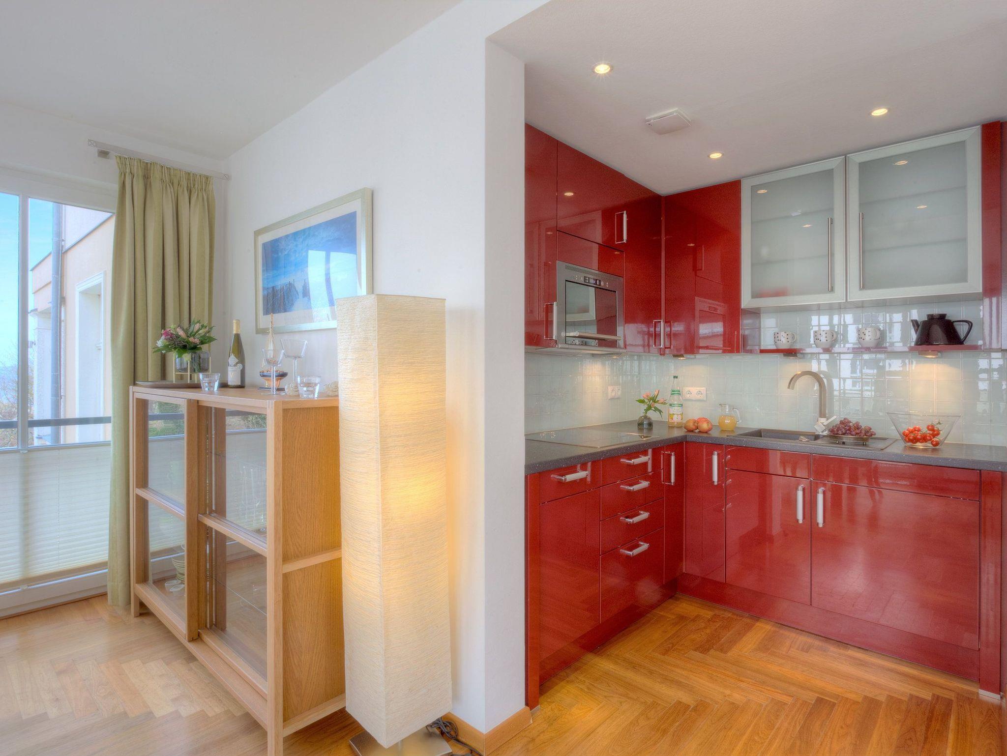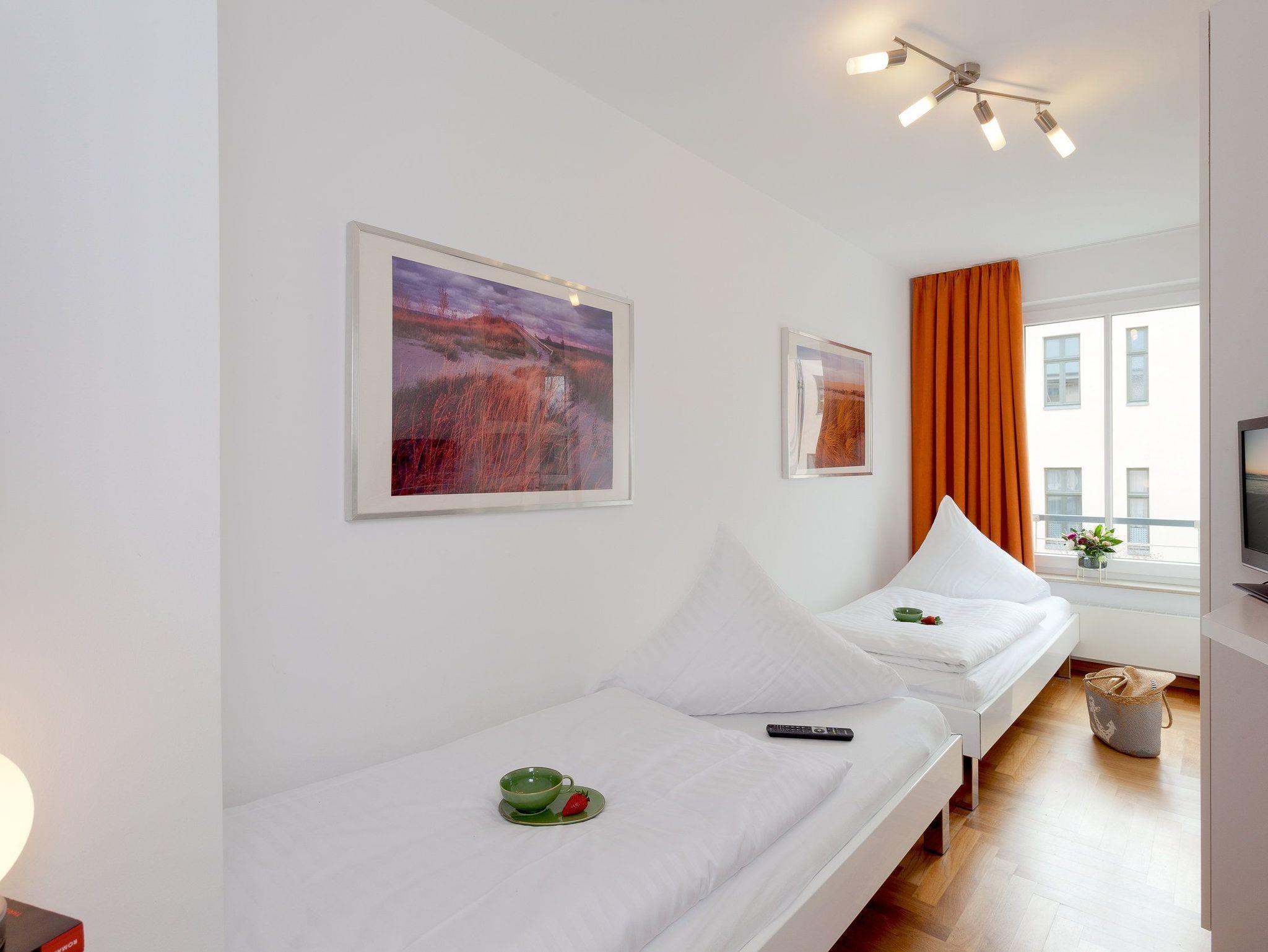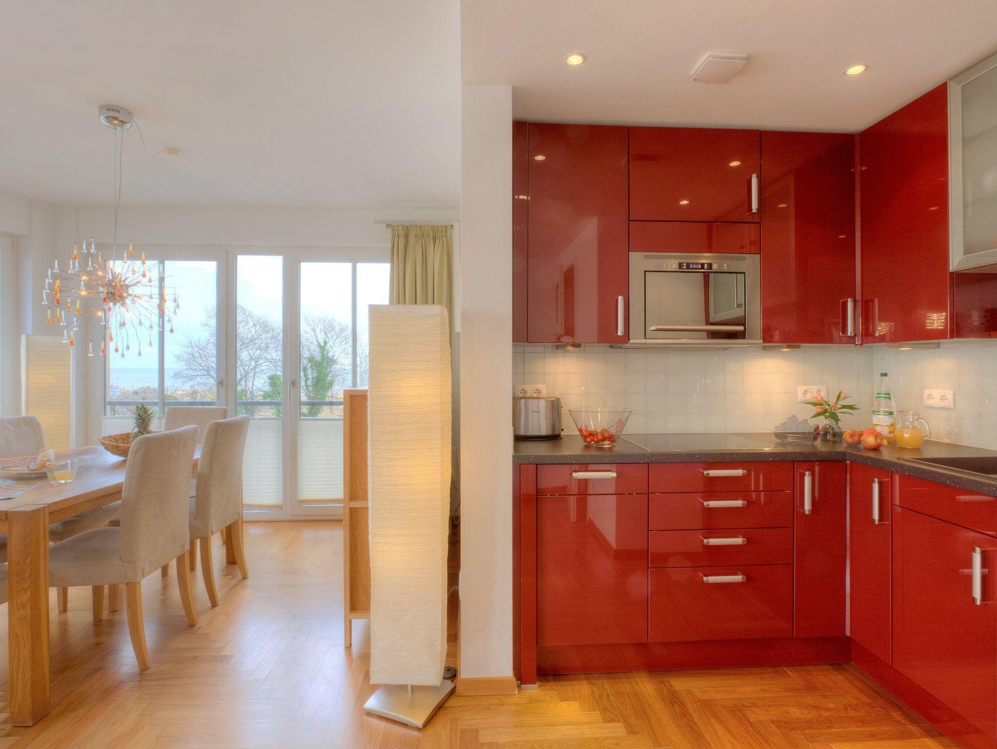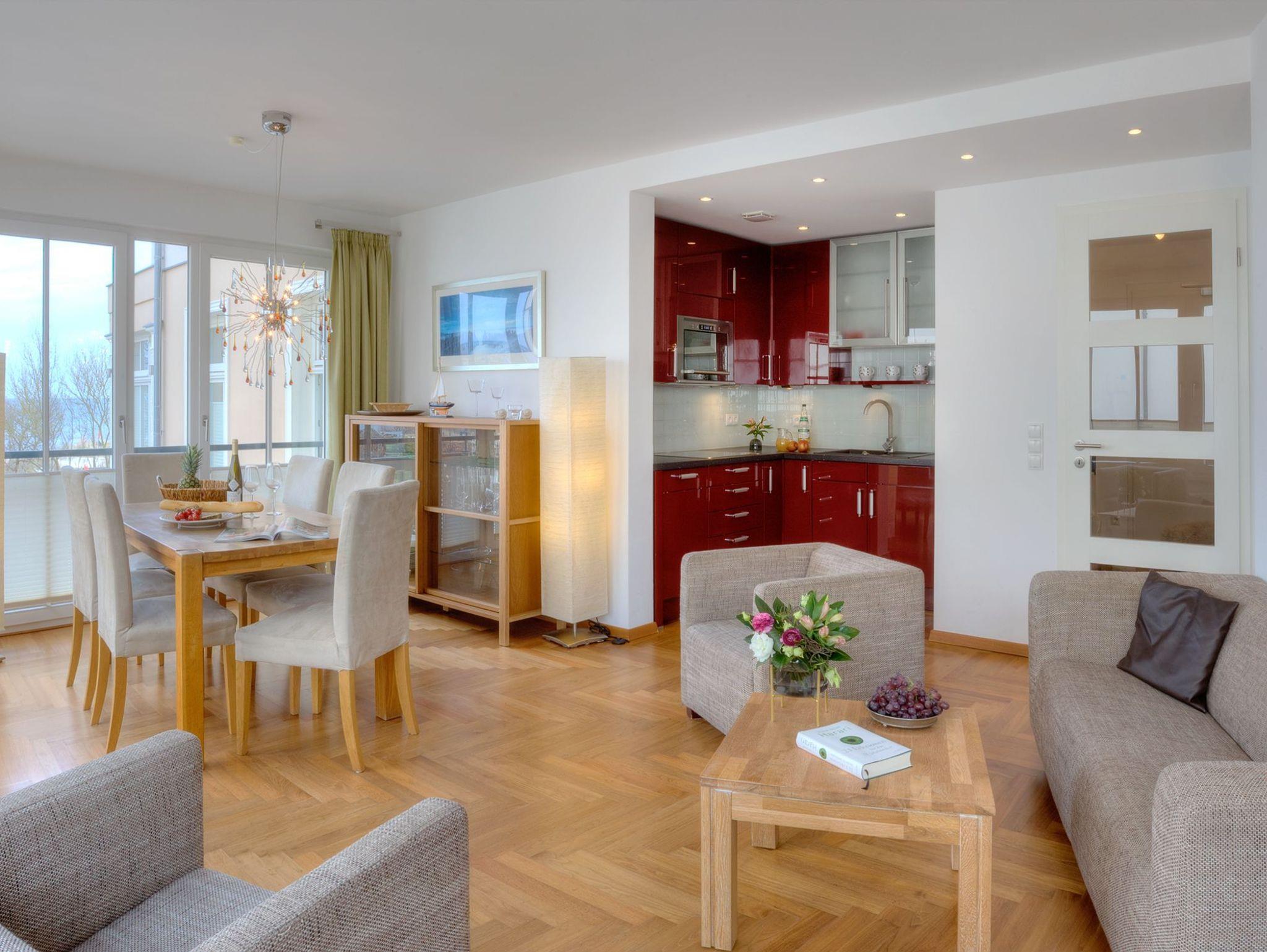 Der Wohn- und Essbereich besticht mit einer großen Fensterfront, die Ihnen den Blick auf die glitzernde Ostsee preisgibt. Auf der Couch können Sie es sich nach einem erlebnisreichen Tag auf der Insel Usedom so richtig gemütlich machen. Und dank des Flachbildfernsehers müssen Sie im Urlaub nicht auf Ihre Lieblingssendung verzichten. Die luxuriöse Küche bietet jeglichen Komfort (Kühlschrank mit Gefrierfach, Geschirrspüler, Mikrowelle mit Backfunktion, Wasserkocher, Toaster, Kaffeemaschine), den Sie für die Zubereitung Ihrer Lieblingsspeisen benötigen. Für die Nachtruhe steht ein komfortables Boxspringbett (160 x 200cm / durchgehende Matratze) für Sie bereit. Vom Schlafzimmer erreichen Sie den Balkon, der durch seine Südwestausrichtung ideal zum Sonnenbaden ist. Im zweiten Schlafzimmer befinden sich zwei Einzelbetten (je 90 x 200cm). Beide Schlafzimmer sind zusätzlich mit einem Flat TV ausgestattet.