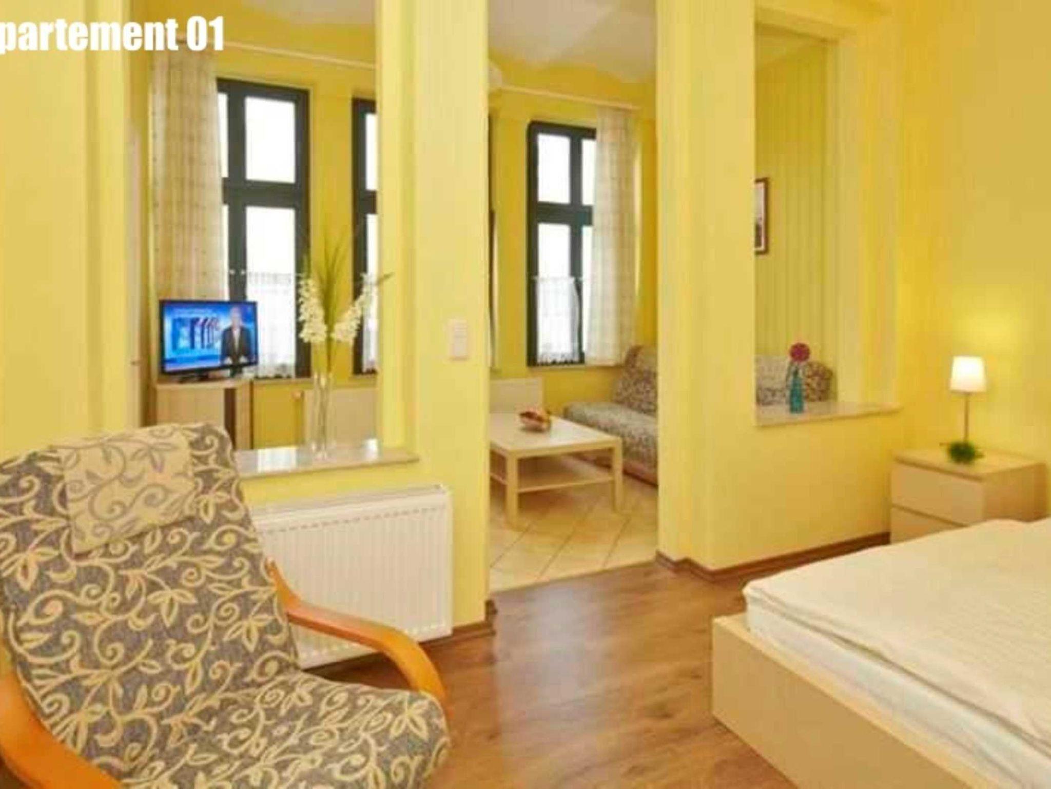 Die komplett und modern eingerichtete 1- Raum- Wohnung ( 40 qm) befindet sich im Erdgeschoss bzw. im 1. OG der Villa Ostpreussen. Die Wohnung ist mit einem LCD Fernseher, einer Küchenzeile (Wohnung im Erdgeschoss separate Küche) und einer Veranda ausgestattet. Eine Aufbettung für eine 3. Person ist möglich.