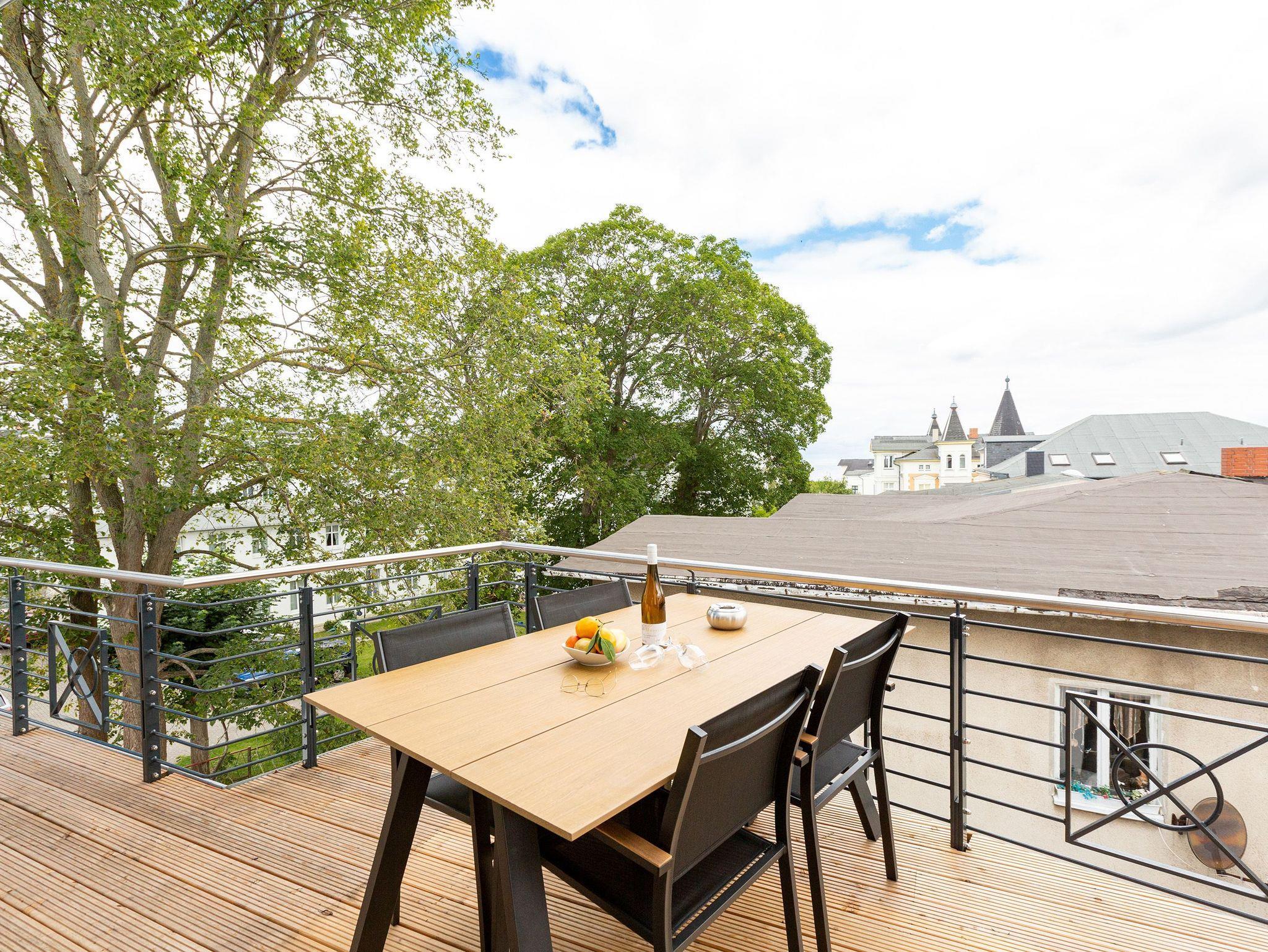 Ankommen, abschalten und neue Energie tanken. Im neu gebauten Quartier 7 im Herzen des Kaiserbades Ahlbeck fällt Ihnen das sicher ganz leicht. Moderne und stilvoll eingerichtete Appartements laden zum Wohlfühlen und Entspannen ein. In den ersten und zweiten Stock gelangen Sie via Fahrstuhl. Schöne, alte Villen umgeben die Anlage, verleihen dem Wohngefühl ein besonderes Flair. Die Zwei- und Drei-Zimmer-Appartements sind geräumig, offen und hell und teilweise mit einer Sauna oder einem Kamin ausgestattet. Wohnkomfort vom Feinsten lädt zum Faulenzen ein. Genießen Sie die frische Ostseeluft auf dem Balkon oder der Terrasse, denn jede Wohnung besitzt einen kleinen Außenbereich. An stürmischen Tagen können Sie von hier aus sogar die Wellen rauschen hören. Das beste Rezept für einen erholsamen Schlaf. Offene Wohnbereiche und voll ausgestattete Küchen sorgen für alle Annehmlichkeiten. Das Haus bietet eine Tiefgarage (Einfahrthöhe ca. 2,03 m). Einige Wohnungen verfügen über einen Kellerraum, der als Unterstellmöglichkeit für Fahrräder genutzt werden kann. Das WLAN-Netz ist für alle kostenfrei. Willkommen also in Ihrem kleinen Urlaubsparadies.