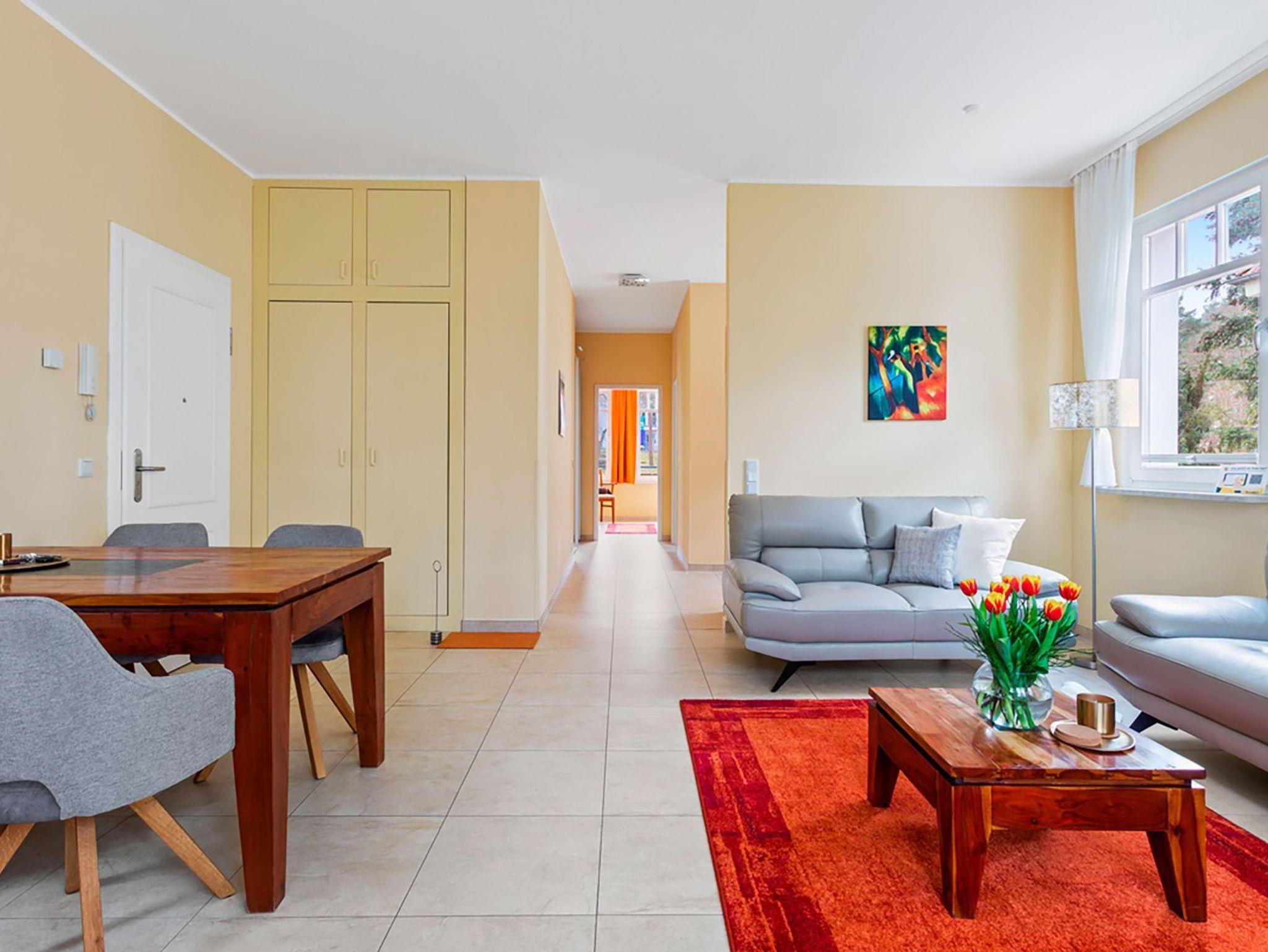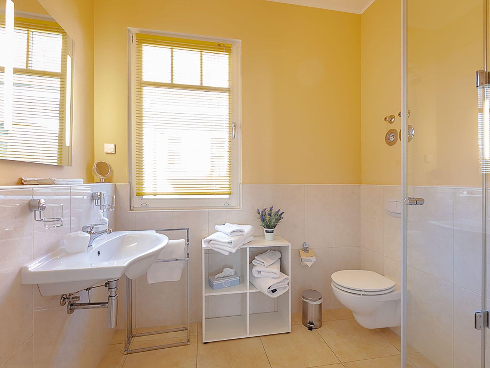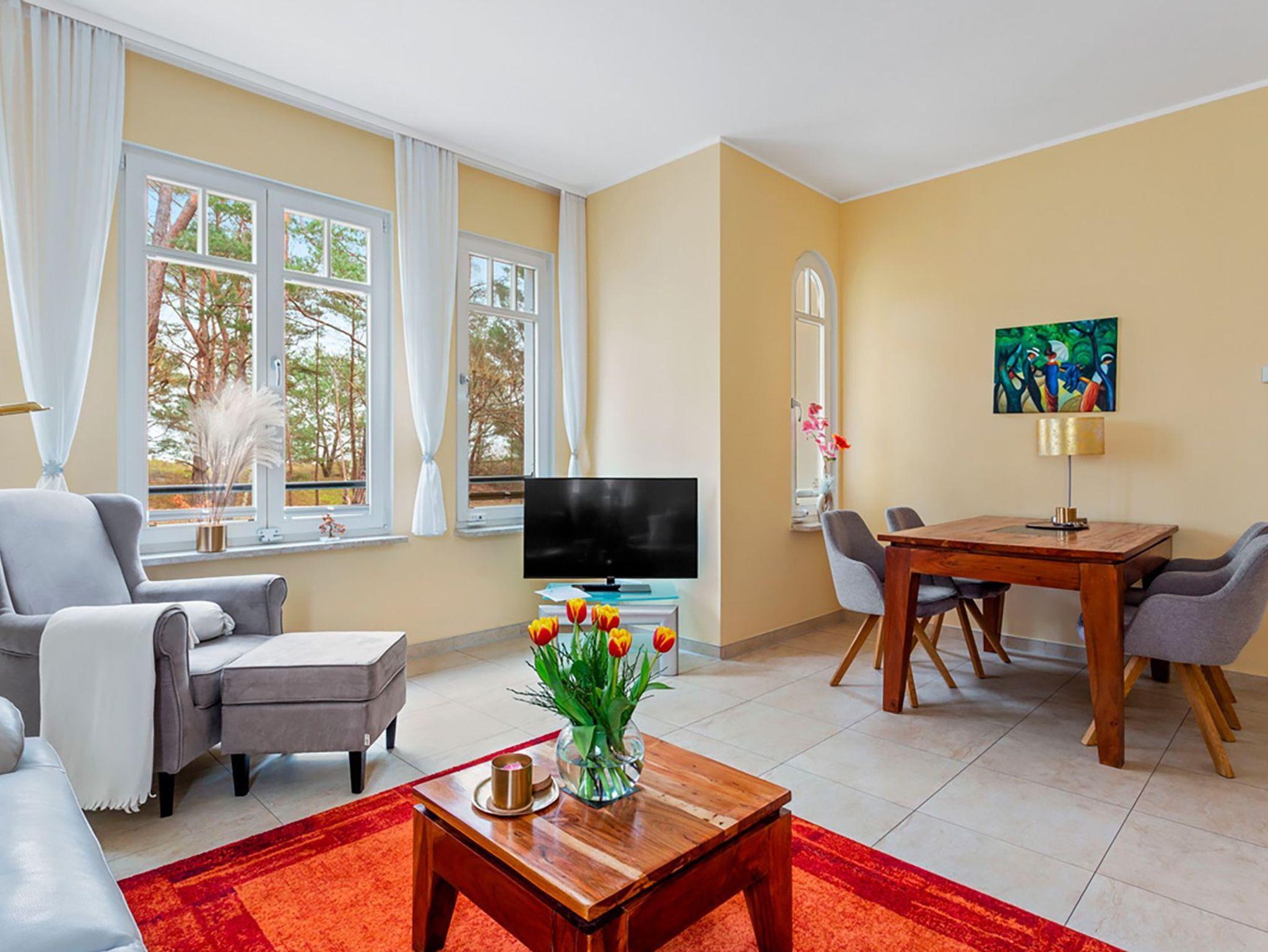 Das 58 m² große 2-Raum-Appartement ?Bernstein? liegt im gemütlichen Hochparterre und ist ideal für 2 Personen. Warme Farben, eine elegante Ledersitzgruppe, bequeme Essstühle, ein Lesesessel und ein moderner UHD-LED-TV sorgen für ein behagliches Ambiente. Direkt vor der Tür erwartet Sie Ihr eigener Außensitzplatz ? perfekt für entspannte Stunden an der frischen Ostseeluft. Schon beim Eintreten, mit einem Blick nach rechts, können Sie trotz der grünen Düne die Ostsee sehen. Das nach Süden ausgerichtete Schlafzimmer ist mit außenliegenden, wärmereflektierenden Sonnenschutzrollos ausgestattet. Da sich darunter der Wellnessbereich des Hauses befindet, schlafen Sie angenehm erhöht ? wie im ersten Stock. Das komfortable Doppelbett (2,00 m x 1,80 m) wird ergänzt durch ein stilvolles Gründerzeit-Vertigo und bietet zudem Platz für ein Kinderreisebett. Ein 2 m breiter Kleiderschrank befindet sich platzsparend in einer Nische im Flur, direkt gegenüber vom Badezimmer. Das Bad ist mit Dusche, Waschtisch, WC, großzügigem Fenster und praktischen Ablagen ausgestattet. Die separate Küche ist vollständig für 2?3 Personen eingerichtet und bietet alles, was Sie für Ihren Aufenthalt benötigen. Ein PKW-Stellplatz direkt am Haus rundet das Angebot ab.