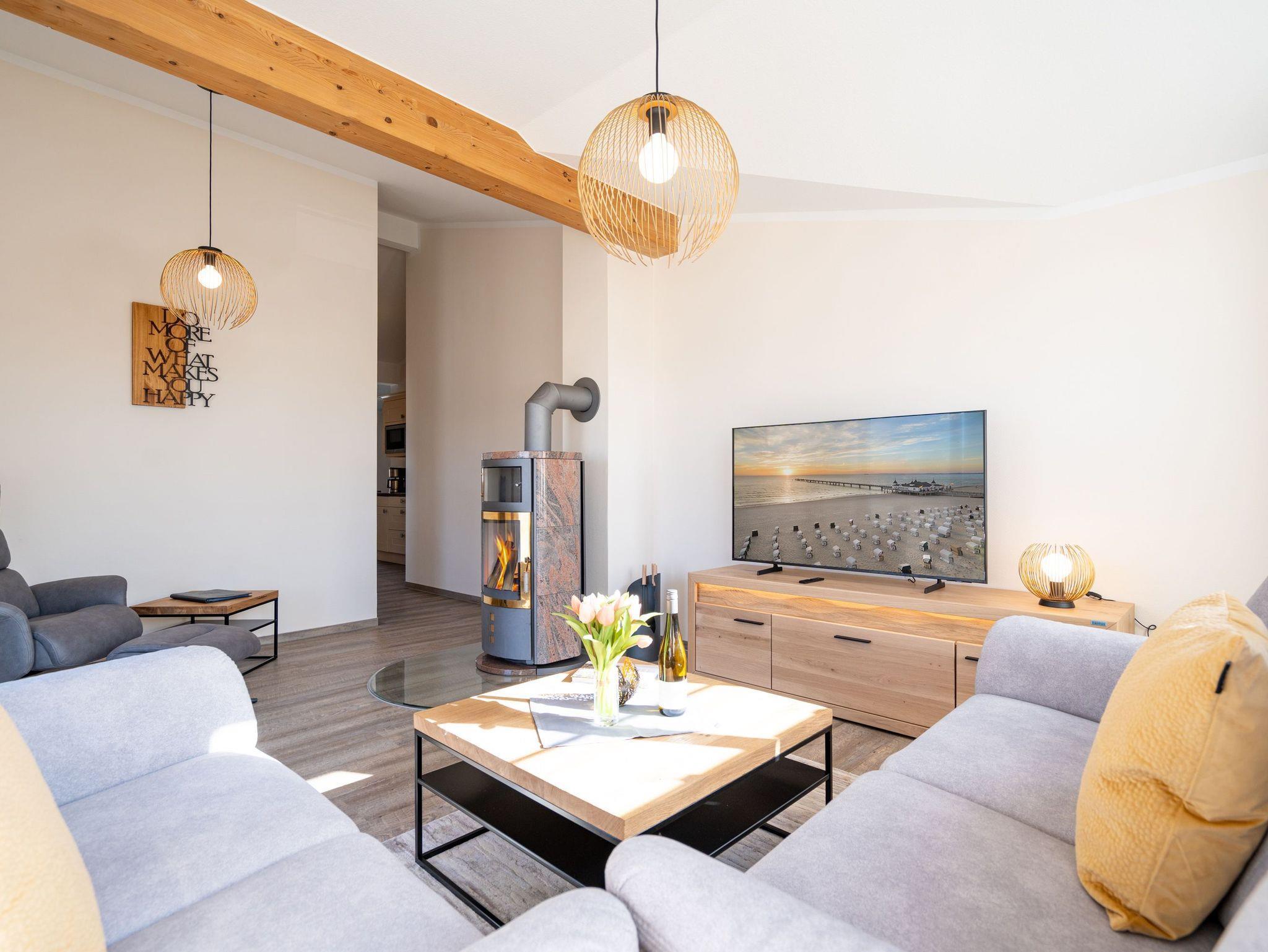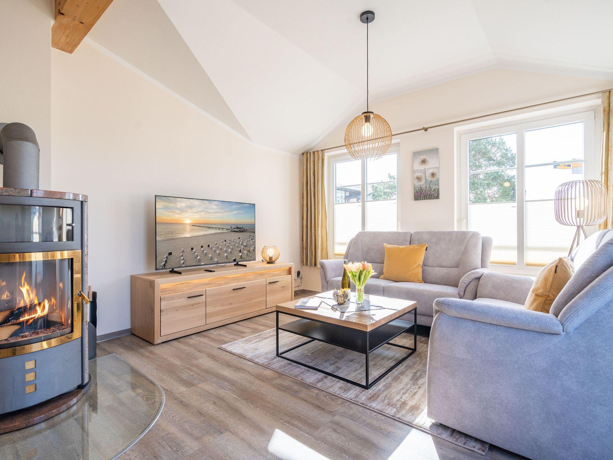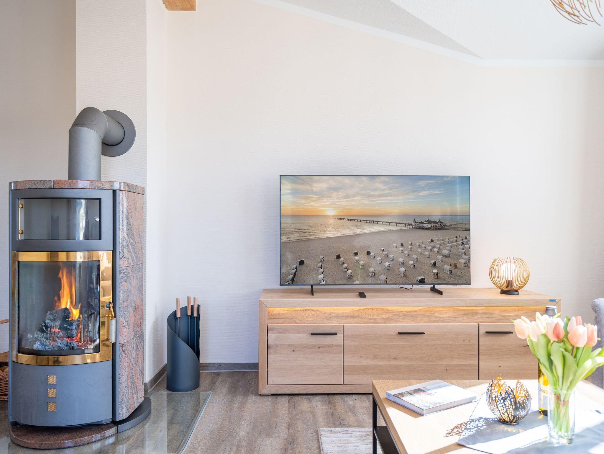 Die Ferienwohnung 09 in der Weißen Düne wurde im April 2025 umfassend neu gestaltet und empfängt Sie nun in frischem Glanz im 2. Obergeschoss des Hauses. Die Wohnung ist ideal für 2 Personen geeignet und bietet Ihnen ein hochwertiges Ambiente mit komplett ausgestatteter Einrichtung. Ein heller Wohnbereich mit separatem Essplatz und Zugang zum kleinen Balkon lädt zum Verweilen ein. Der gemütliche Kamin sorgt ? nicht nur in der kühleren Jahreszeit ? für entspannte Stunden. Im Schlafzimmer erwartet Sie ein komfortables Doppelbett (2 m x 2 m). Das Badezimmer ist modern ausgestattet und verfügt über eine Dusche sowie ein WC. Ein PKW-Stellplatz in der Tiefgarage steht Ihnen ebenso zur Verfügung wie kostenfreies WLAN.