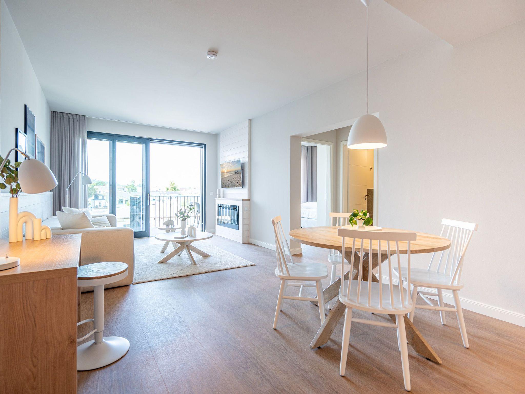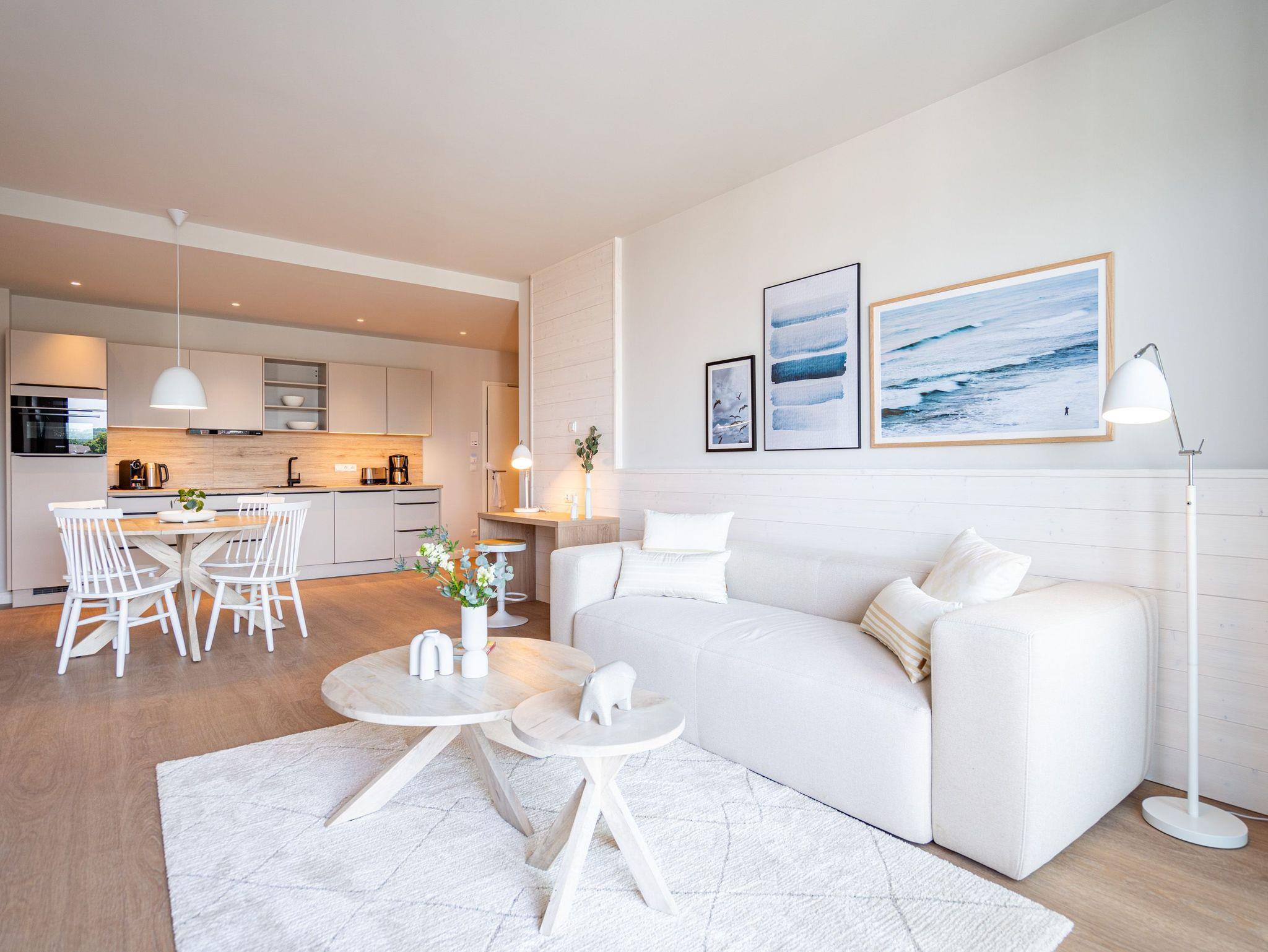 Die 2024 fertig gestellte Strandterrasse liegt direkt an der belebten Strandpromenade und bietet einen einzigartigen Ausblick auf die Grand Dame der historischen Seebrücken sowie die historische Konzertmuschel, einem beliebten Treffpunkt für Kunst und Kultur. Dahinter liegt die Ostsee ? ein Panorama, das zu den schönsten in den Kaiserbädern gehört. Es ist wie das Abtauchen in eine andere Zeit. In eine Zeit, in der man mit Stock, Sonnenschirm und Hut fürs „Sehen und gesehen werden“ über die Promenade schlenderte; aber auch in eine Zeit, in der ? damals wie heute ? Zeit einmal für eine kurze Weile keine Rolle spielt. Weil man angekommen ist im Loslassen, Entspannen und Genießen. Es ist dieser besondere Geruch nach Meeresluft und Freiheit, der in Erinnerung bleibt. Dazu die Bilder, die man mitnimmt. Von langen Strandspaziergängen, vom Lachen in fröhlich schäumenden Ostseewellen, von der Zeit in einem wunderschönen Urlaubsdomizil. Denn genau das ist die Strandterrasse mit ihren 56 modernen und exklusiven Ferienappartements direkt gegenüber der Ahlbecker Seebrücke. Die Ein-, Zwei- oder Dreizimmerwohnungen ? zwischen 40 und 70 Quadratmeter groß ? sind von einer Innenarchitektin gemeinsam mit unserem Erfahrungsschatz an Gästewünschen mit viel Liebe zum Detail und ganz individuell konzipiert worden. Entspannung und Wohlfühlen stehen an erster Stelle. Alles ist aufeinander abgestimmt und sorgt für eine gemütliche Atmosphäre. Wählen Sie zwischen einem Domizil in einem hellen, sandfarbenen Designkonzept oder einem Appartement mit anthrazitfarbenen Farbakzenten. Alle Appartements verfügen gleichermaßen über eine stilvolle und komfortable Einrichtung, die passgenau angefertigt worden ist, sowie über moderne Küchen und Bäder. Jedem Schlafzimmer ist ein eigenes Bad mit Dusche zugeordnet (außer App. B4.5). Die Appartements besitzen fast alle einen Balkon ? viele schauen sogar zur Ostsee hinaus. Die meisten Feriendomizile haben einen Elektrokamin und Infrarotsaunen. Im Erdgeschoss befindet sich ein separater Gemeinschaftsraum für Fahrräder. Außerdem besteht die Möglichkeit, im Gemeinschaftswaschraum 2 Waschmaschinen [&] Trockner zu nutzen. Ergänzt wird das Angebot durch eine Gemeinschaftssauna, die täglich von 11:00 bis 22:00 Uhr nutzbar ist. In der Tiefgarage (Einfahrtshöhe 2,03 Meter) steht für jede Wohnung 1 Pkw-Stellplatz zur Verfügung. Ist alles zur Zufriedenheit untergebracht? Dann kann der Urlaub ja beginnen. Und beim Blick vom Balkon über die Ostsee treffen sich zum Sonnenaufgang das Heute und das Damals. Gelassenheit legt sich beim Gang hinunter an den Strand auf die Seele. Jetzt darf die Zeit stehenbleiben.