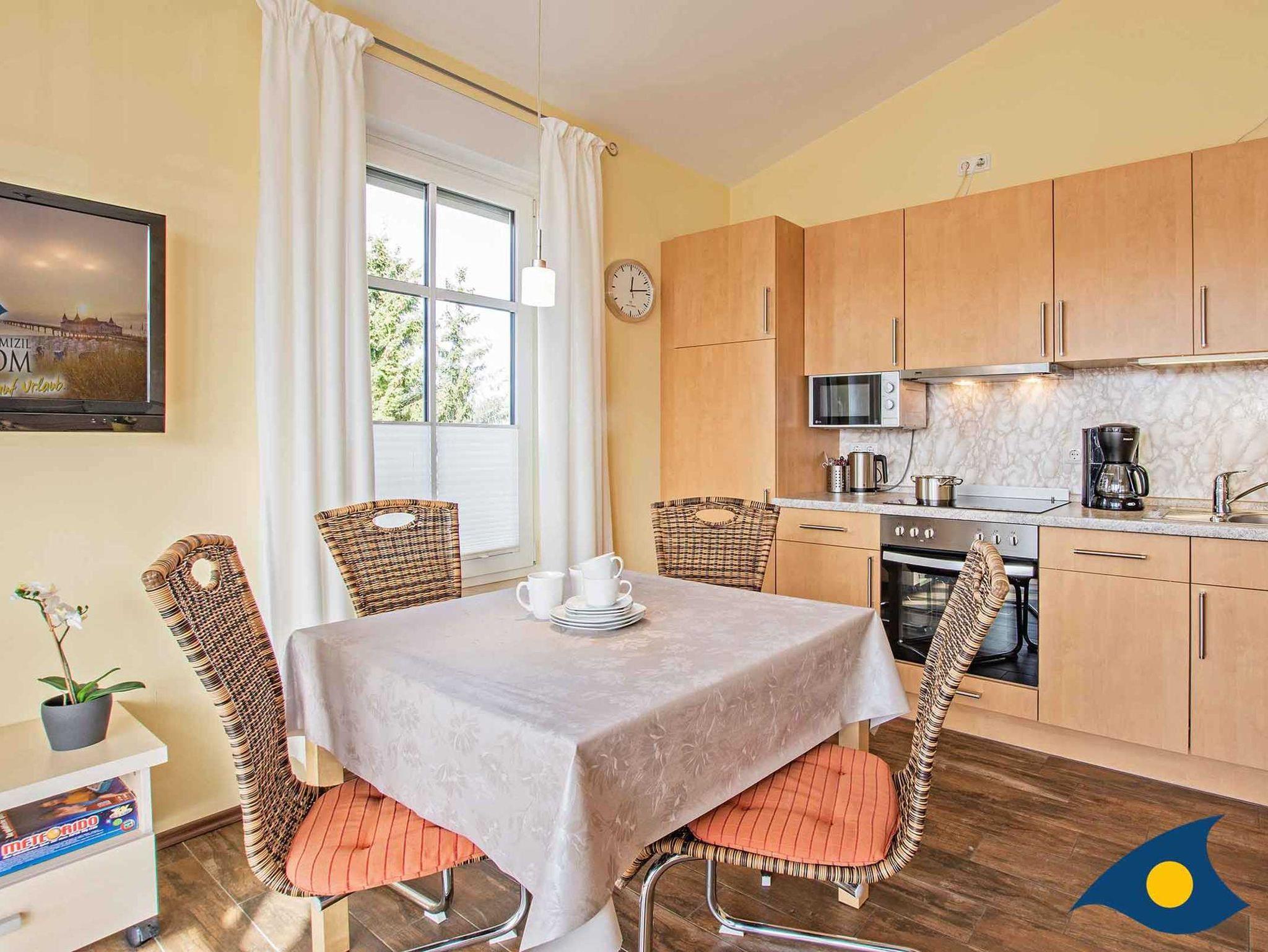 Die Küche ist mit Backofen, einem Kühlschrank inkl. Gefriermöglichkeit sowie einer Spülmaschine und Mikrowelle ausgestattet