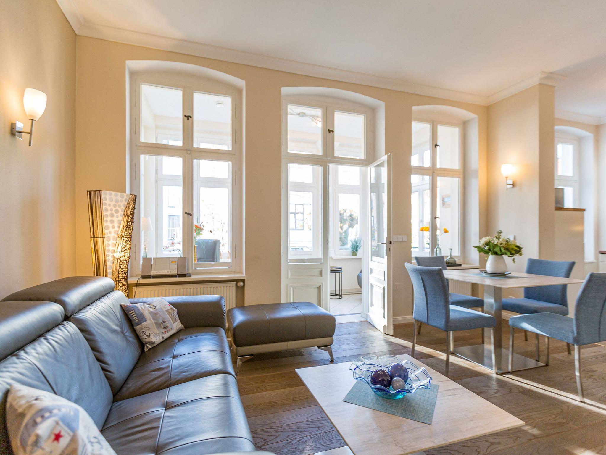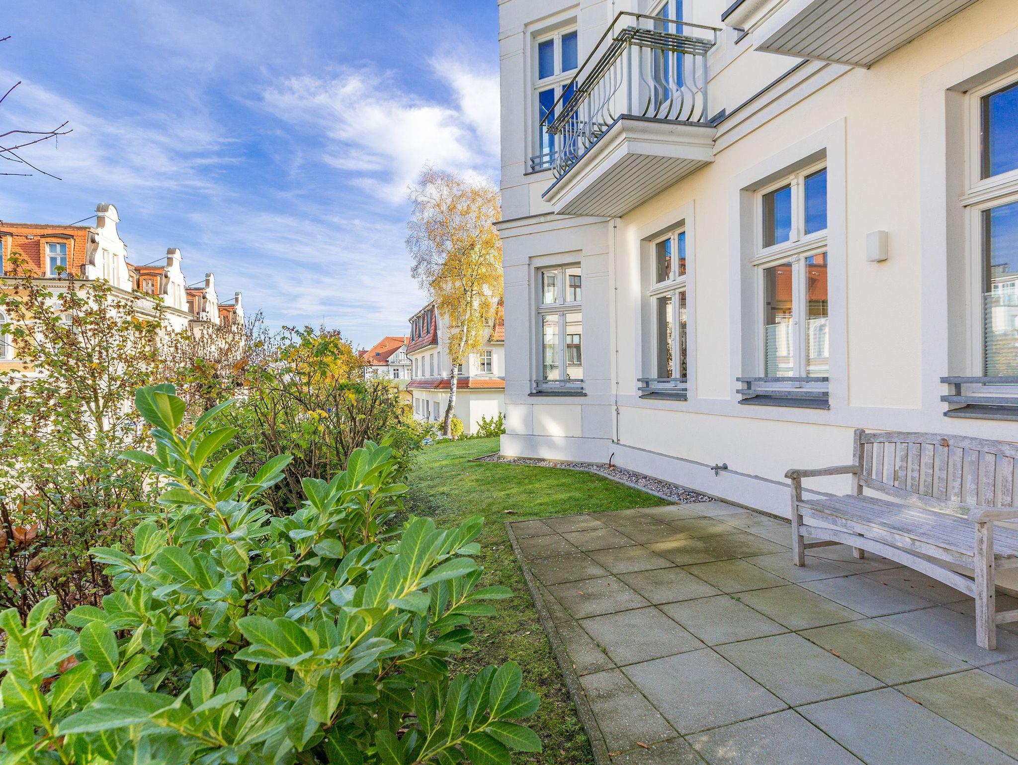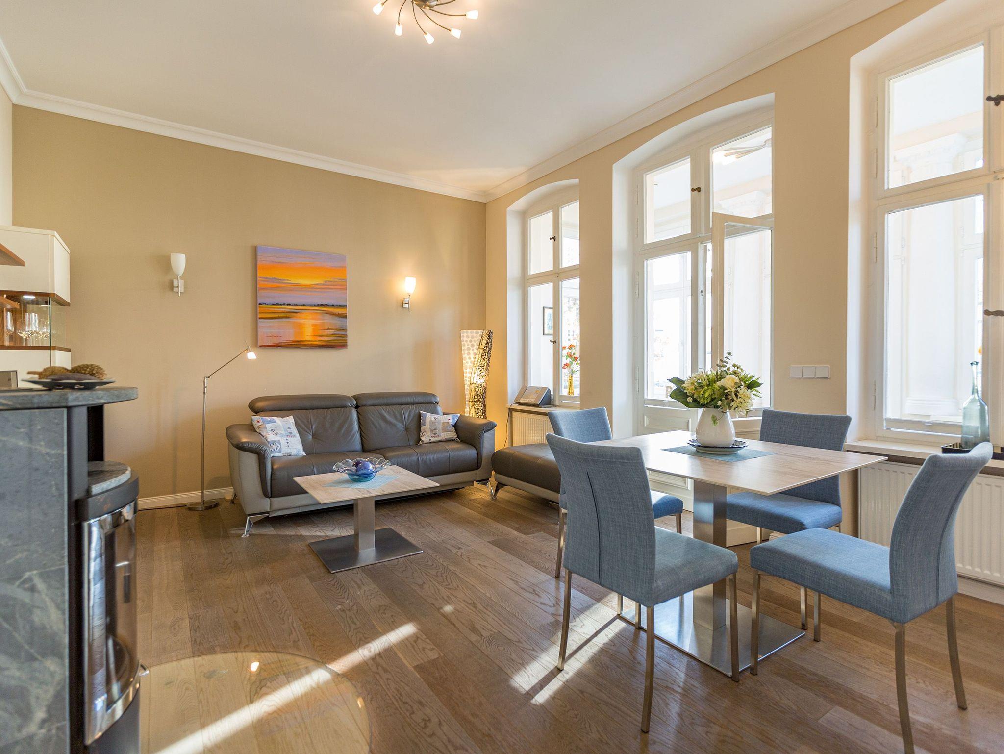 Liebevoll saniert, erstrahlt das Schloss am Meer im neuen alten Glanz. Wunderschön restauriert und exklusiv ausgestattet, bieten Ihnen die Wohnungen ein fantastisches, strandnahes Urlaubsdomizil (nur 80 m) im Seebad Ahlbeck. Stilvoll romantische Bäderarchitektur gepaart mit modernem Komfort. Diese elegante Villa verfügt über einen Fahrstuhl und teilweisen Meerblick, die einzelnen Ferienwohnungen sind mit Balkonen oder Terrassen ausgestattet. Als besonderes Highlight finden Sie in jedem Appartement einen Kaminofen. Im Schwesternhaus, der Residenz Bismarck befindet sich ein Saunabereich (gegen Gebühr). Jede Wohnung verfügt über einen Stellplatz in der Tiefgarage für Fahrzeuge bis 1,90 m Höhe ( Stellplätze relativ eng, eingeschränkte Wendemöglichkeit). Für Ihren Komfort steht die Erstausstattung Wäsche für Sie bereit. Bitte beachten Sie, dass Kaminholz in der Wohnung nicht vorhanden ist. Das WLAN-Netz ist kostenfrei nutzbar.